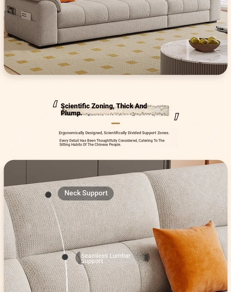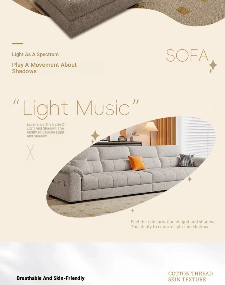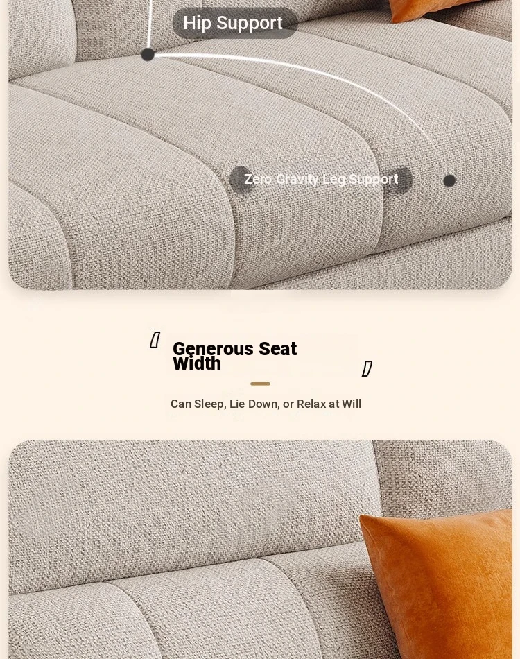 【Free Shipping to Hong Kong】Buge French Creamy Fabric Sofa – Stylish Small Space Cotton Linen Couch for Living Room, Minimalist Design