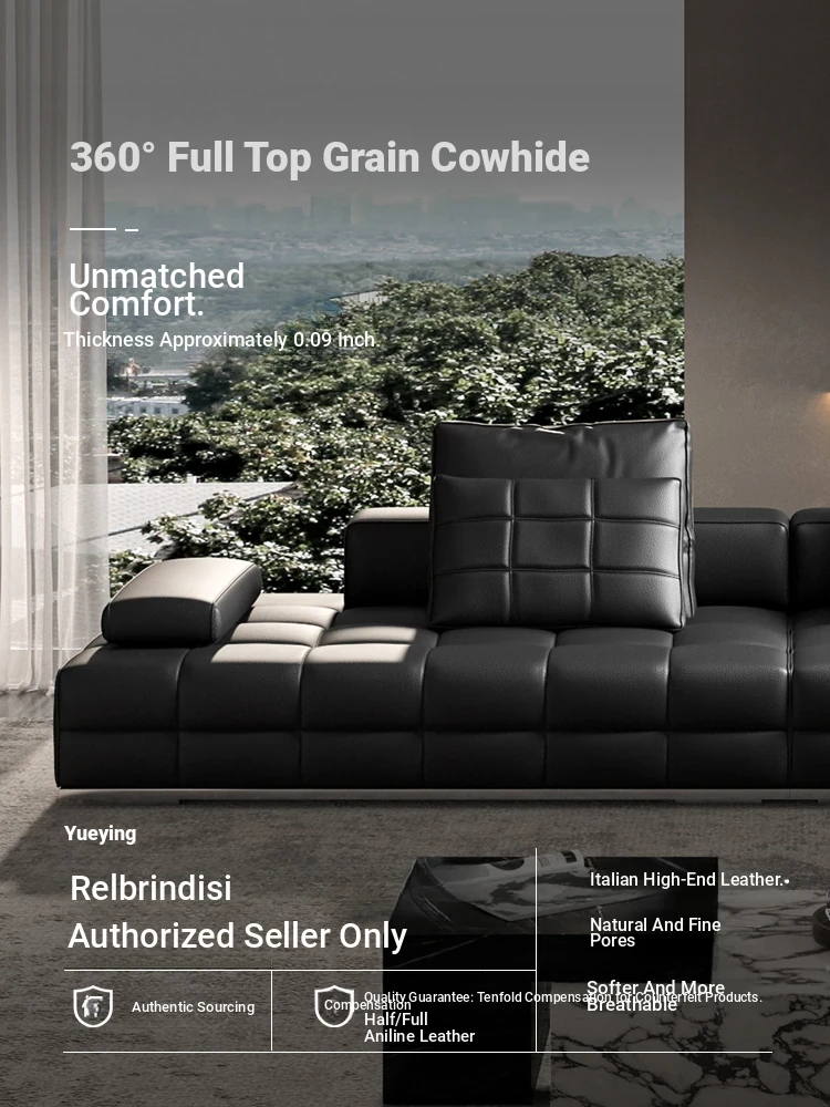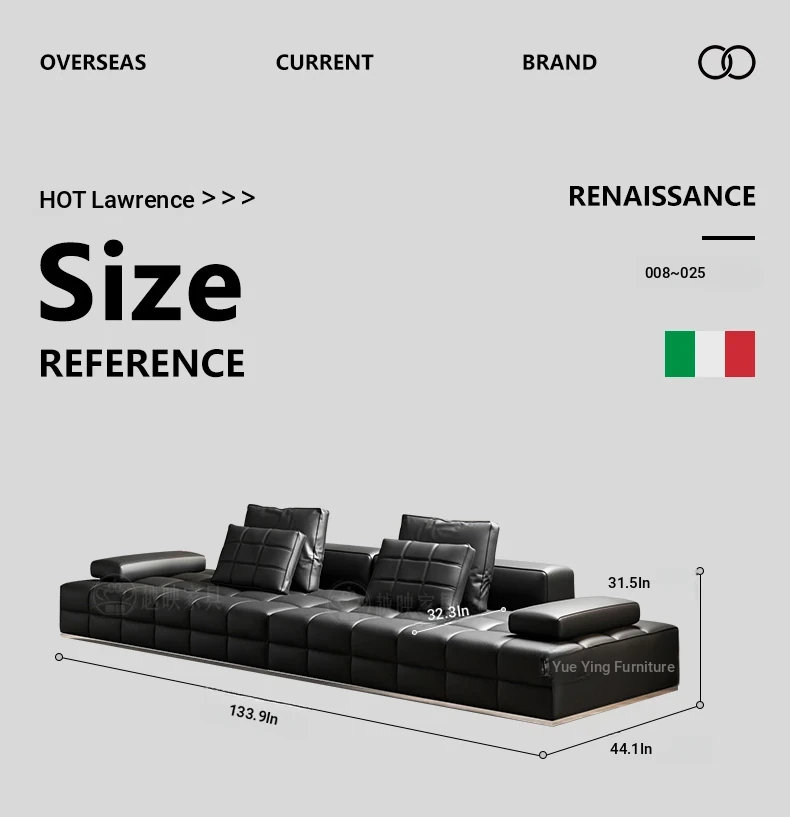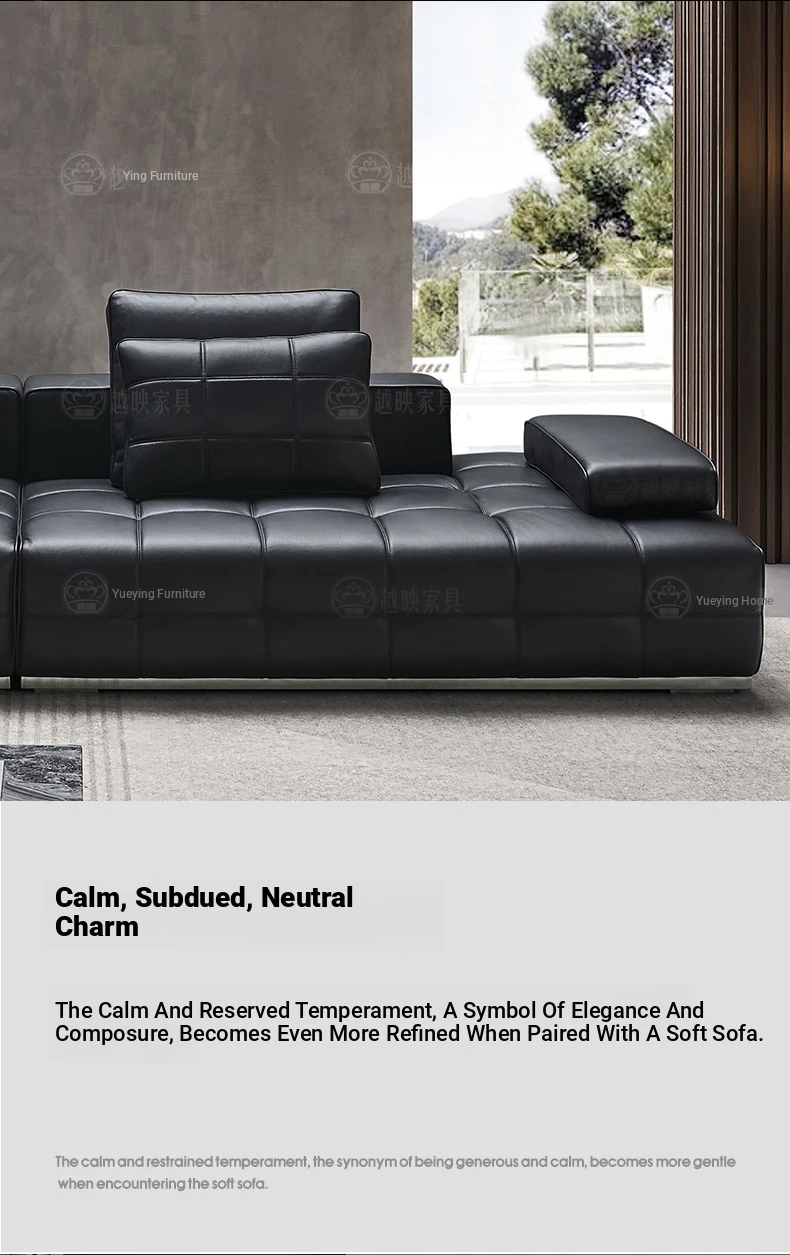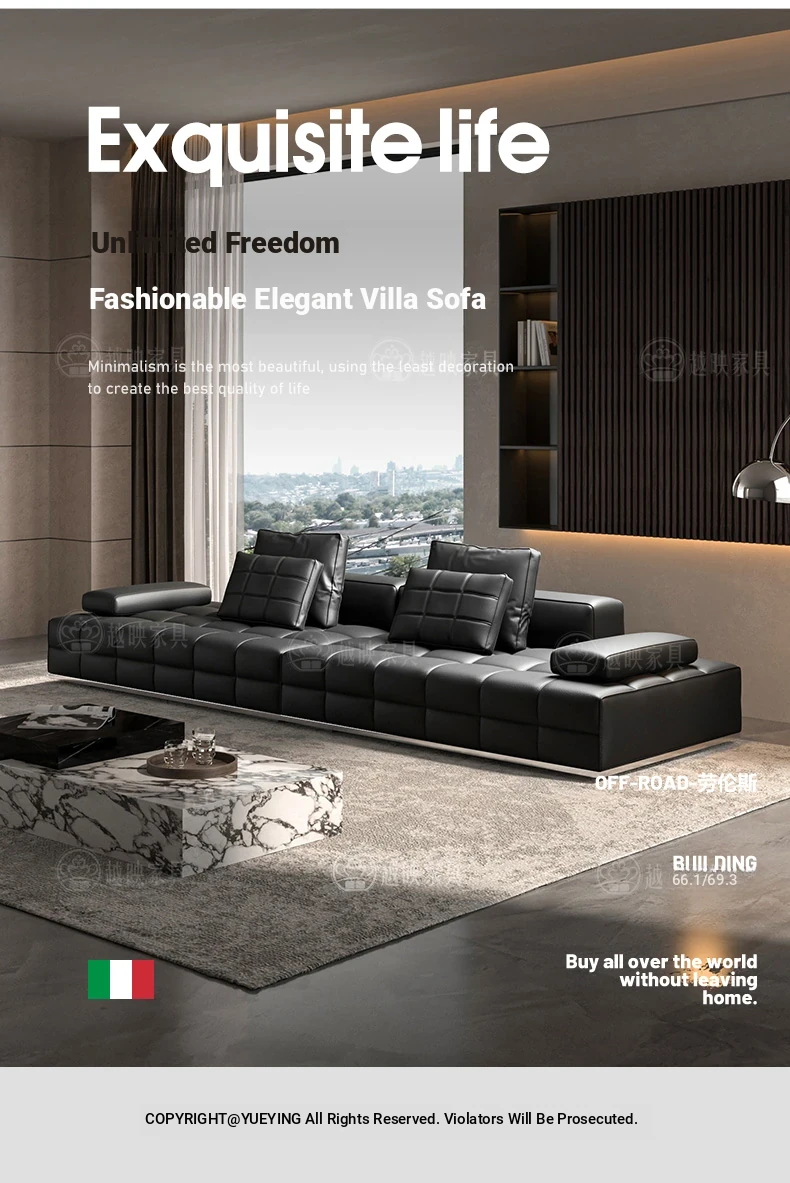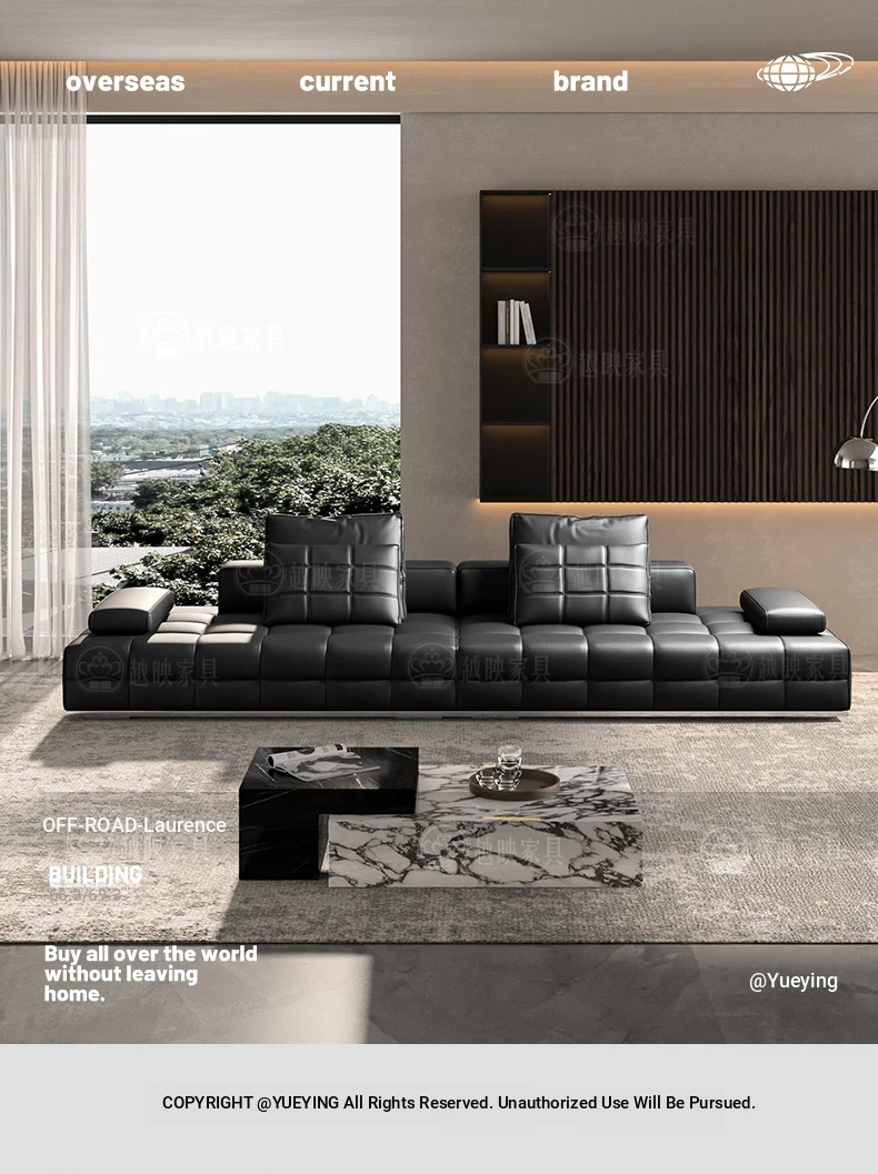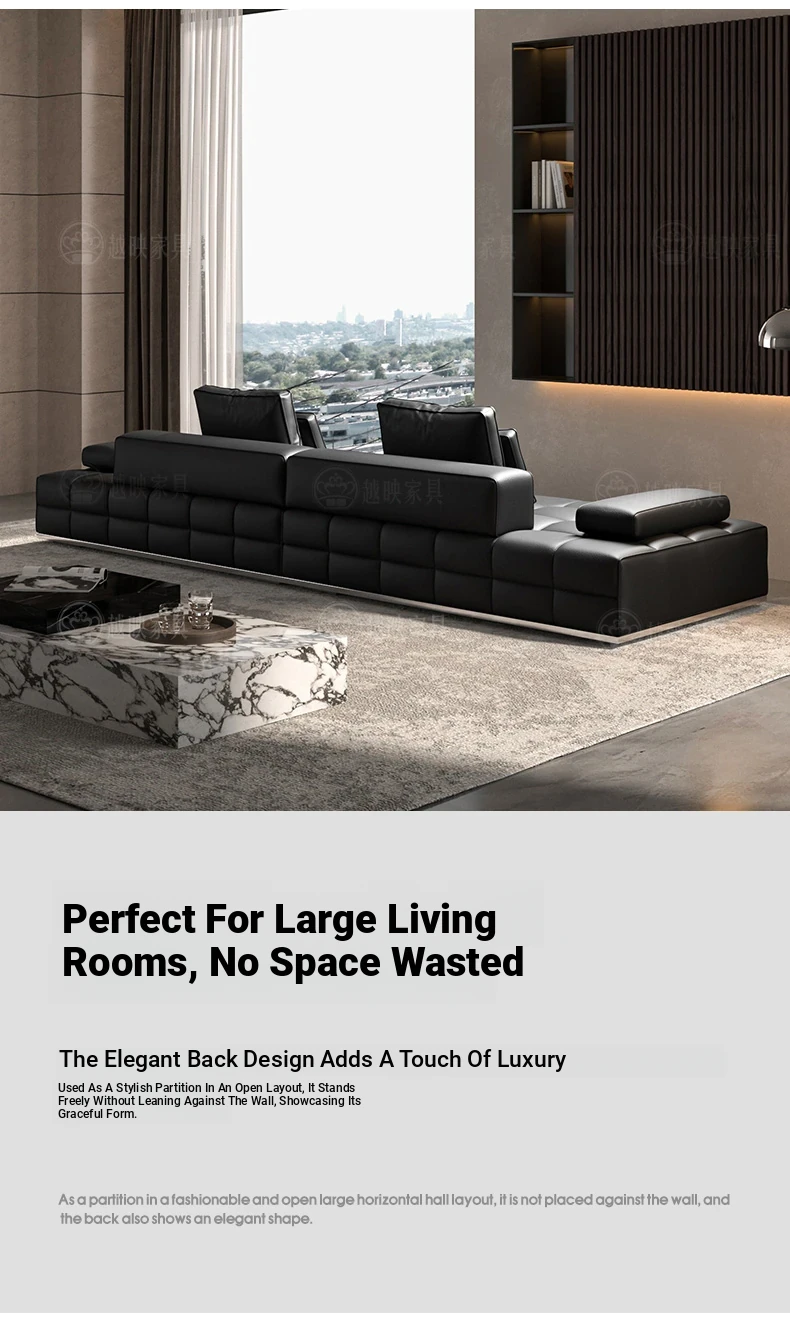 High-End Italian Minimalist Lawrence Sofa - Full Leather, All-Leather Design for Luxurious Living Rooms, Perfect for Large Open Spaces in Sleek Black