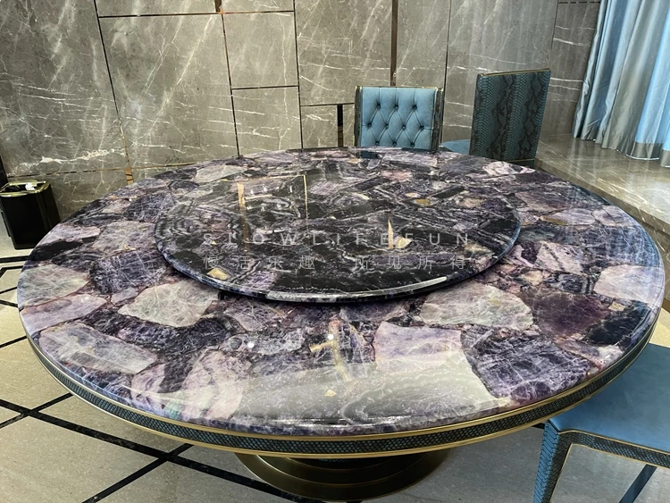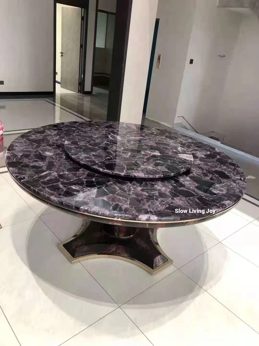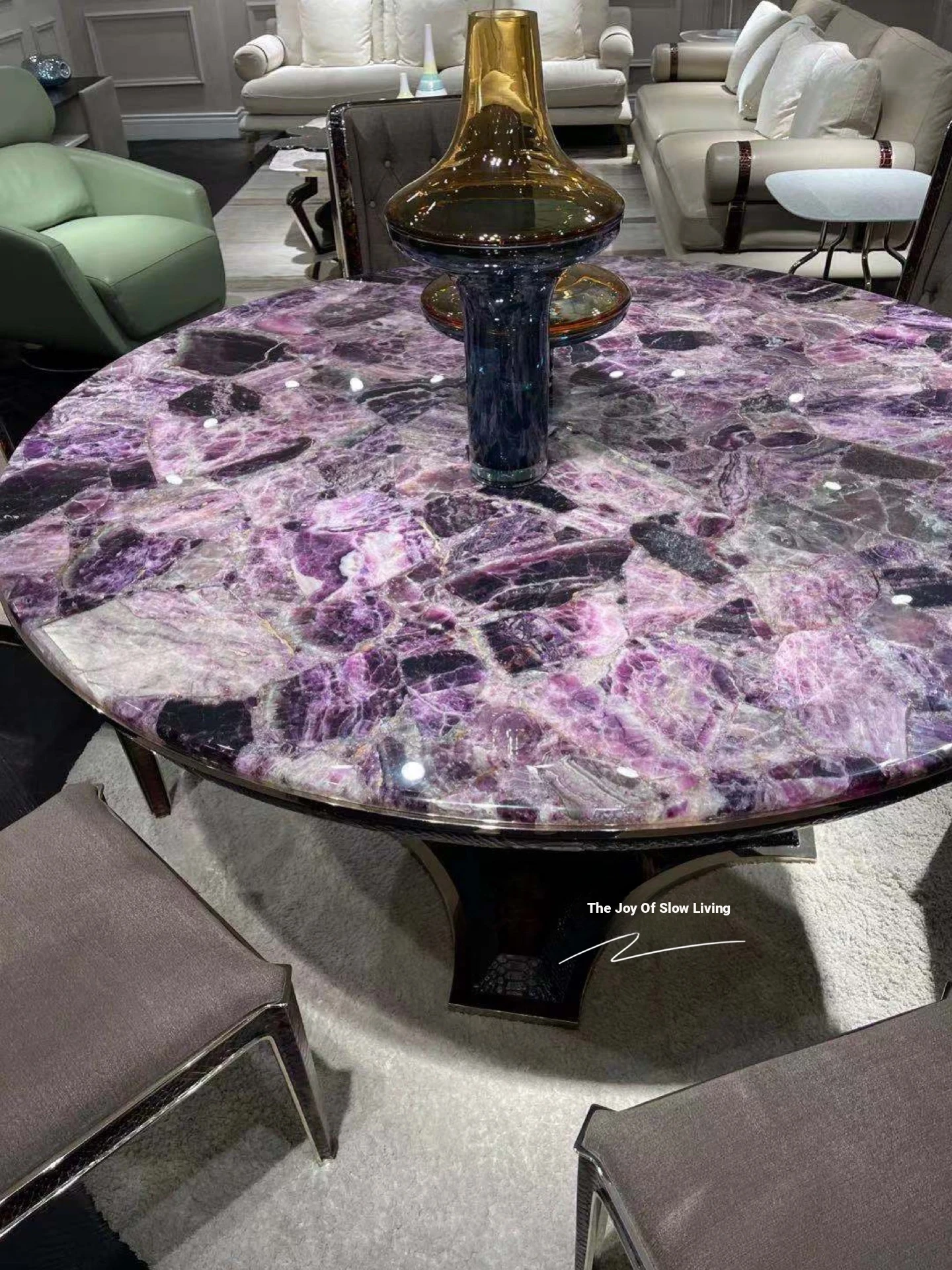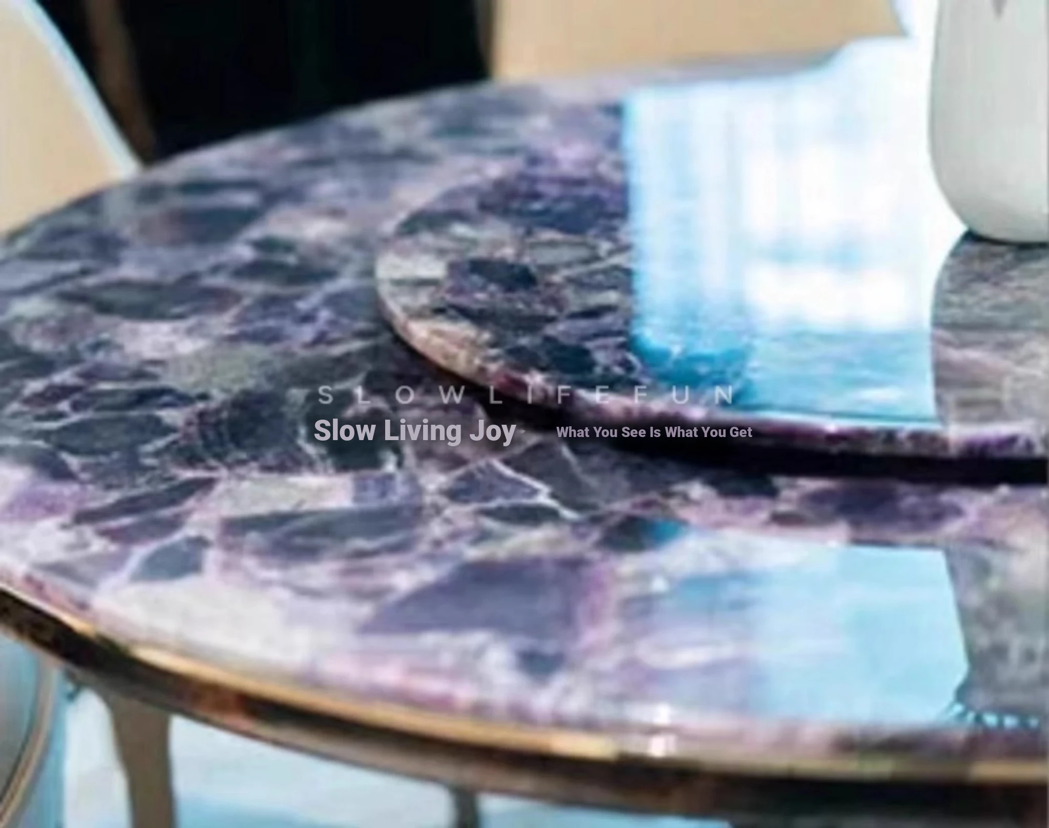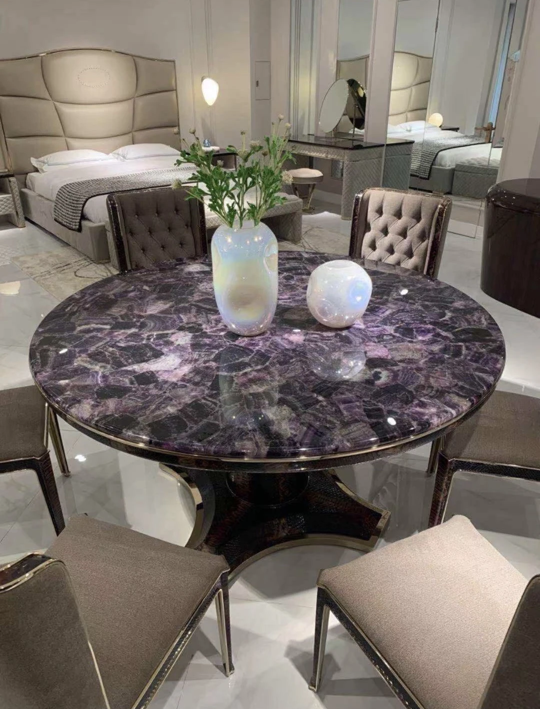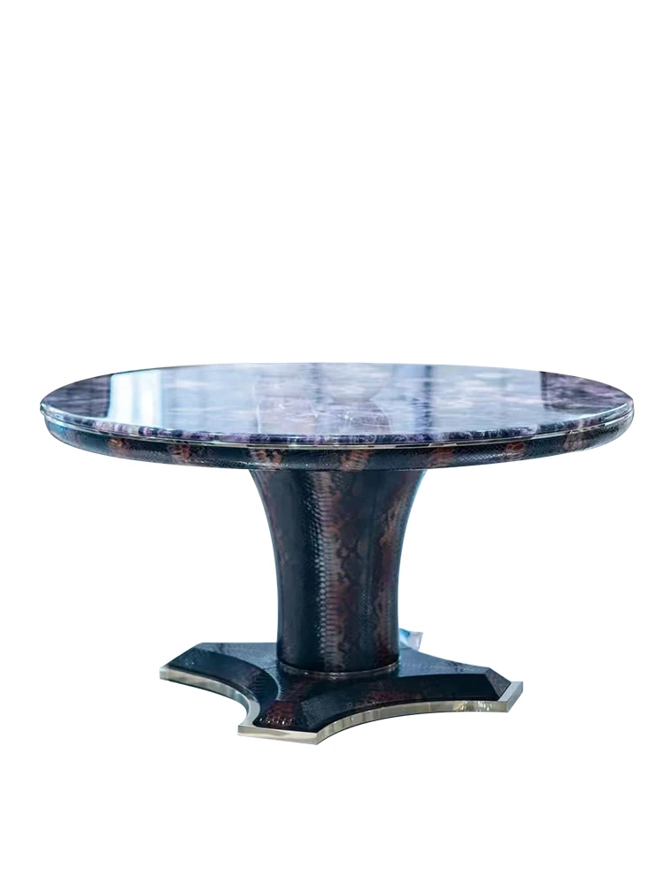 Italian Luxury Amethyst Dining Table with Snake Skin Texture - Modern Round Dining Table Set for Villas and Upscale Homes