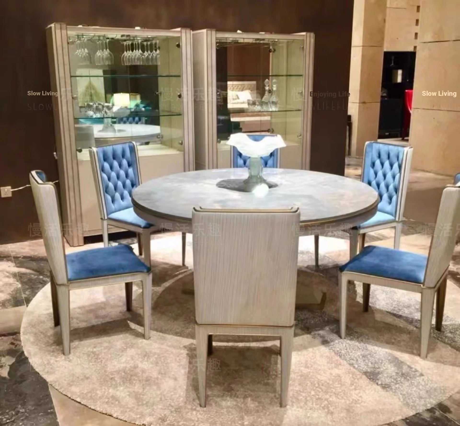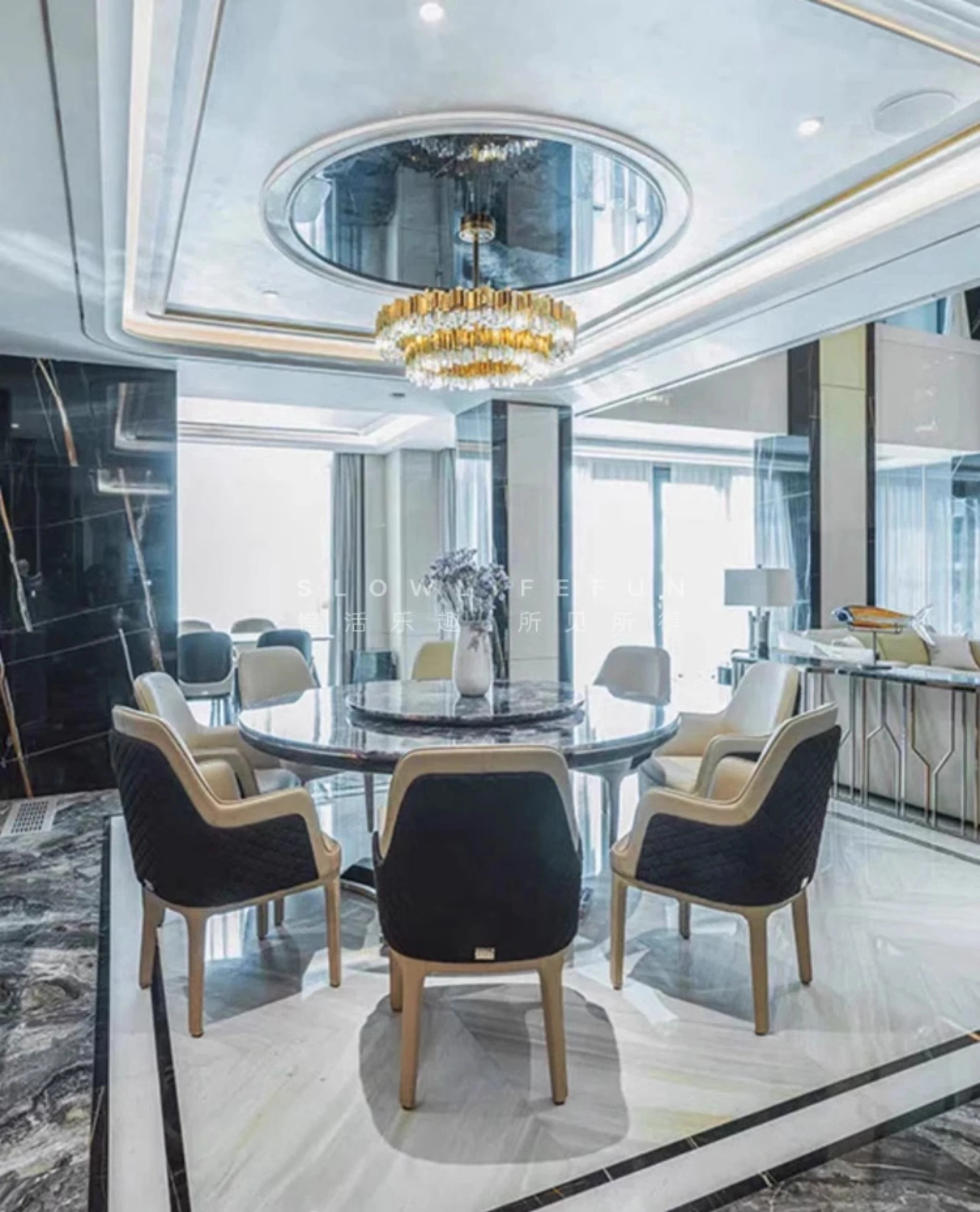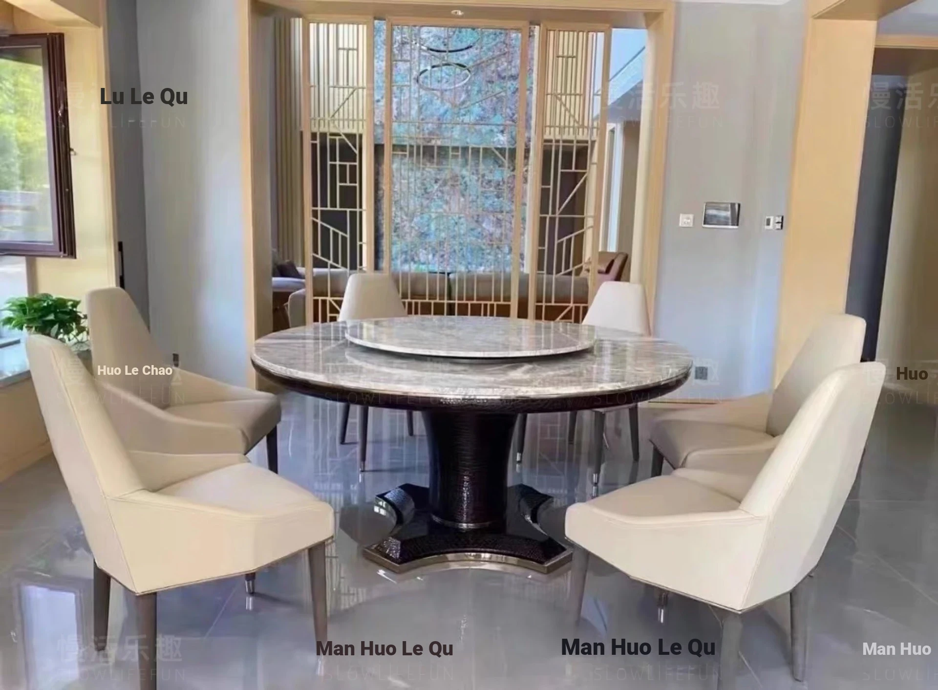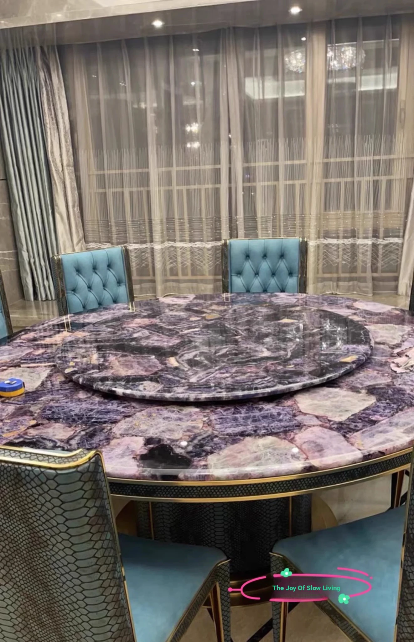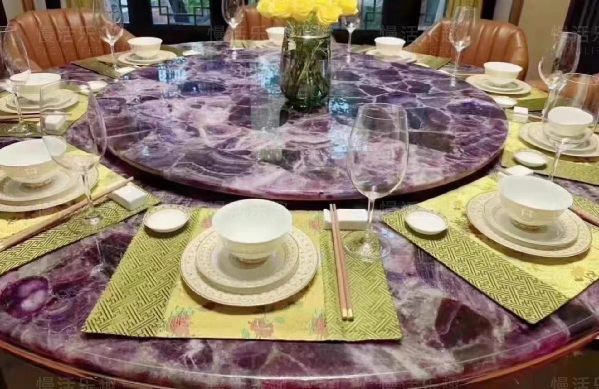 Italian Luxury Amethyst Dining Table with Snake Skin Texture - Modern Round Dining Table Set for Villas and Upscale Homes