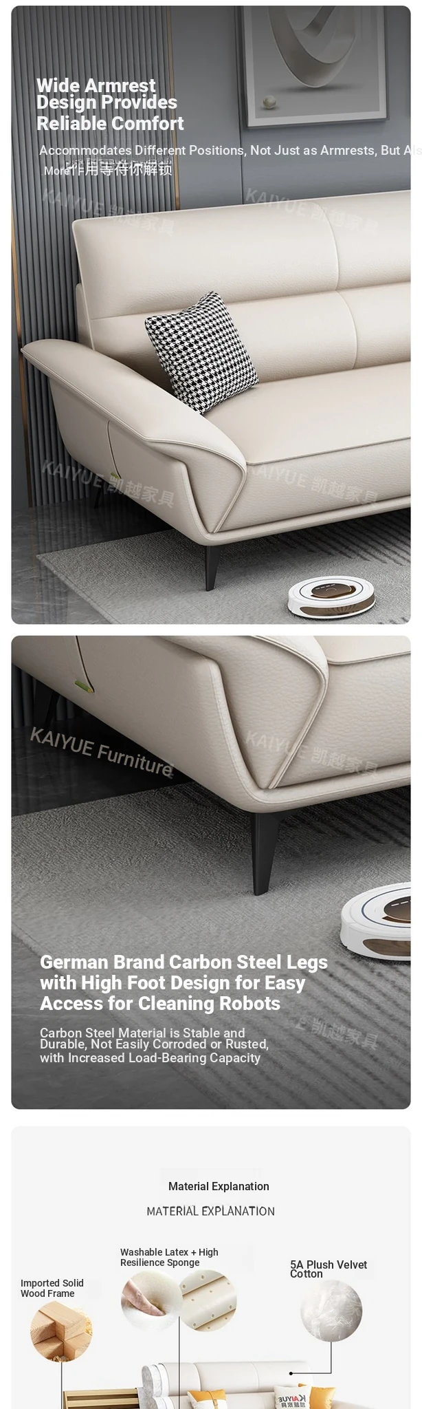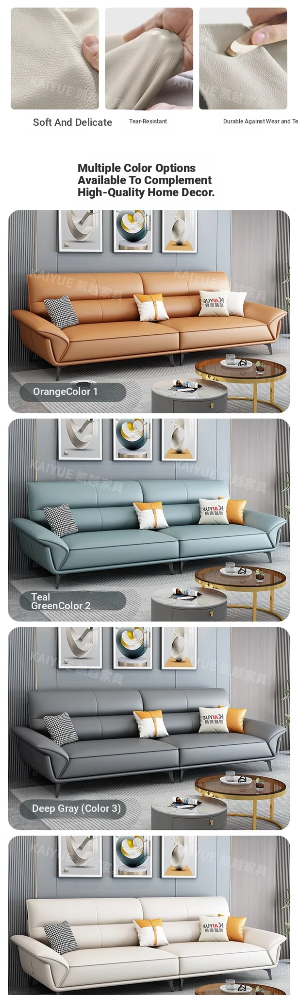 Italian Minimalist Genuine Leather Sofa - Modern Simple Design for Living Room, Perfect for Small Spaces. Accommodates 3-4 People, Crafted from Top-Grain Cowhide.