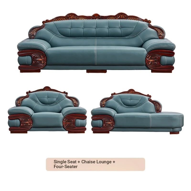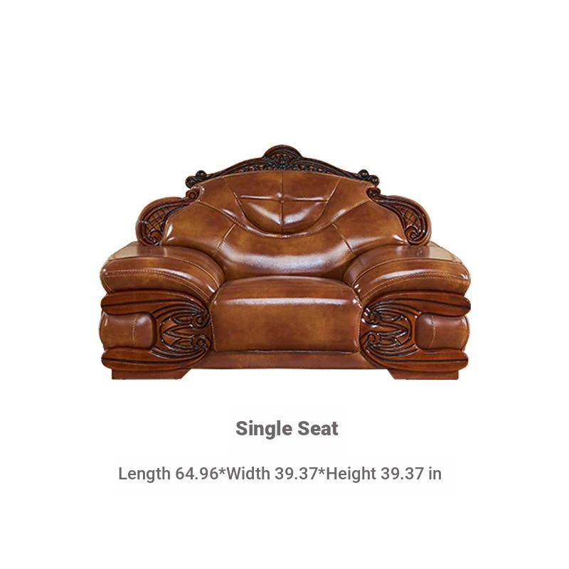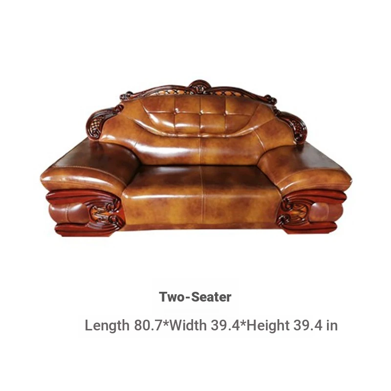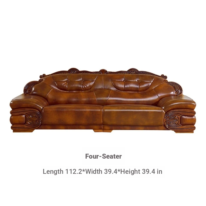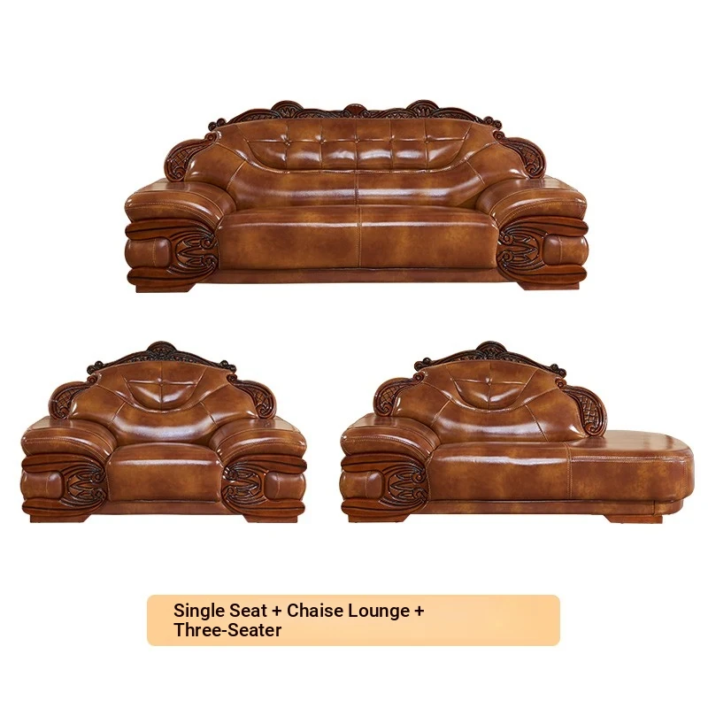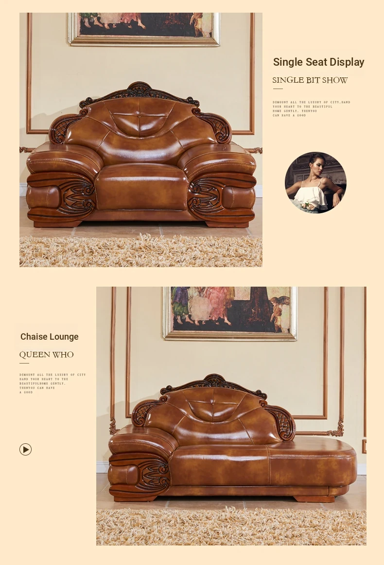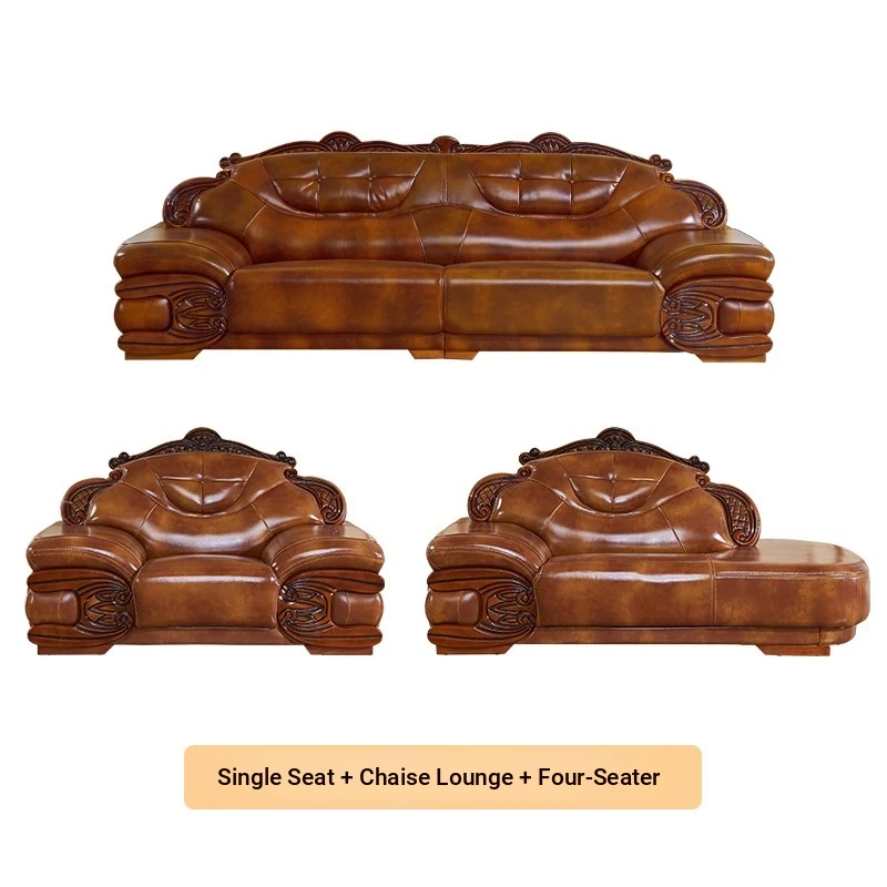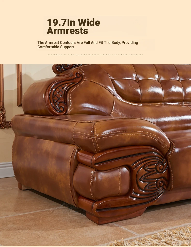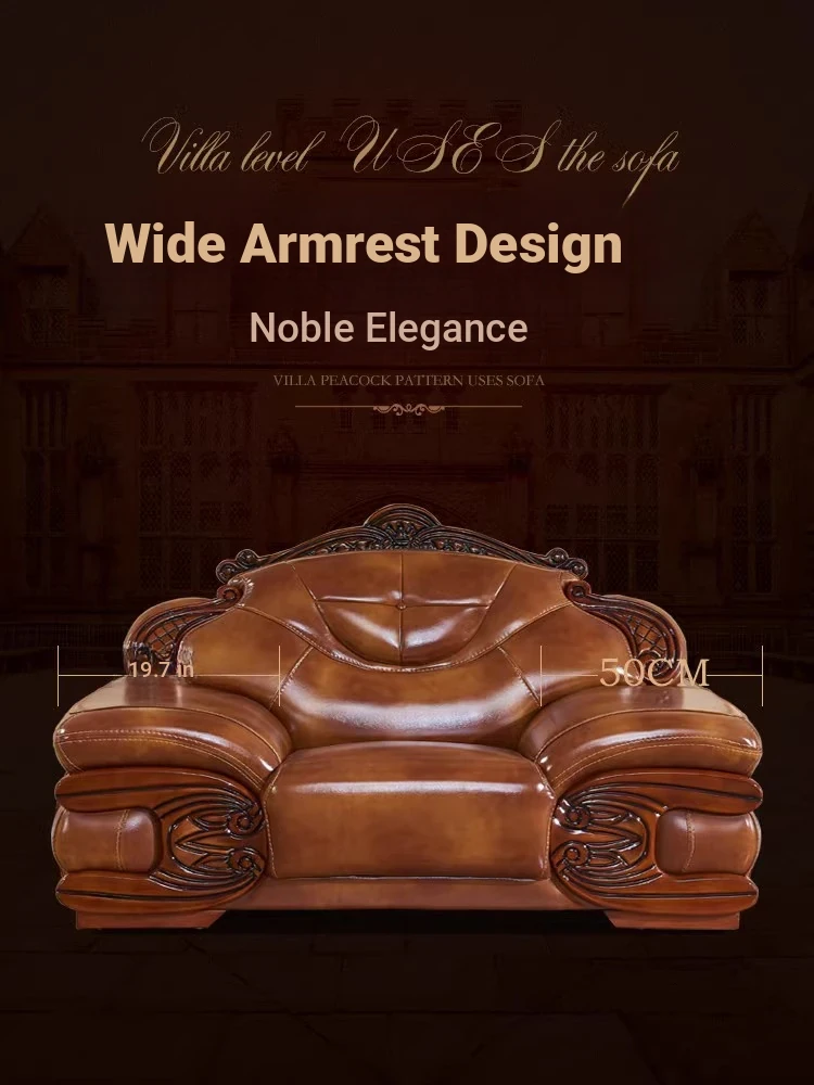 Luxurious European Genuine Leather Sofa Set for Spacious Villas - Elegant Solid Wood Living Room Furniture Directly from Foshan Manufacturer