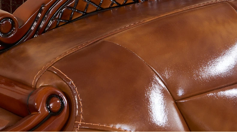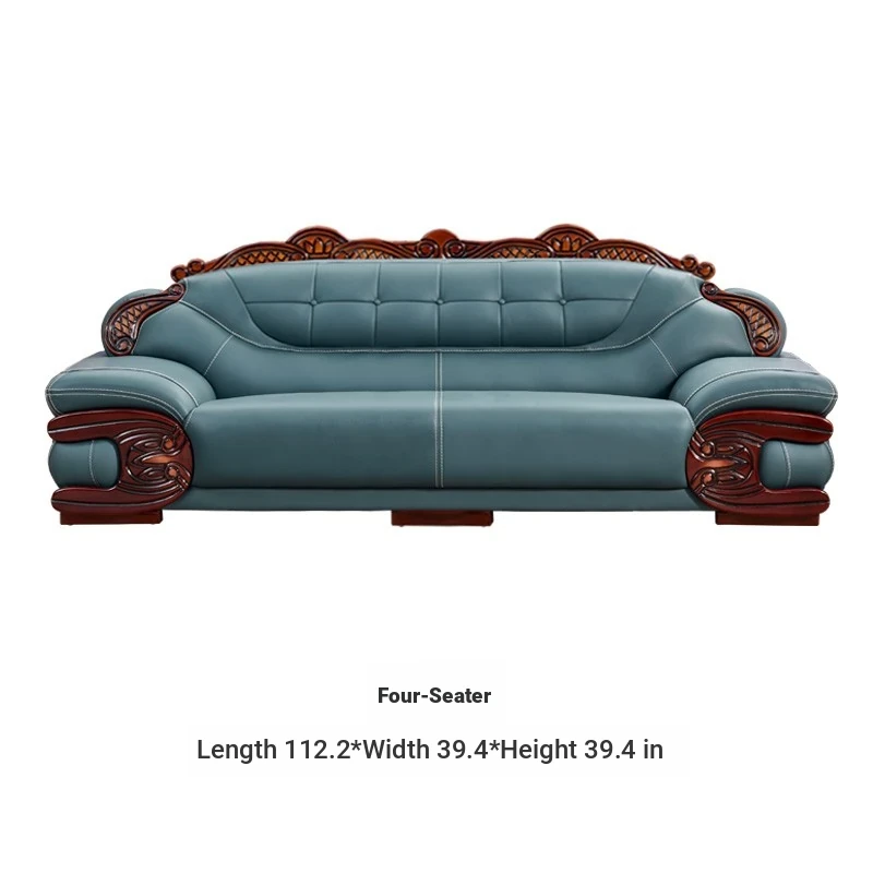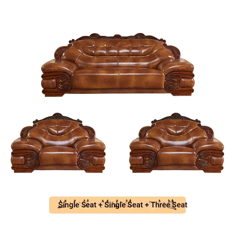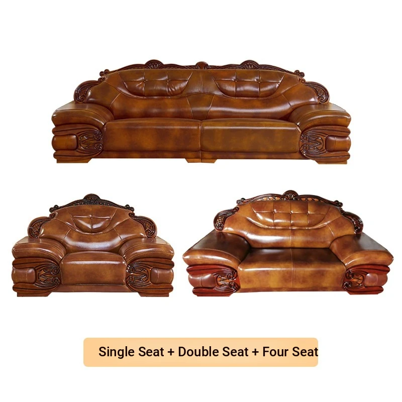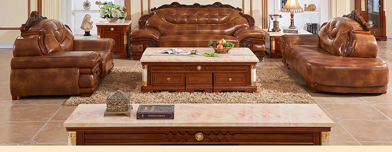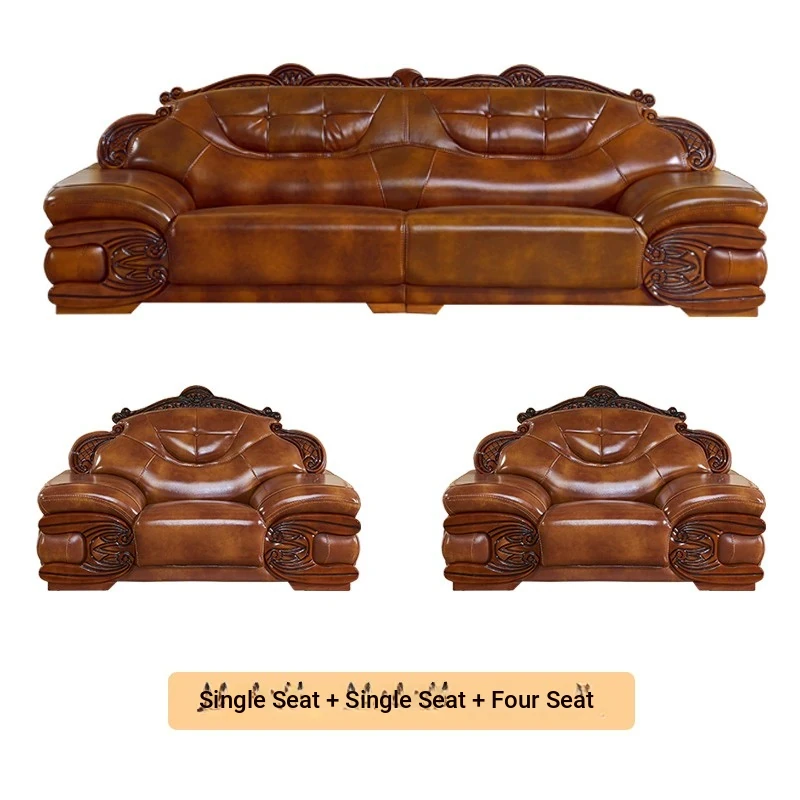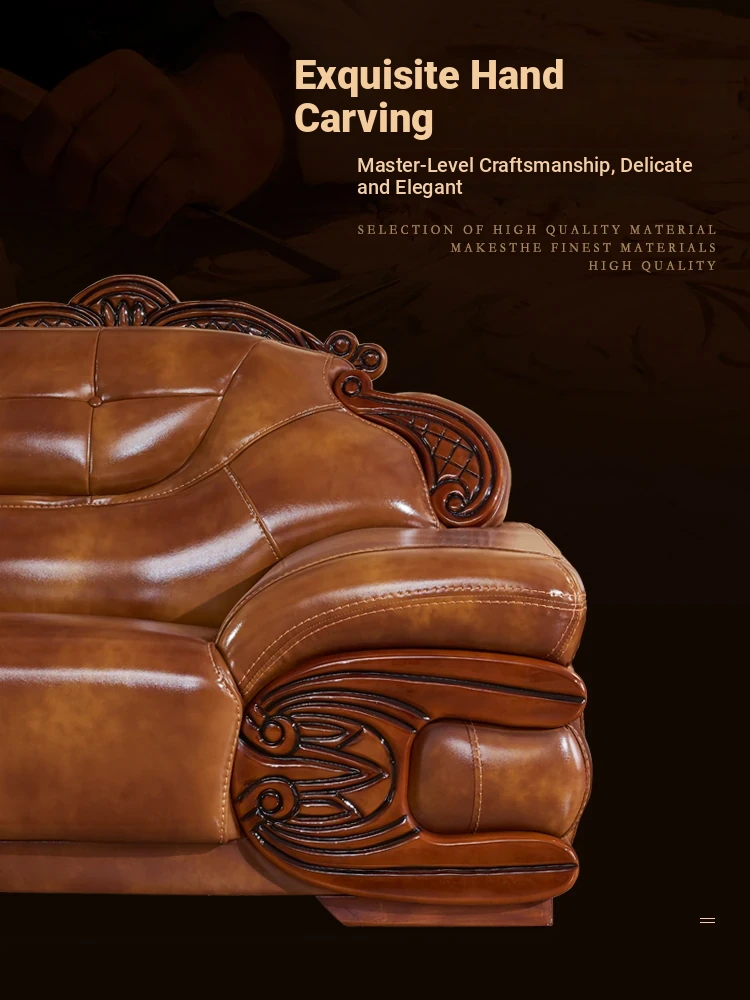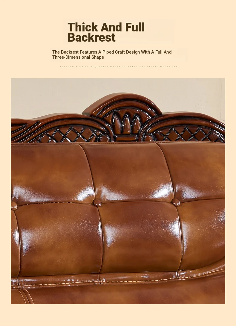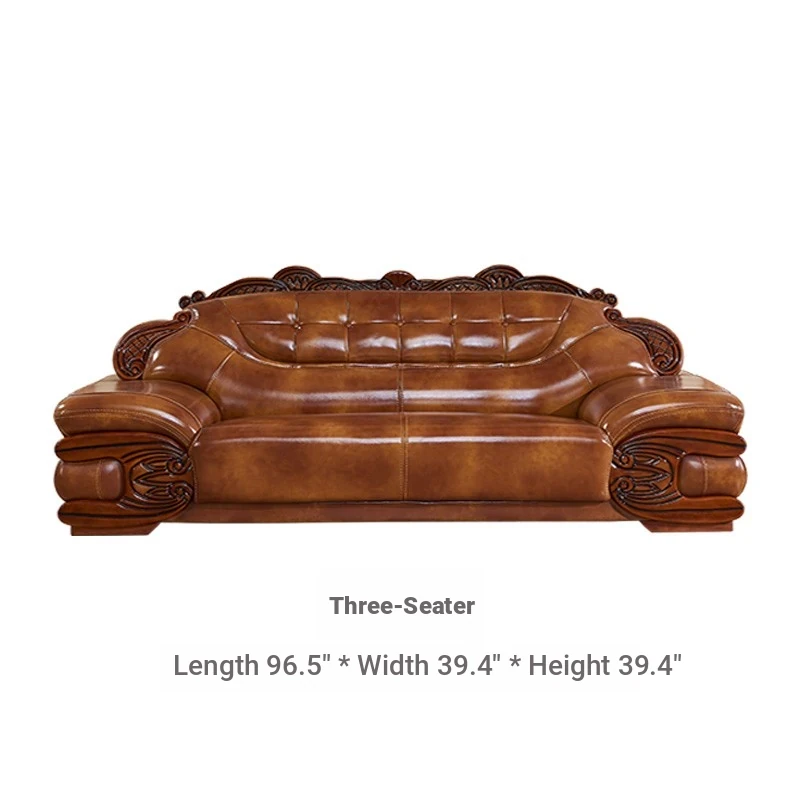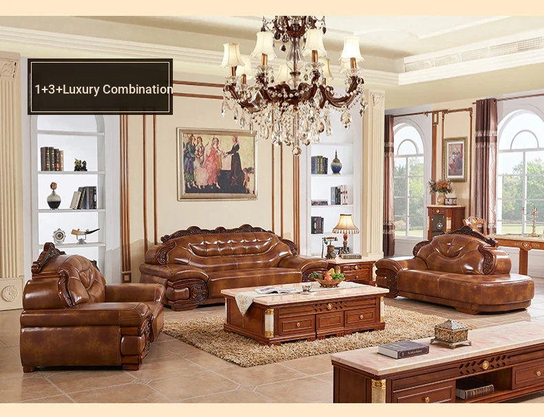Luxurious European Genuine Leather Sofa Set for Spacious Villas - Elegant Solid Wood Living Room Furniture Directly from Foshan Manufacturer