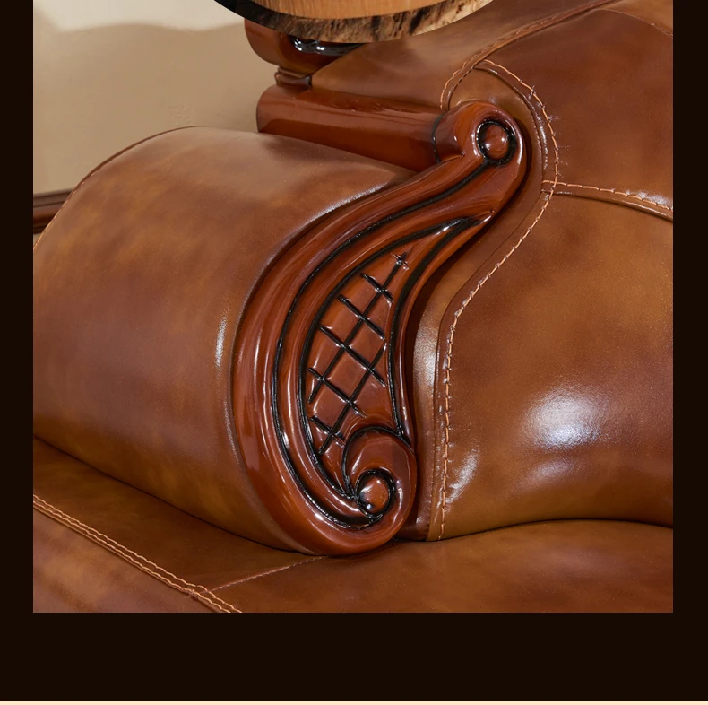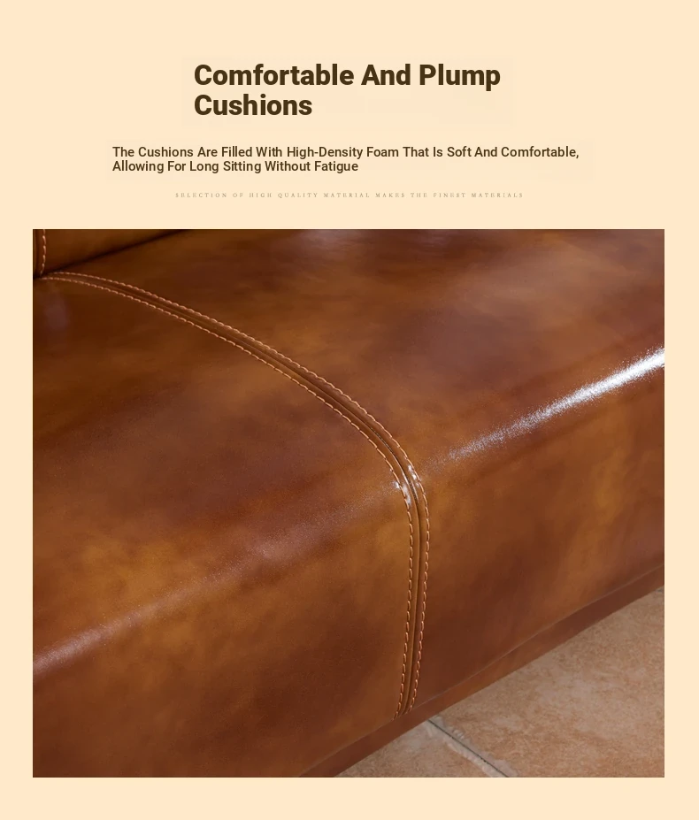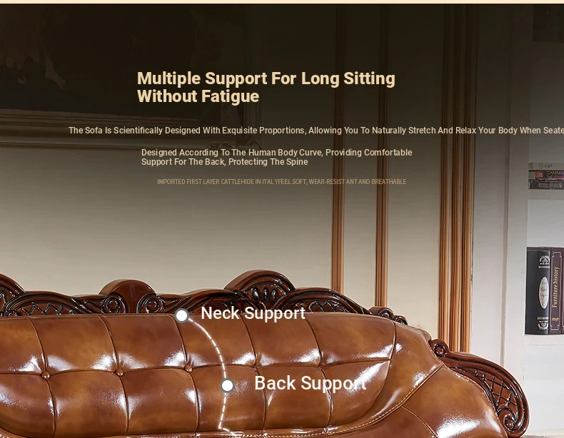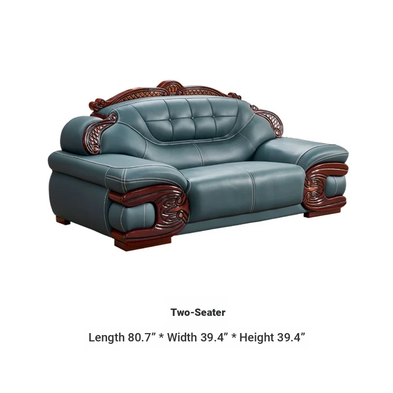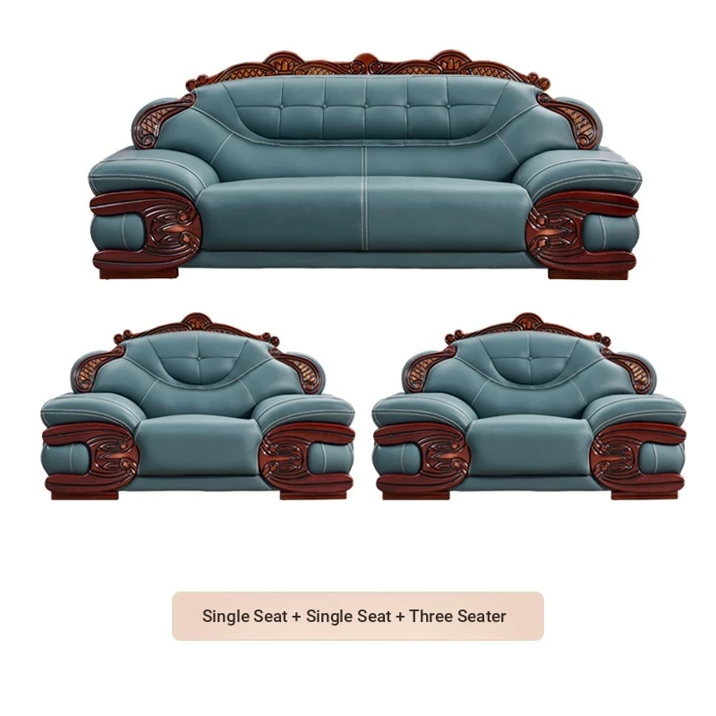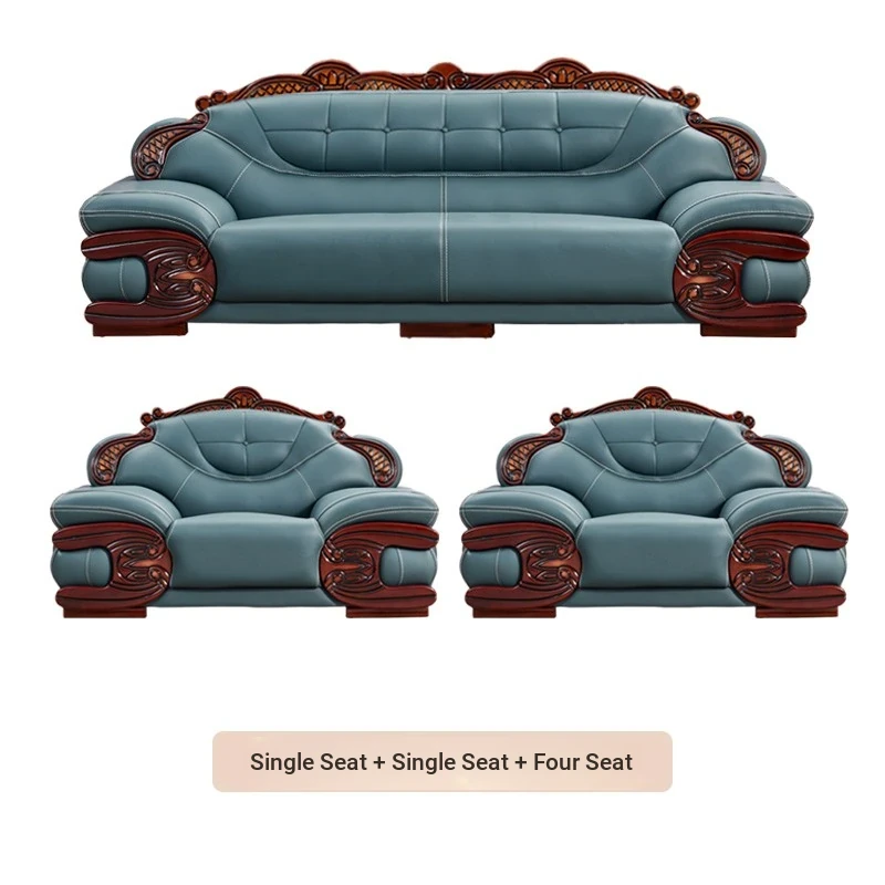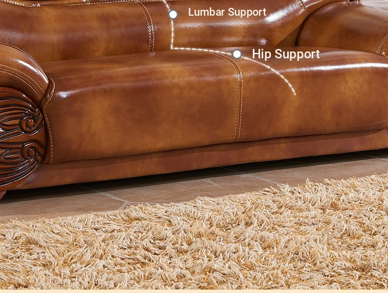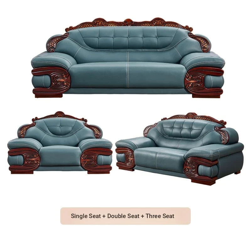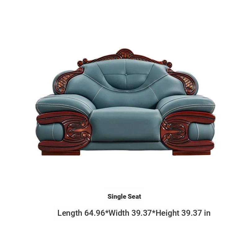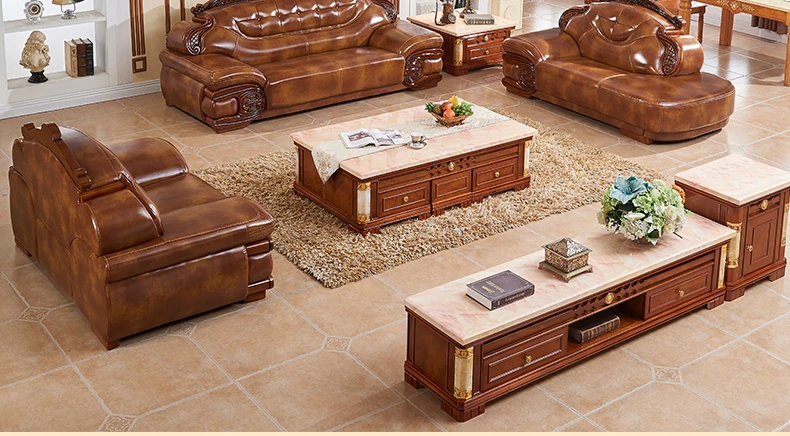 Luxurious European Genuine Leather Sofa Set for Spacious Villas - Elegant Solid Wood Living Room Furniture Directly from Foshan Manufacturer