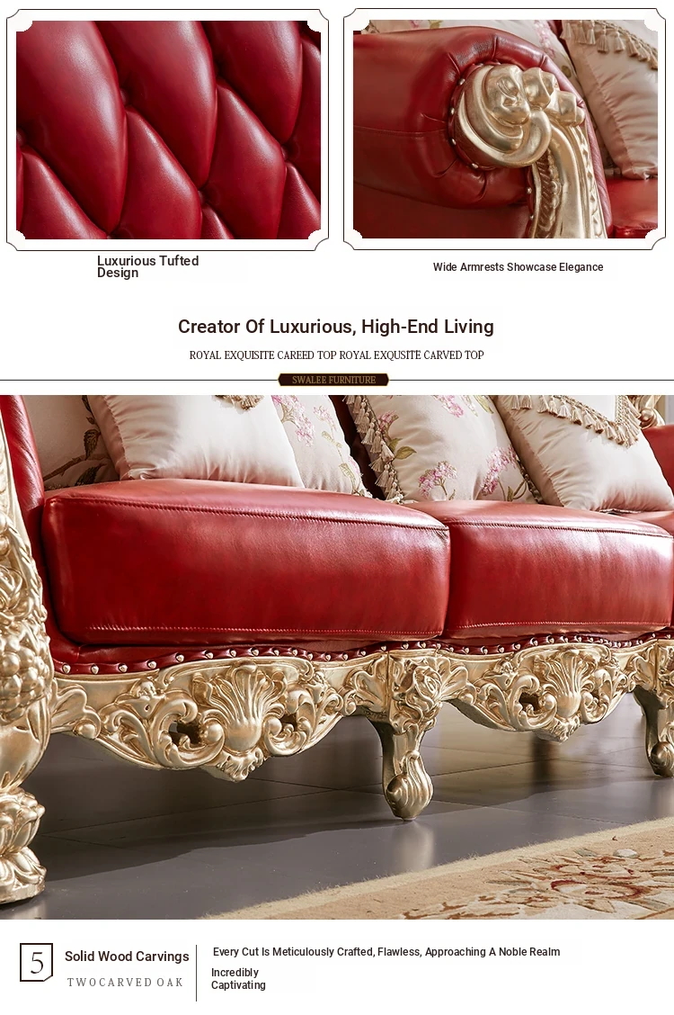 1+1+3 combination [carved oak frame + Import top layer cowhide]]