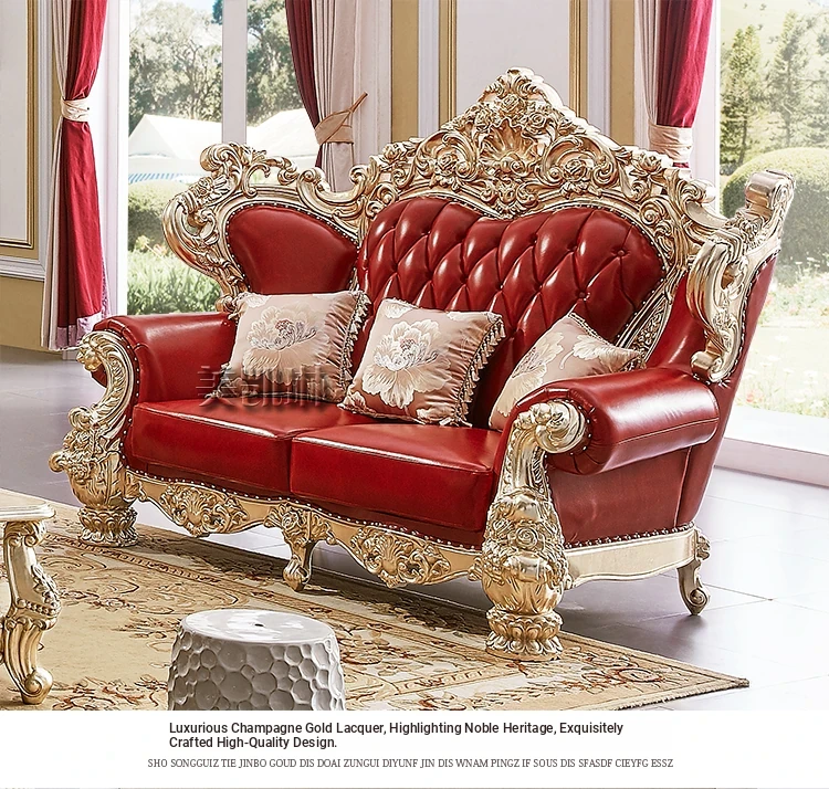 Luxurious European Leather Sofa Set - 123 Combination in Champagne Gold for Spacious Villas, High-End Living Rooms with Solid Wood Construction