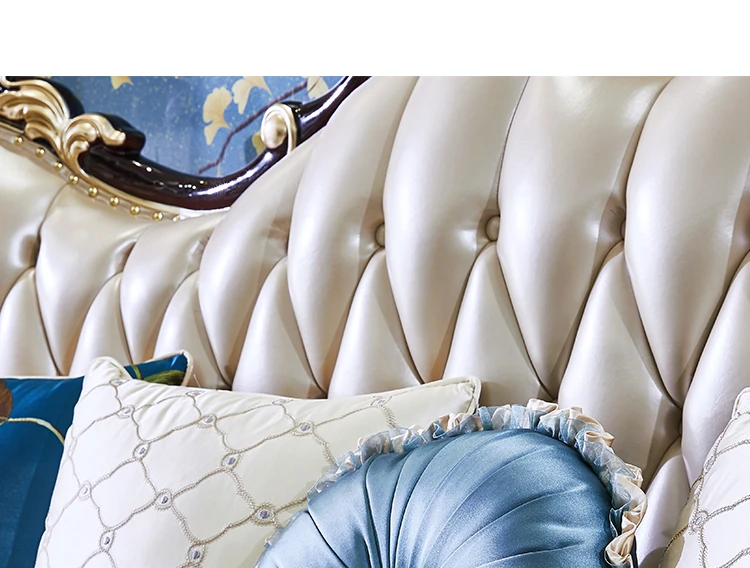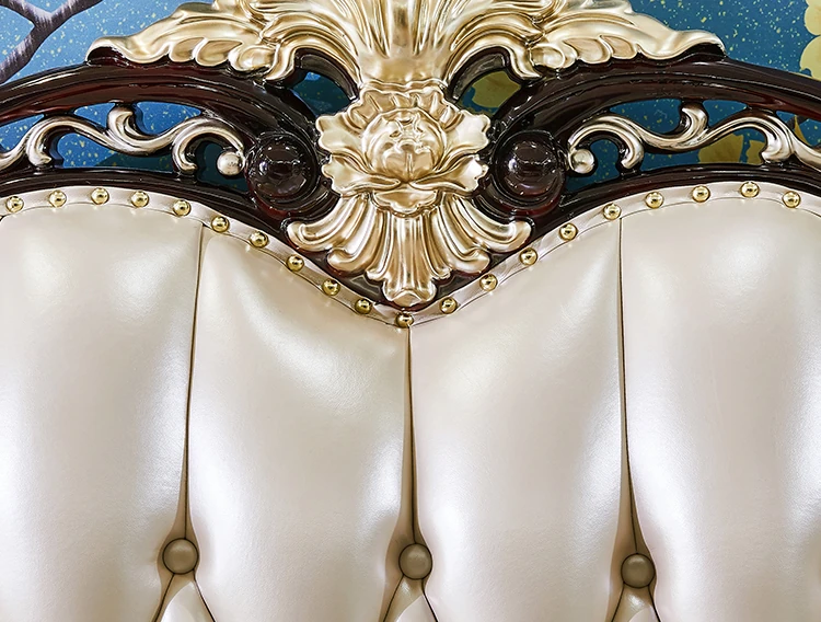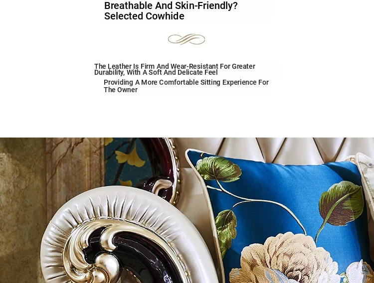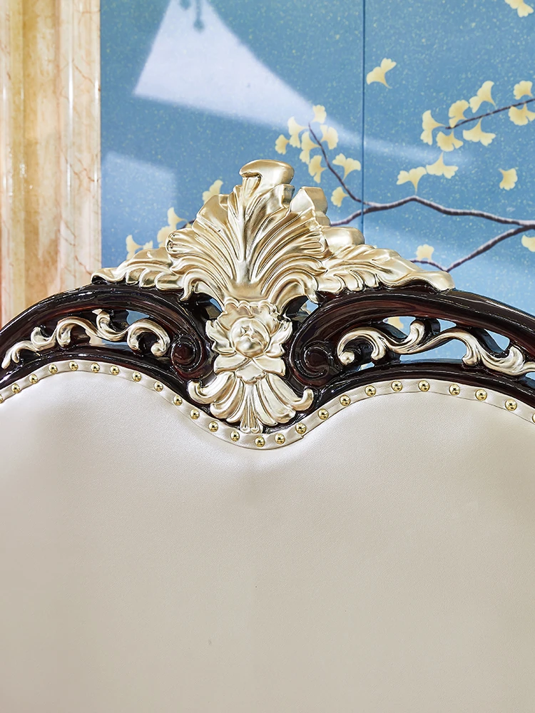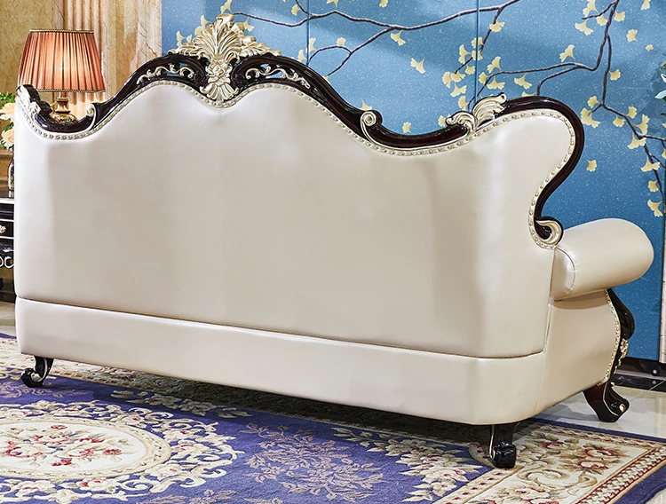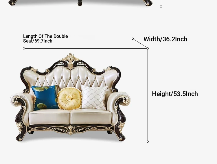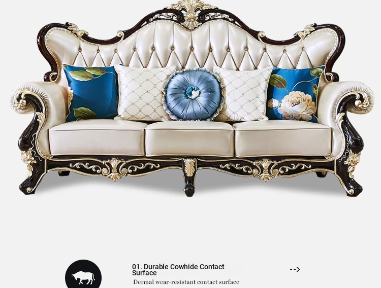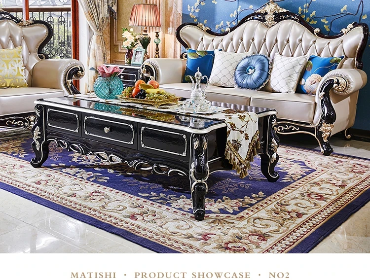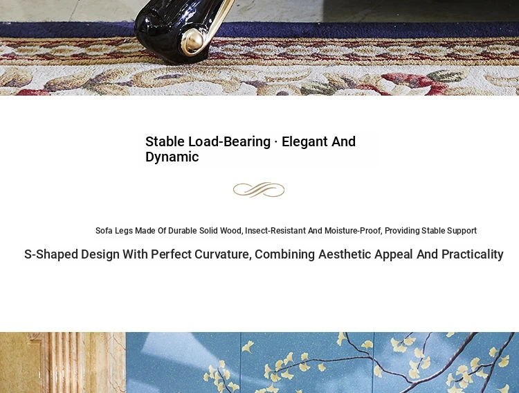 Luxurious European Style Genuine Leather Sofa Set - Elegant Black Ebony with Double-Sided Carvings, Premium Solid Wood for a Chic Living Room Experience