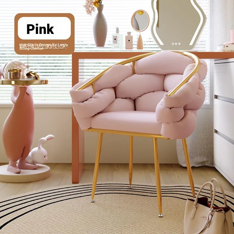 Luxurious Makeup Chair for Home - Stylish and Comfortable Vanity Stool with Backrest, Perfect for Long Sitting, Ideal for Girls' Bedrooms and Nail Art!