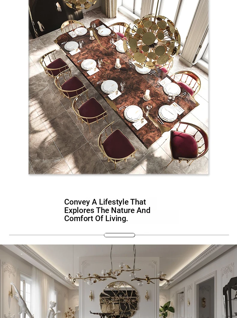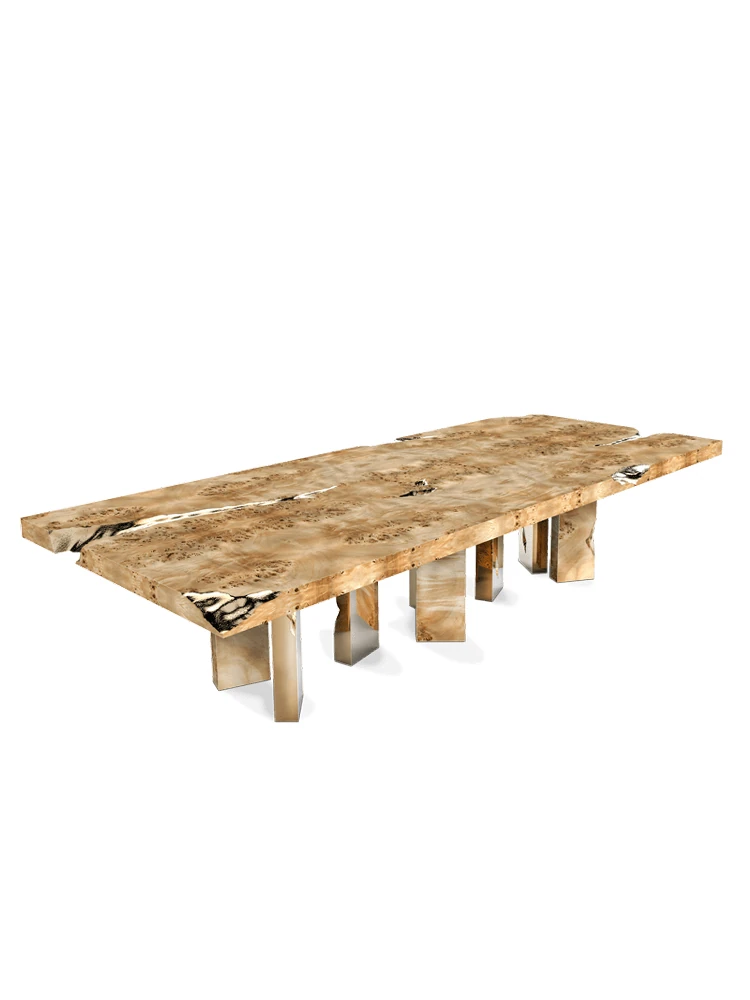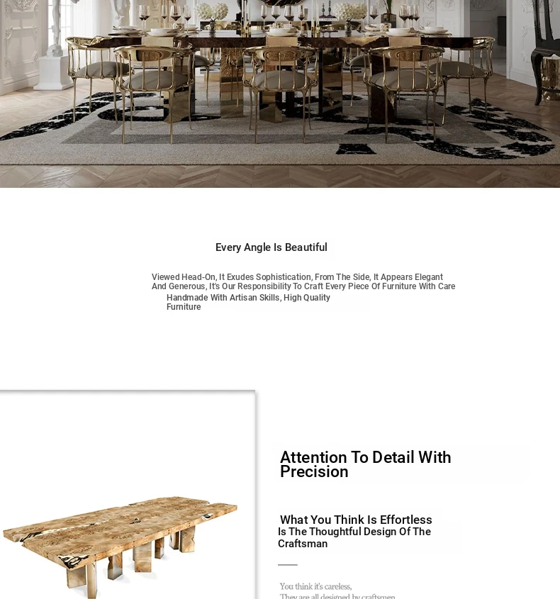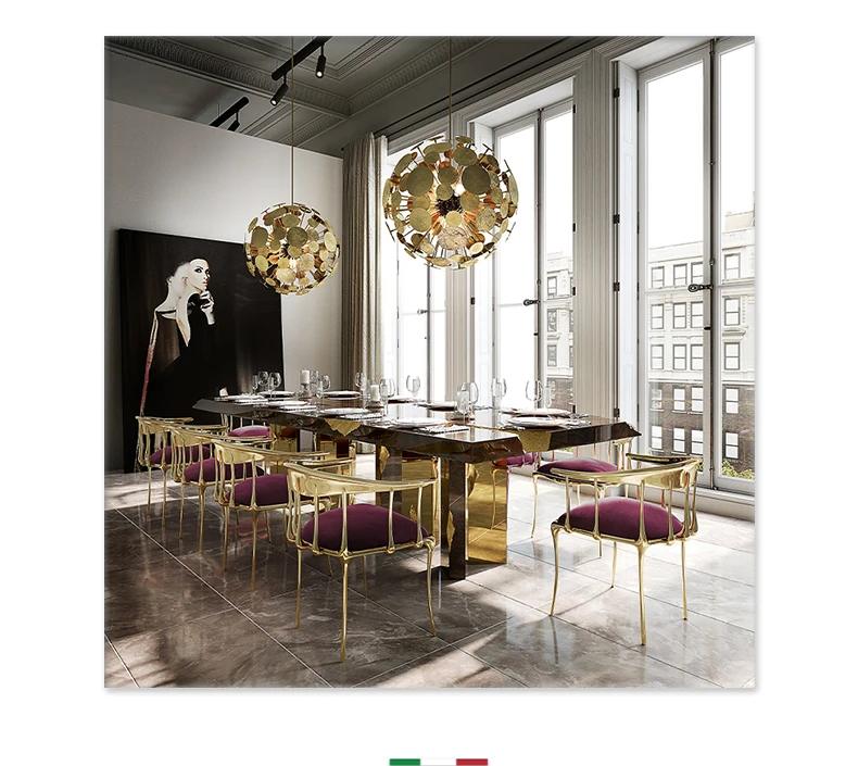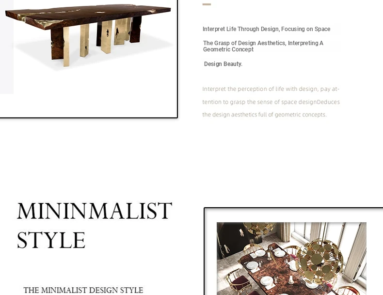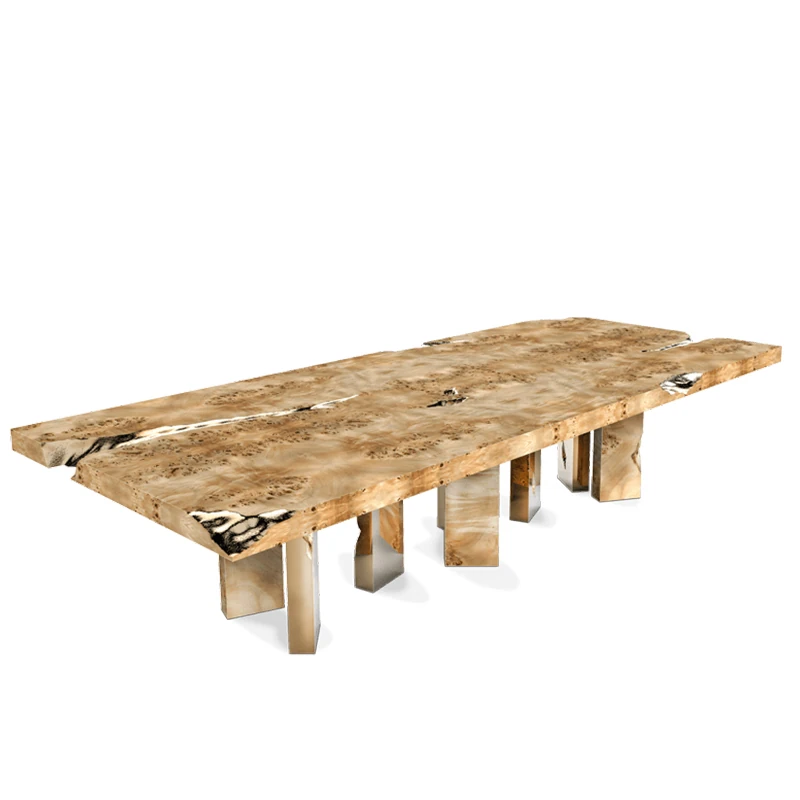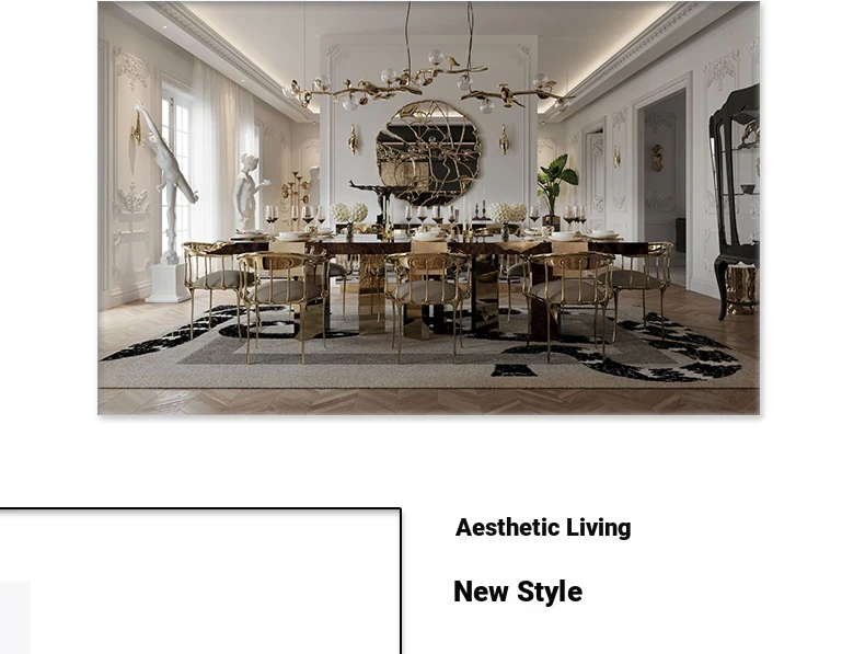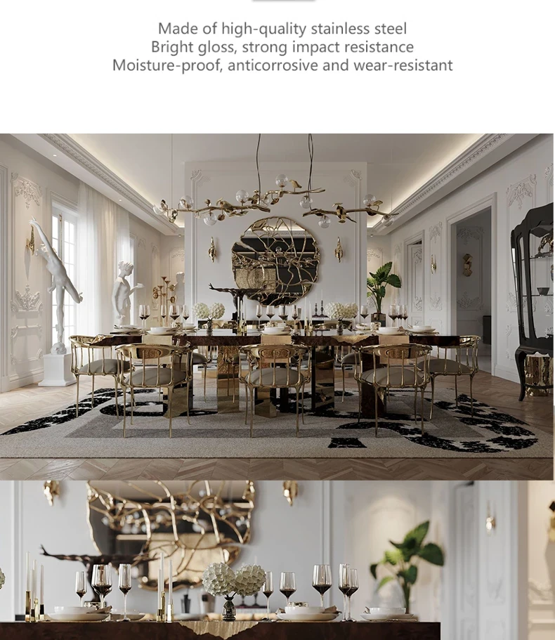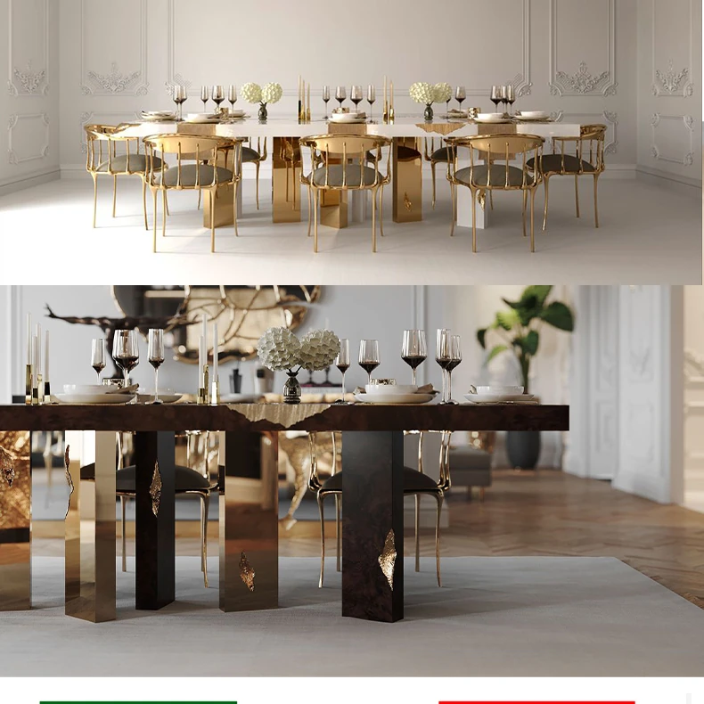Luxurious Rectangular Solid Wood Dining Table with Modern Post-Modern Design - High-End Villa Style Featuring Elegant Stainless Steel Accents