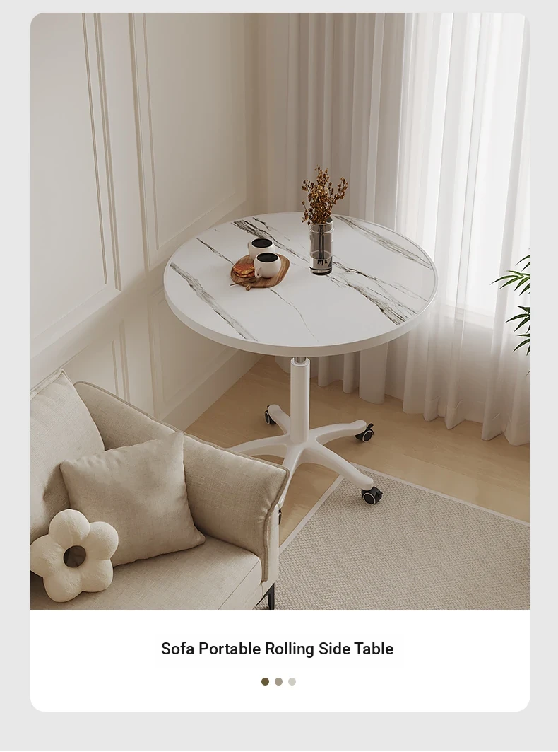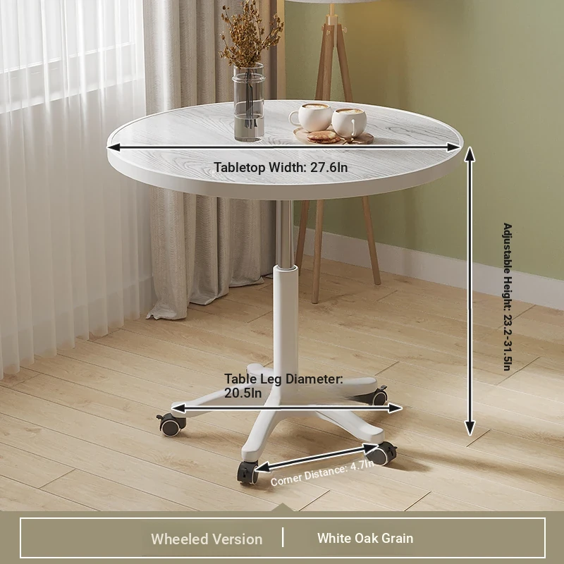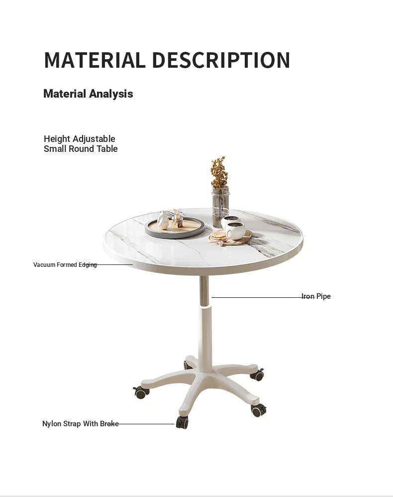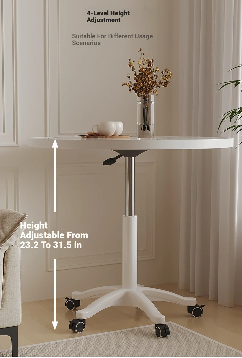 Minimalist Adjustable Round Balcony Table with Wheels – Versatile Reception, Meeting, or Side Table for Sofas and Beds, Perfect for Small Spaces