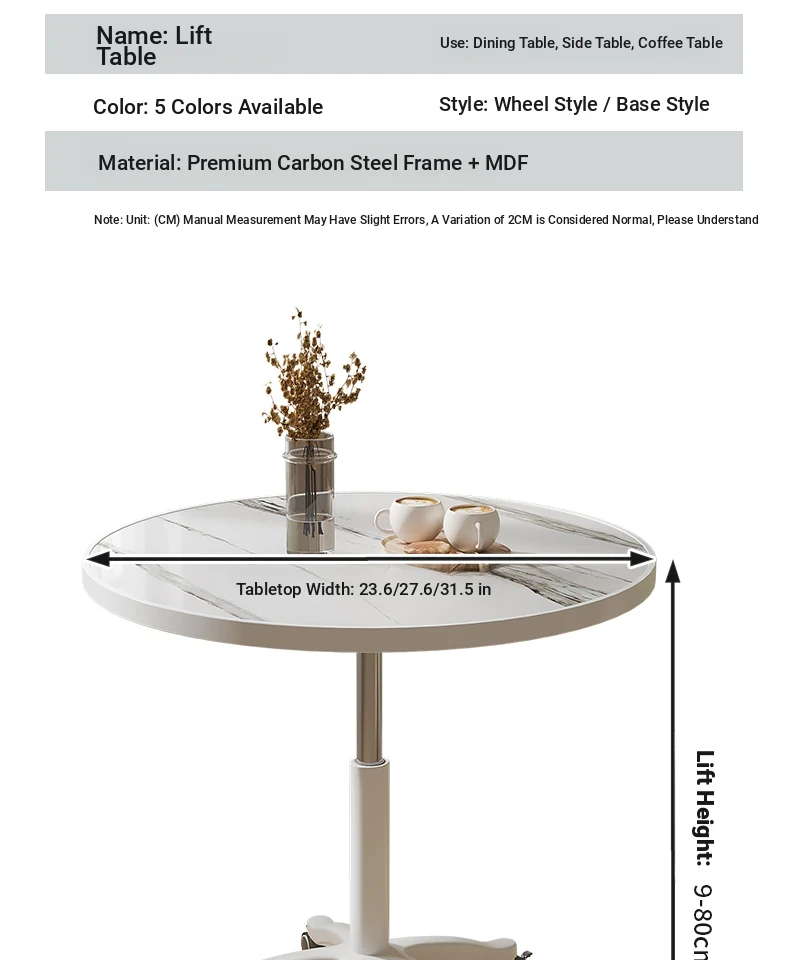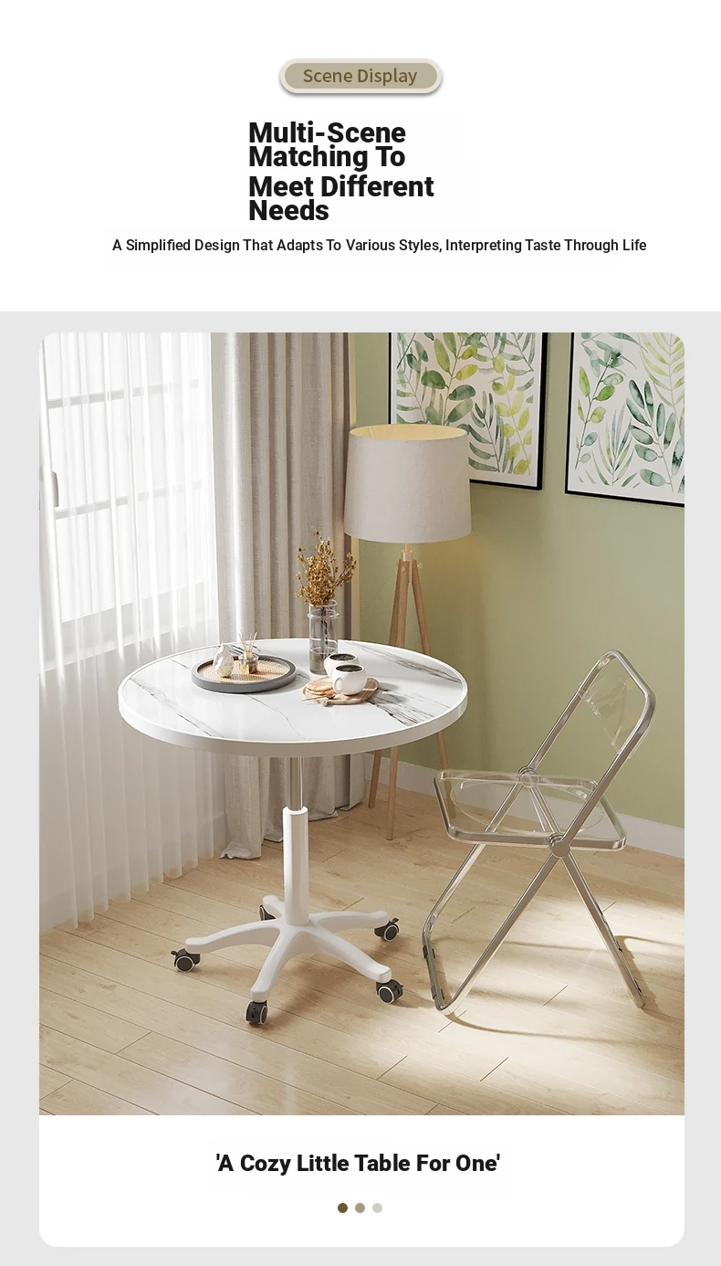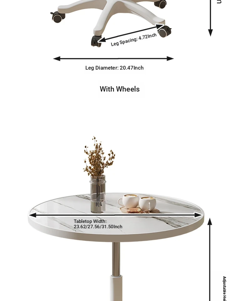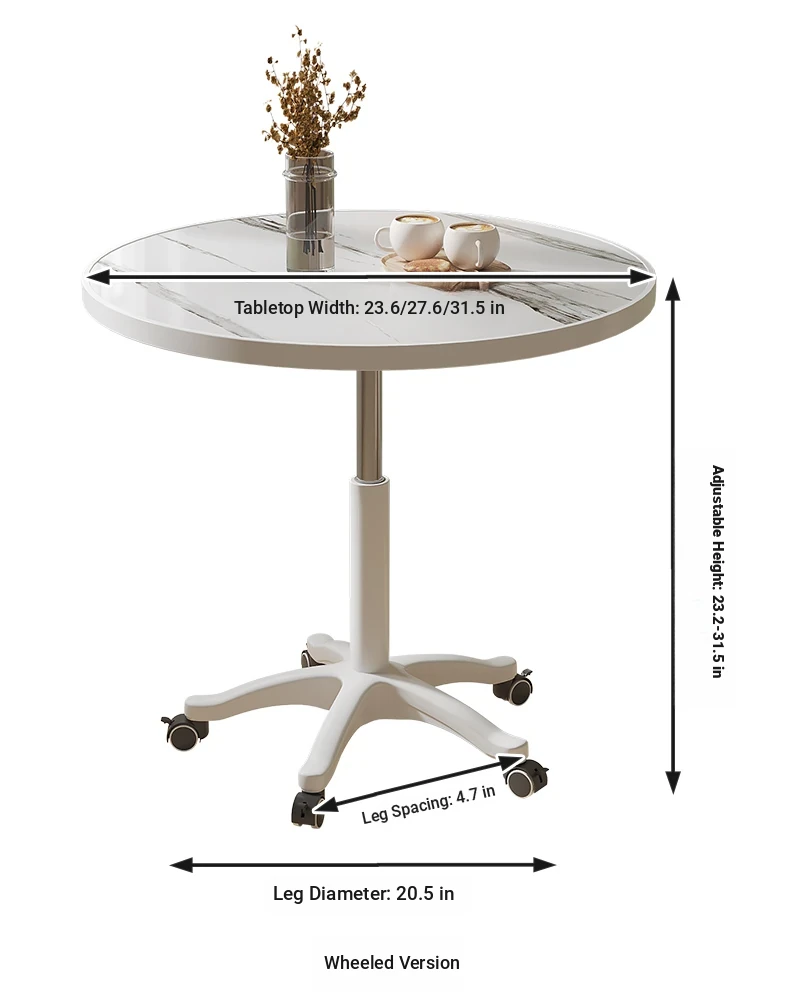 Minimalist Adjustable Round Balcony Table with Wheels – Versatile Reception, Meeting, or Side Table for Sofas and Beds, Perfect for Small Spaces