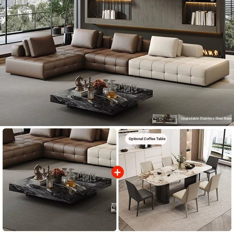Minimalist Lawrence WJY139 Leather Sofa Set - Luxurious and Stylish for Villa Living Rooms, Perfect for an Elegant and Spacious Home.