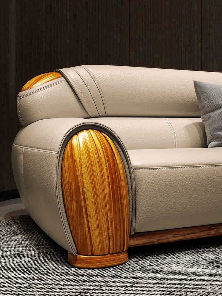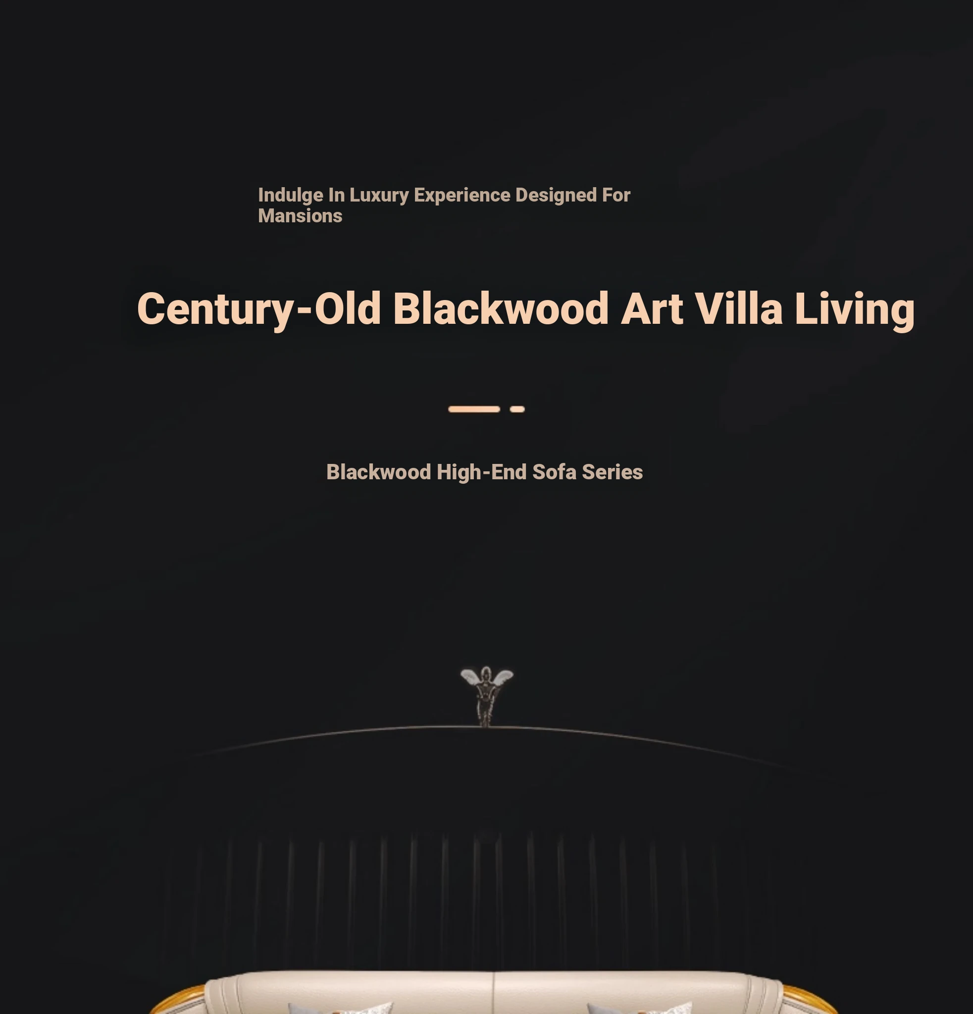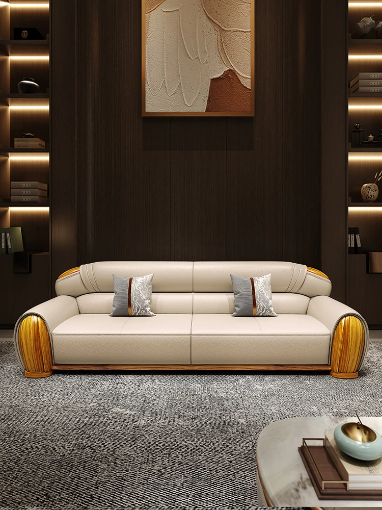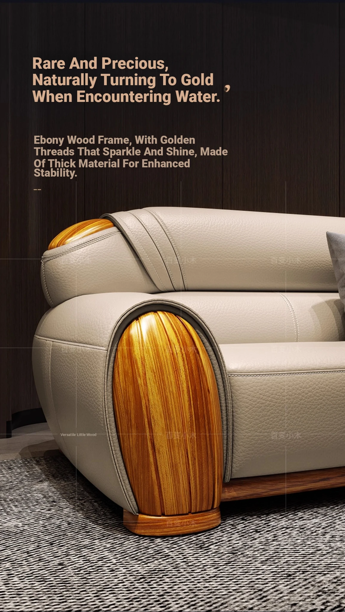 Modern Blackwood Leather Sofa - Luxurious Minimalist Design for Villa Living Room, New Chinese Style, Spacious and Elegant, Made by Foshan Manufacturer