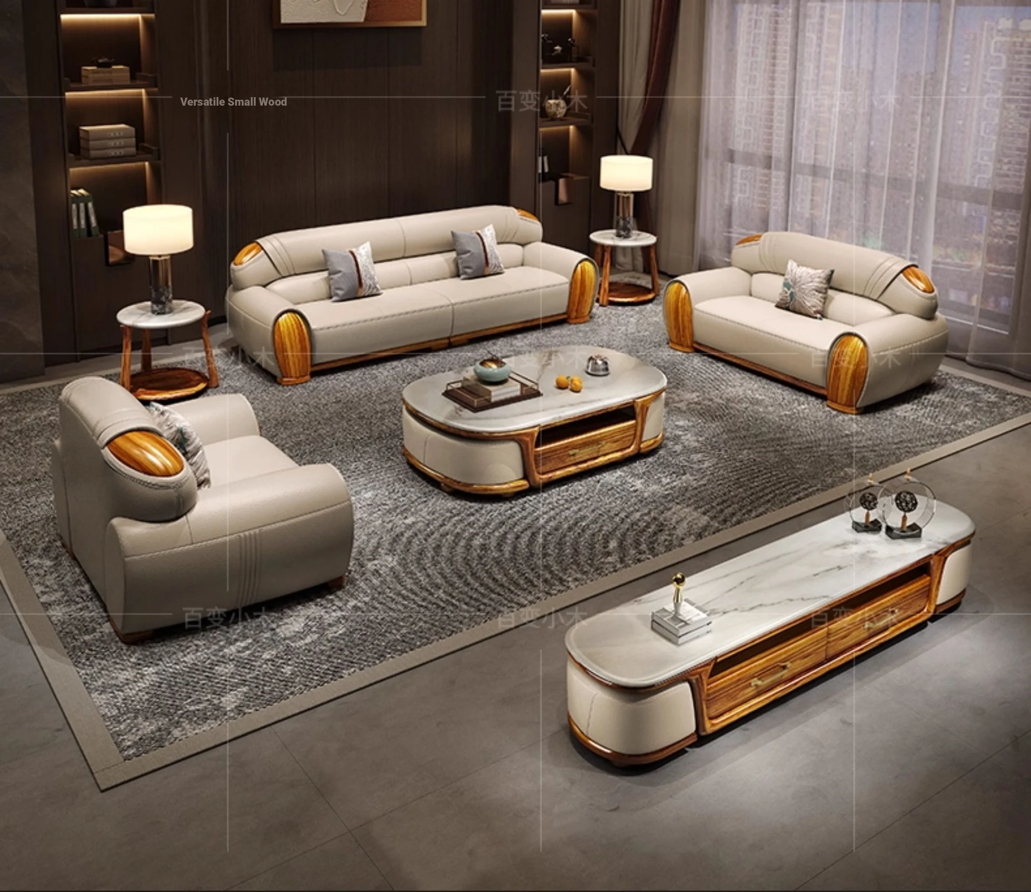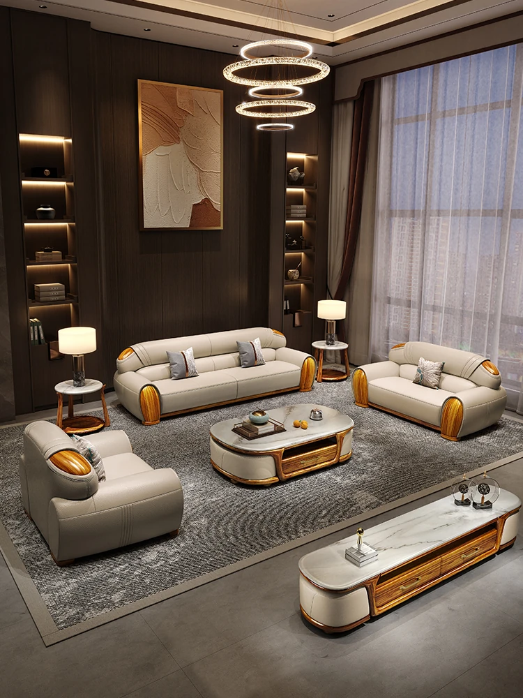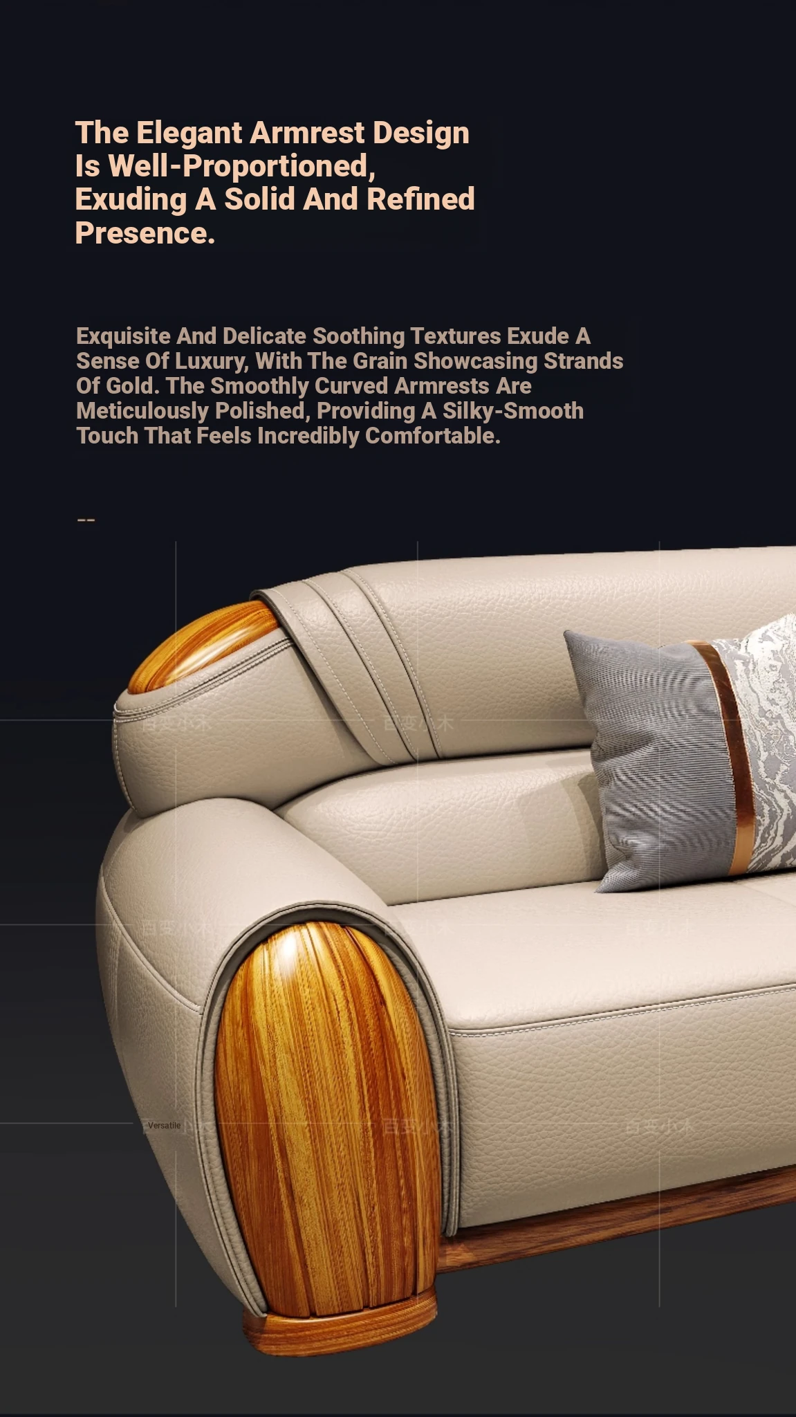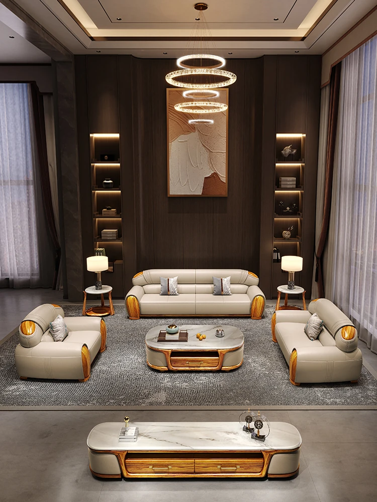 Modern Blackwood Leather Sofa - Luxurious Minimalist Design for Villa Living Room, New Chinese Style, Spacious and Elegant, Made by Foshan Manufacturer