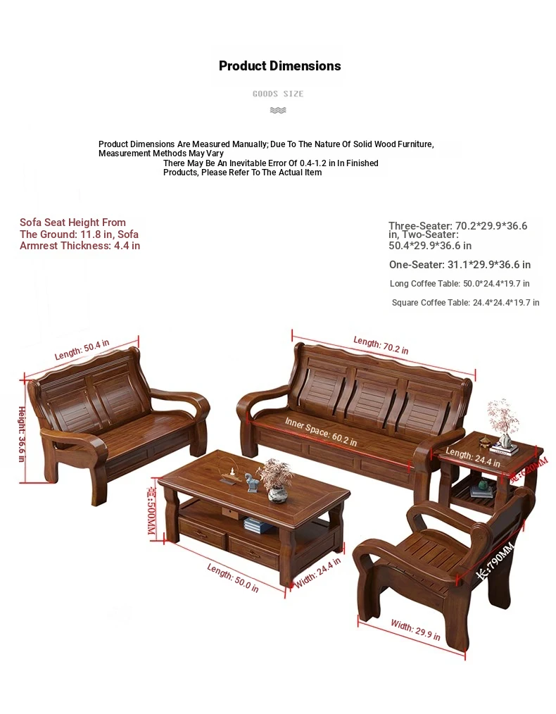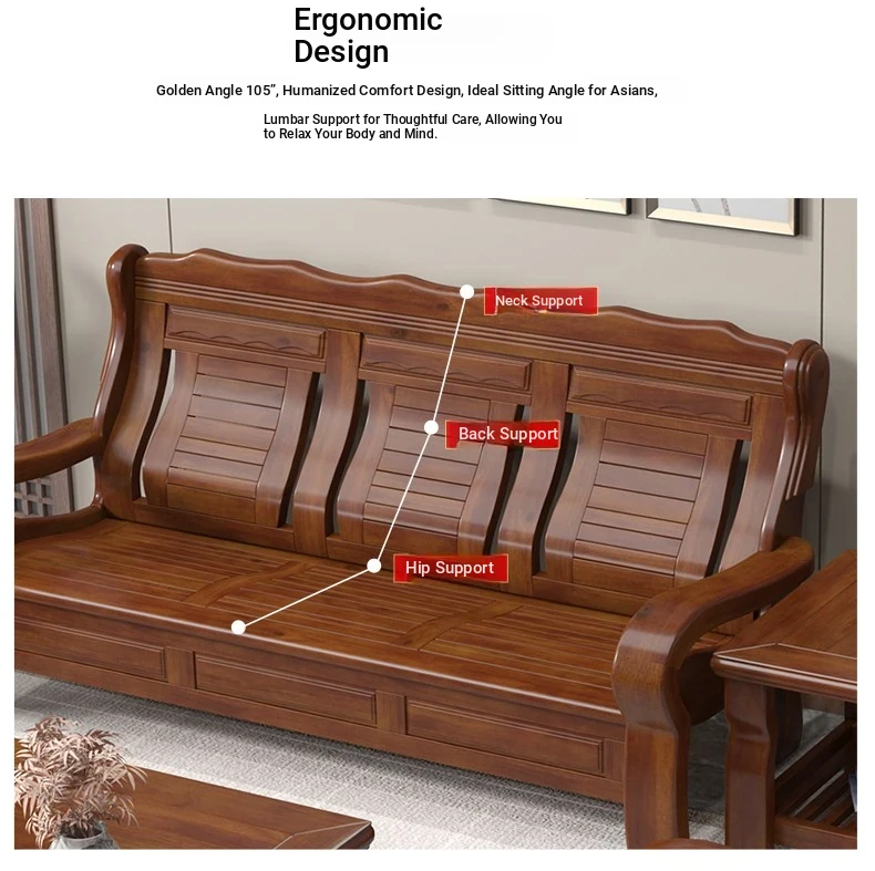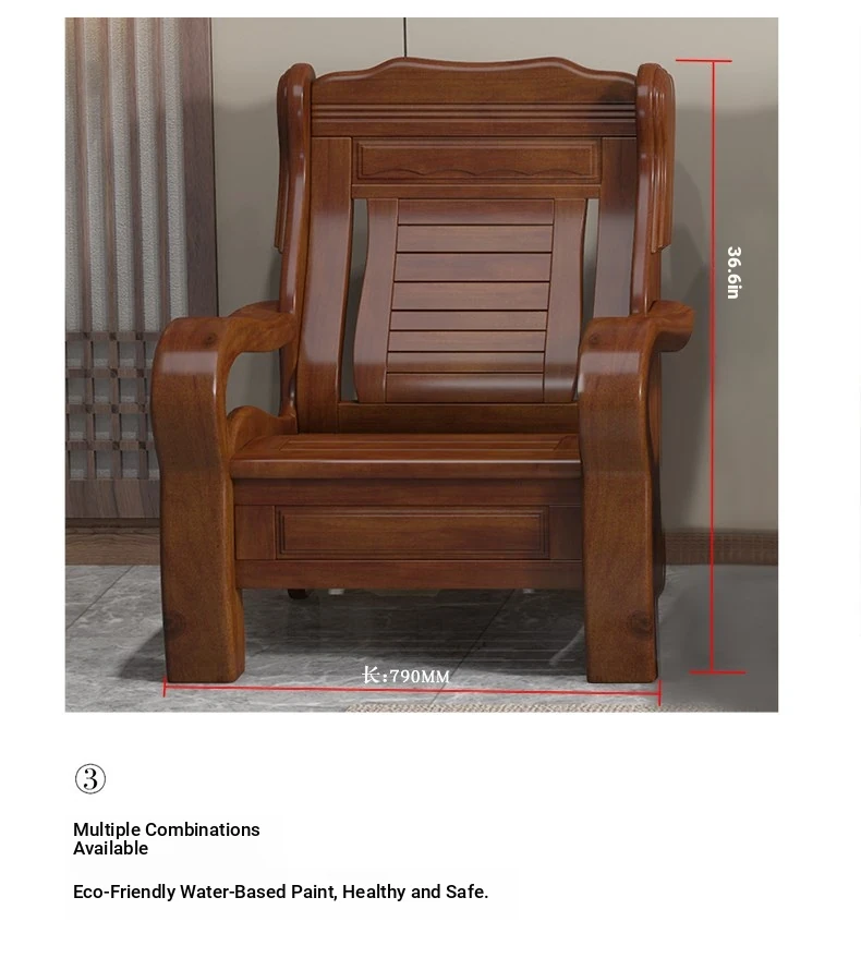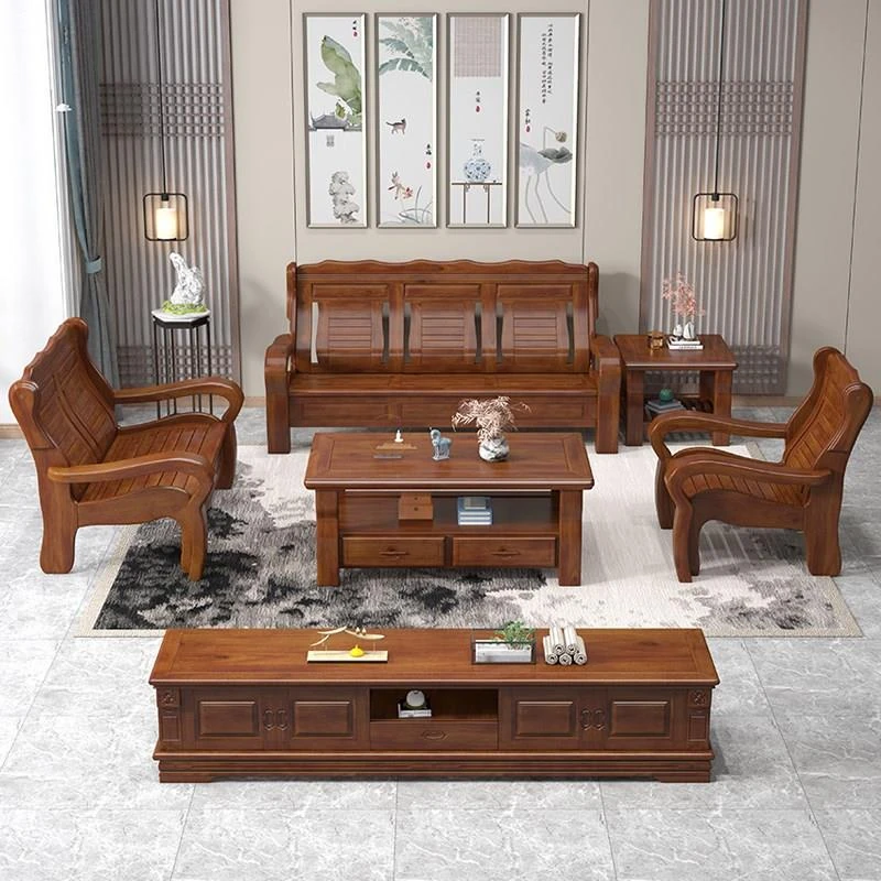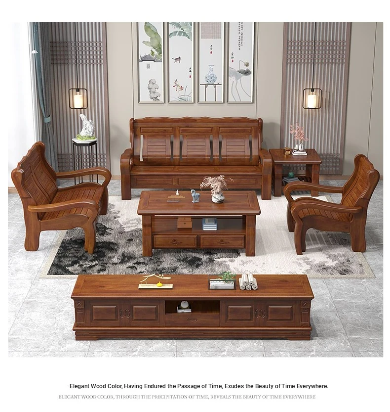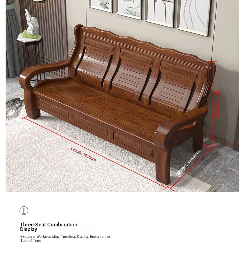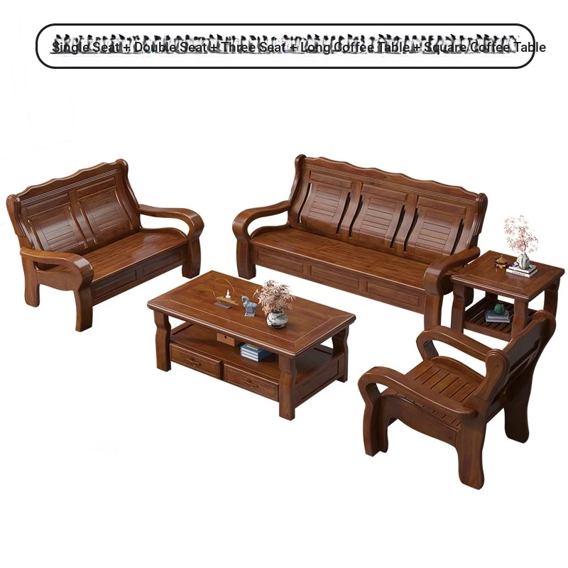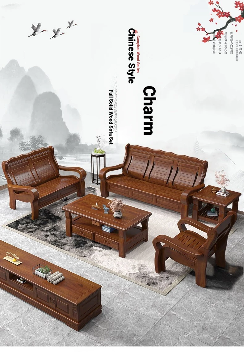 Modern Chinese Solid Wood Sofa Set - Economical Chingcar Wood Furniture for Small Living Rooms - Includes 1+2+3 Configuration for Stylish Comfort