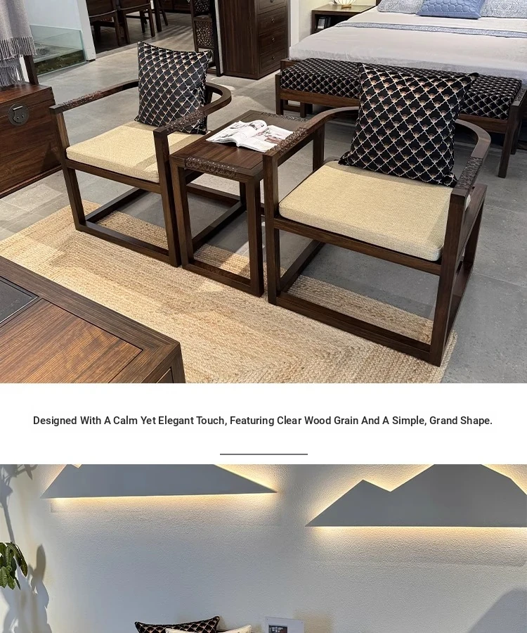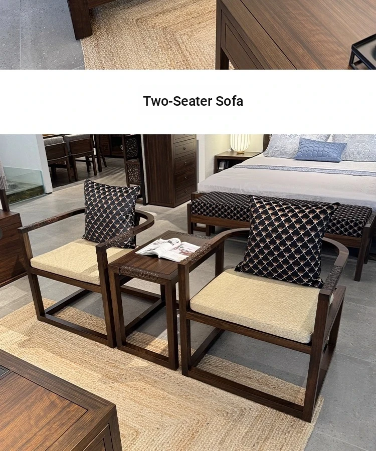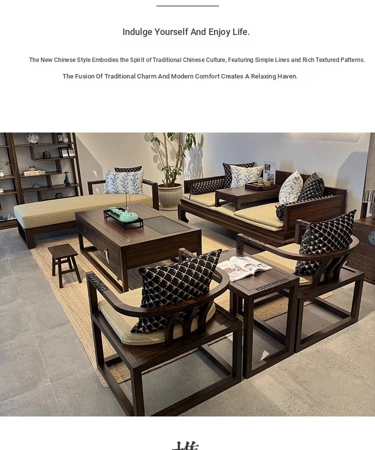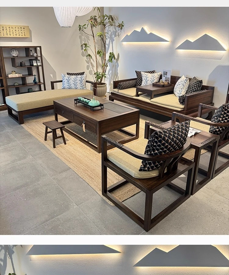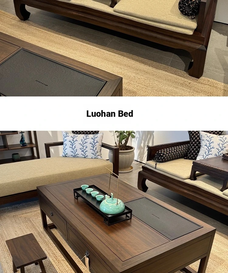 Modern Chinese Solid Wood Sofa Set with Luohan Bed - Zen Style Ming Dynasty Living Room Furniture for Small Spaces, Featuring Elegant Wenge Wood Design