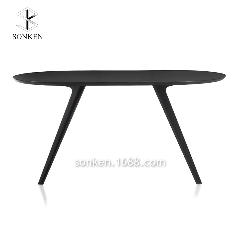 Modern Italian Minimalist Oval Spray-Lacquered Black and White Conference Table - Perfect for Cafés and Tea Shops