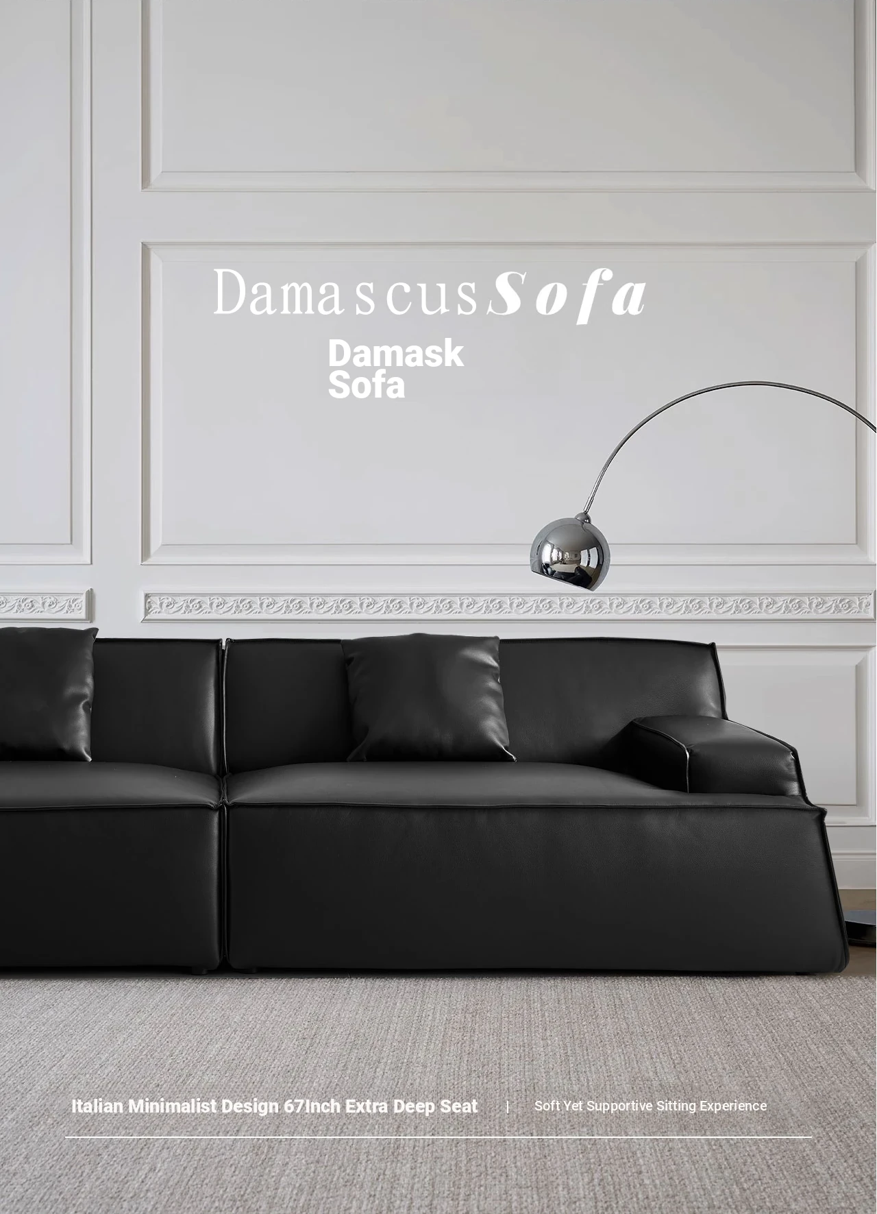 Modern Minimalist Baxter Italian Sofa - Luxurious Genuine Damascus Leather for Small Living Spaces - Perfect for Stylish Interiors