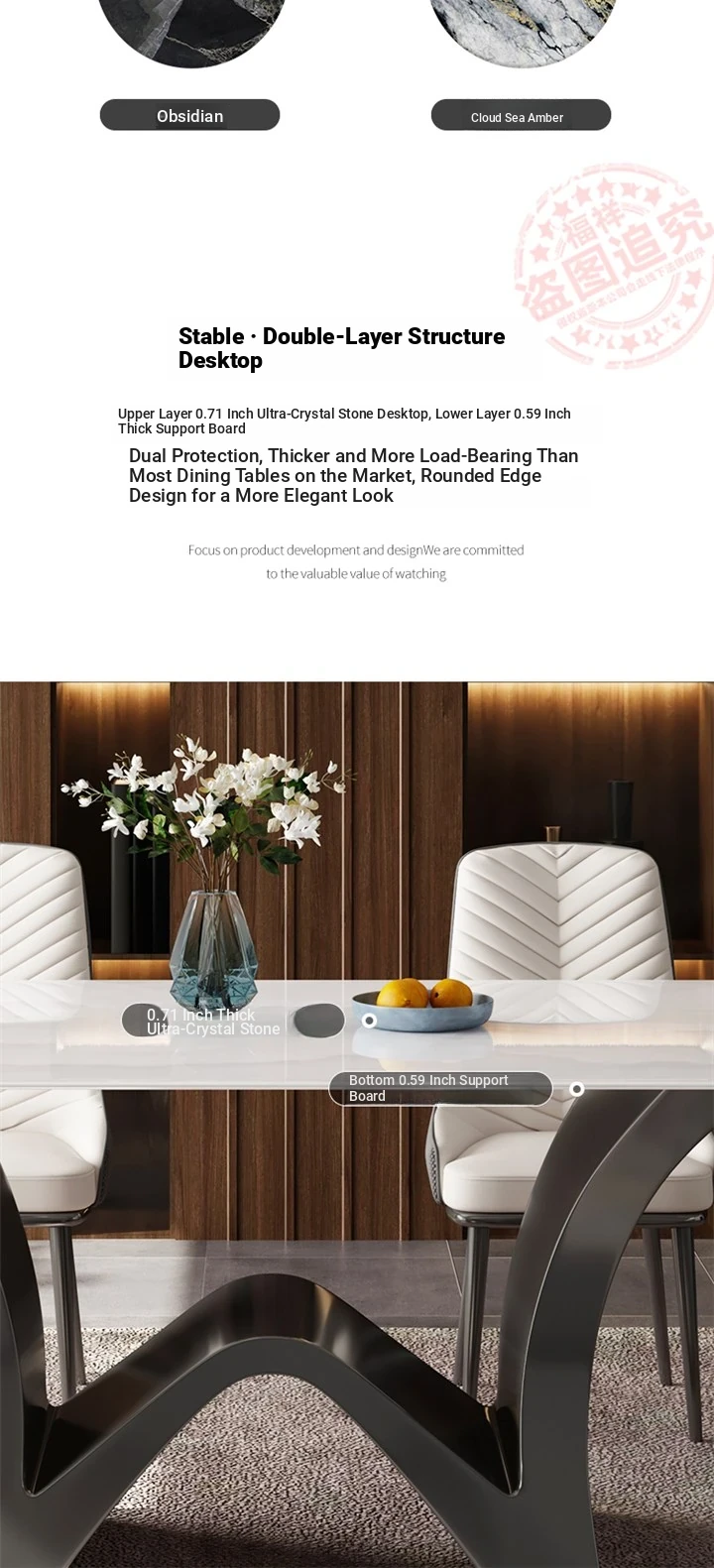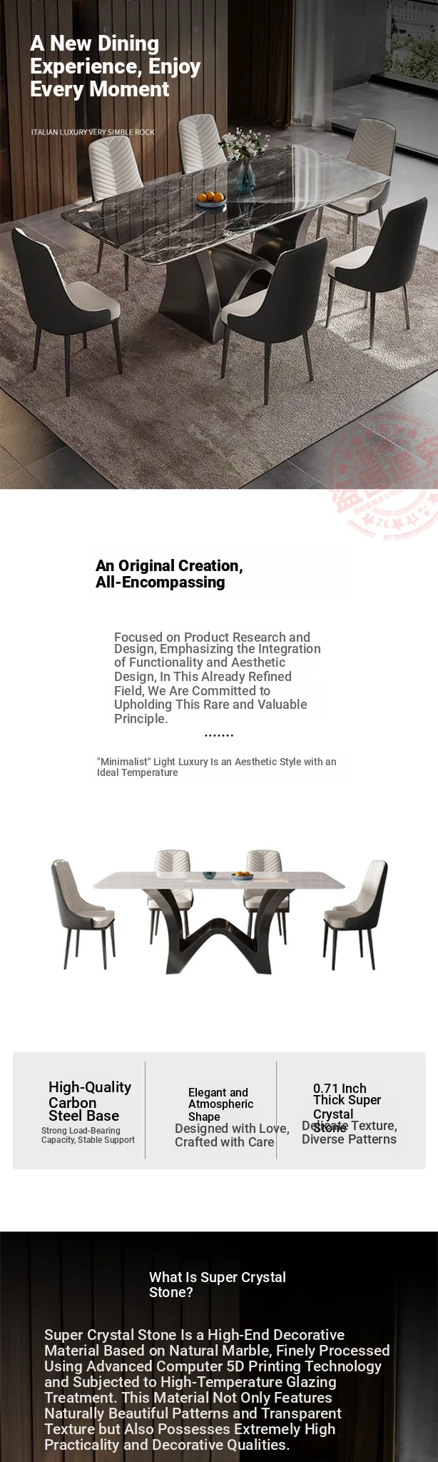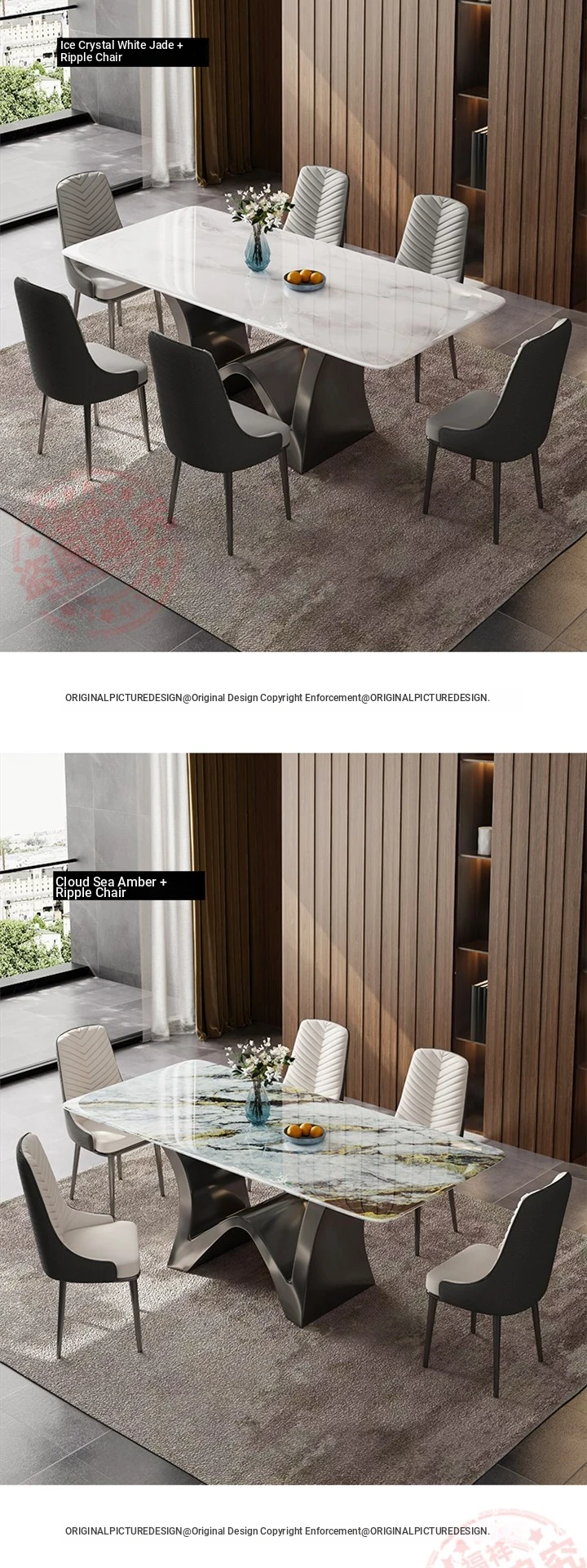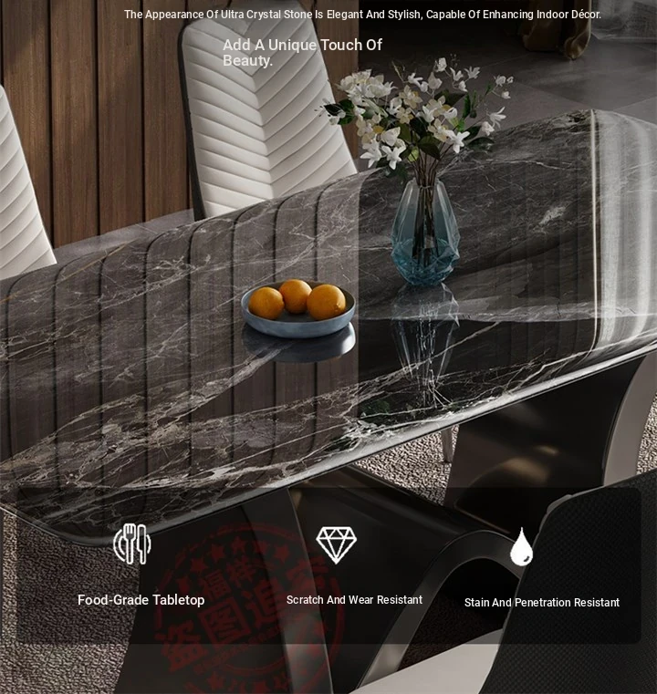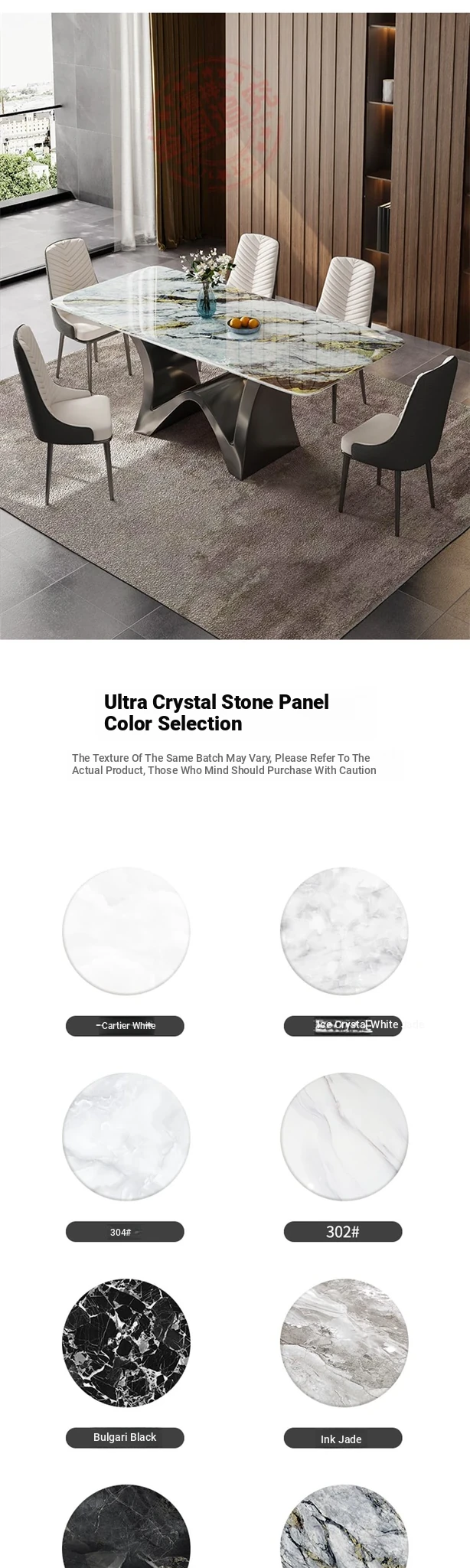 C73# Super Crystal Stone Square Table +6 Cat Scratch Skin Fan-shaped Chairs [Various Textures Optional]]