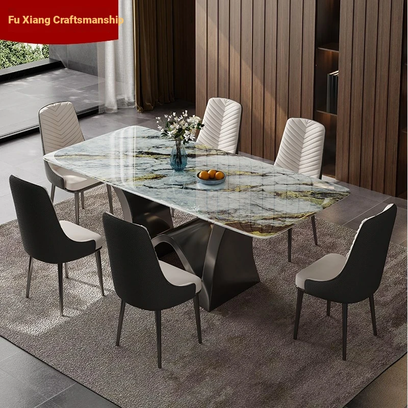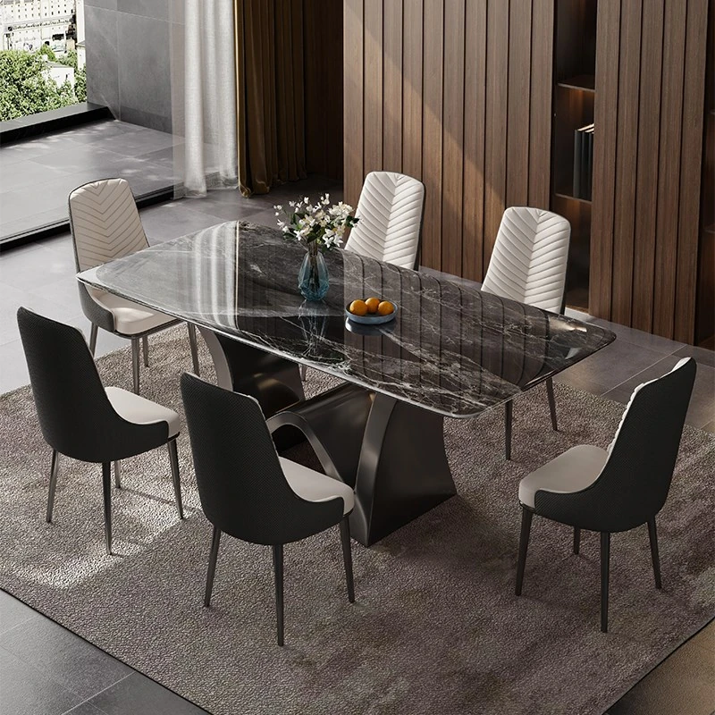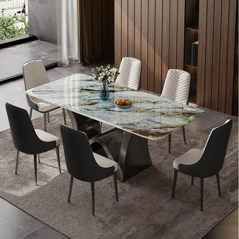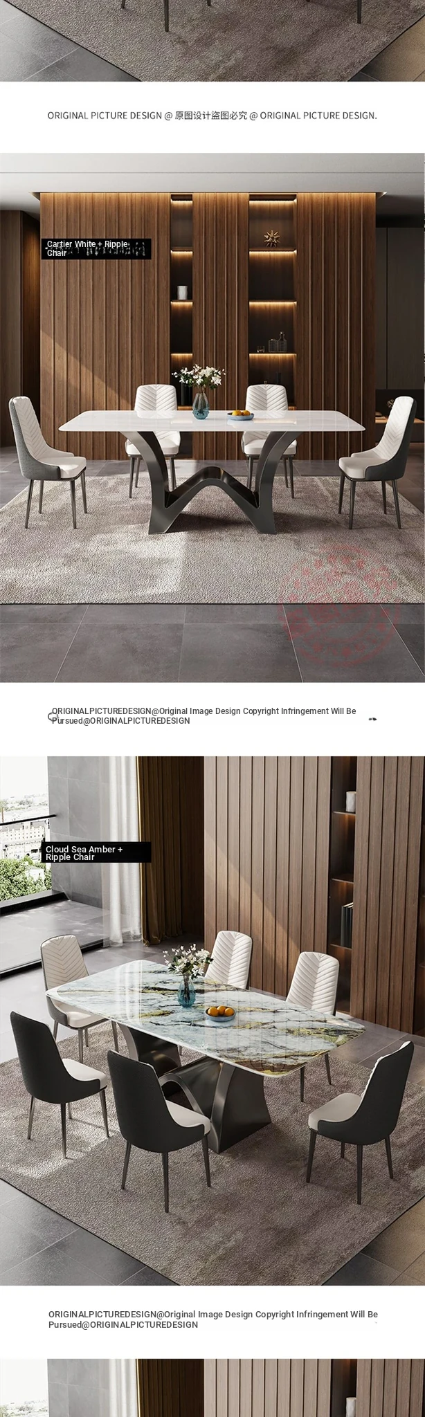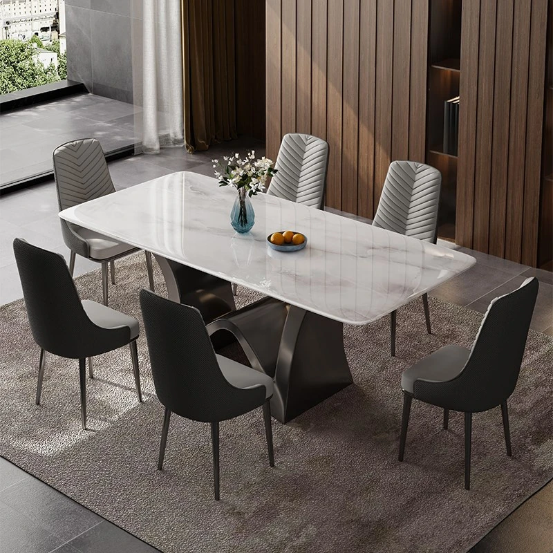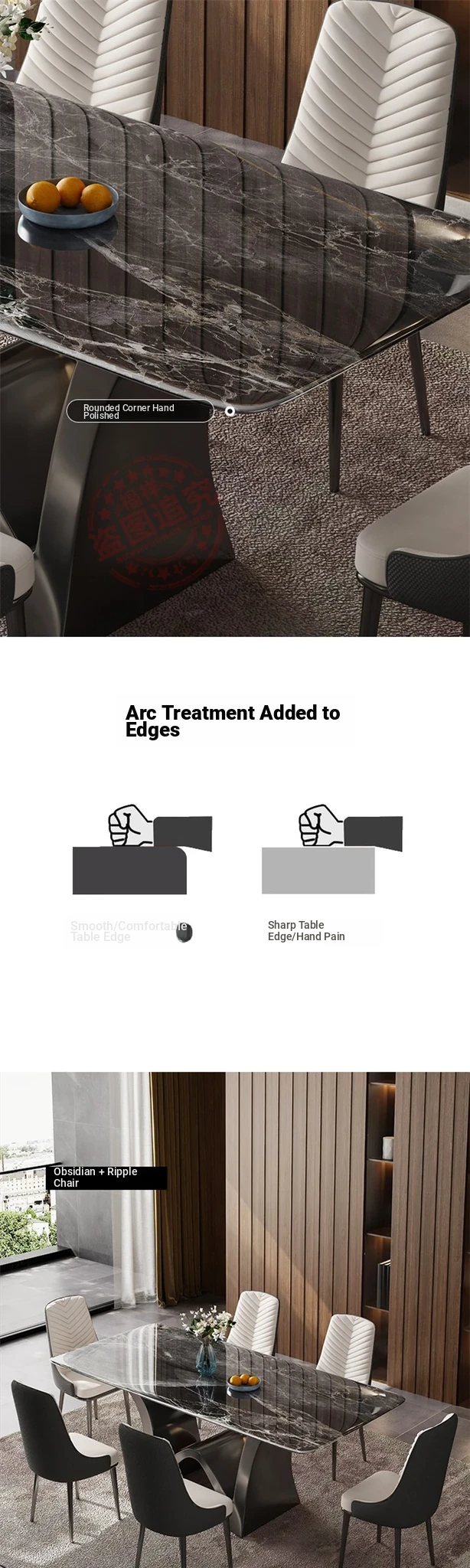 C73# Super Crystal Stone Square Table +6 Cat Scratch Skin Fan-shaped Chairs [Various Textures Optional]]