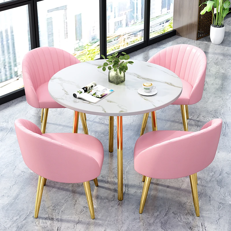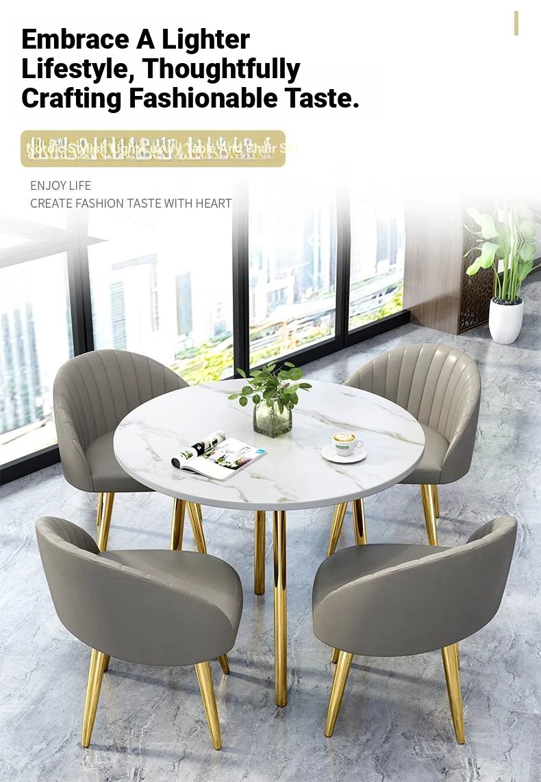 Modern Minimalist Reception Table and Chair Set for Sales Office – Stylish Round Table for Casual Business, Milk Tea, and Dessert Shop – Elegant and Luxurious Design
