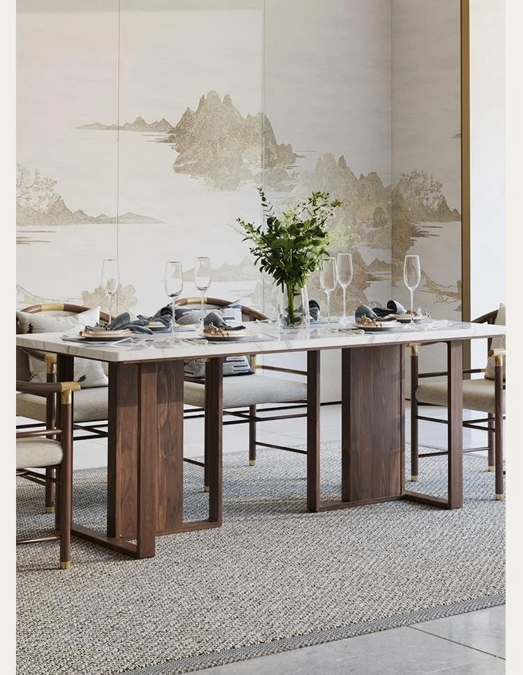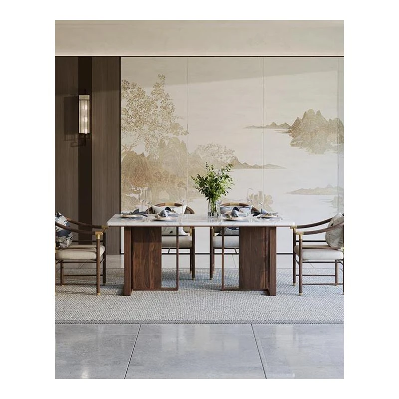 Modern Minimalist Solid Wood Dining Table and Chair Set - New Chinese Style Square Dining Table for Small to Medium-Sized Dining Rooms