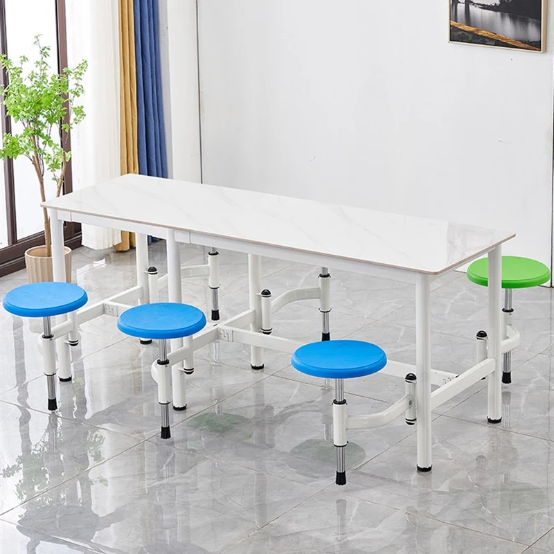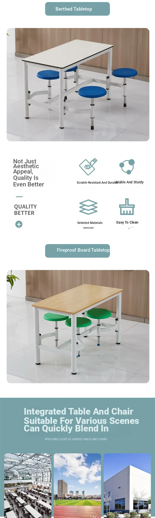 Modern School Cafeteria Four-Person Dining Table Set - Versatile and Space-Saving Furniture for Company Staff and Fast Food Restaurants