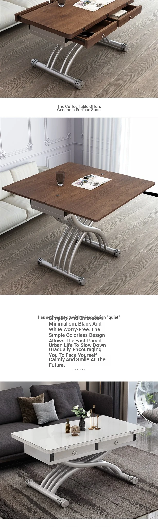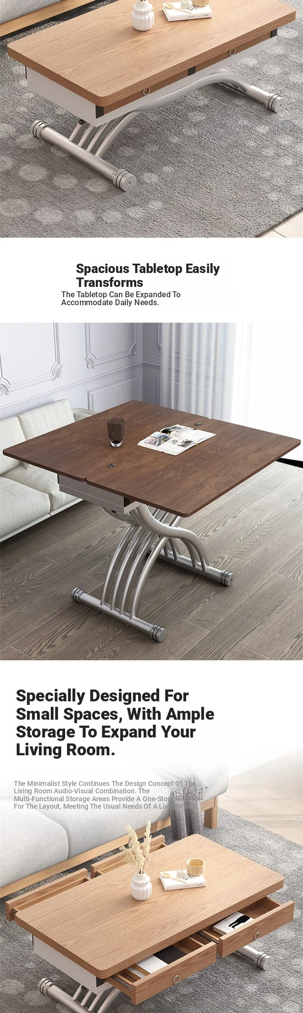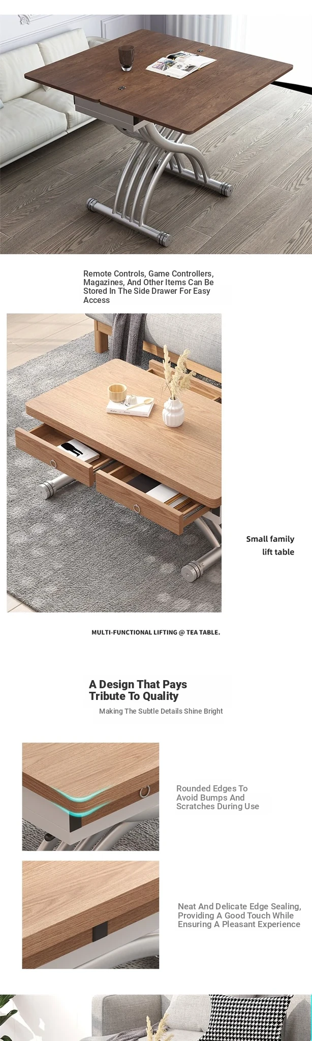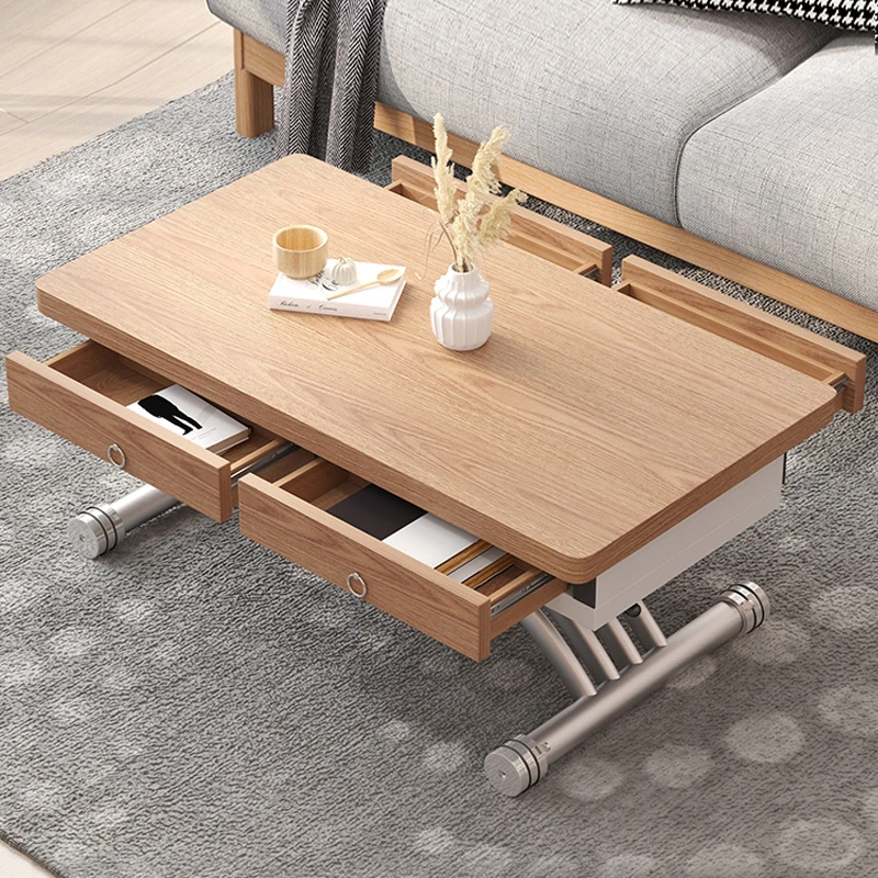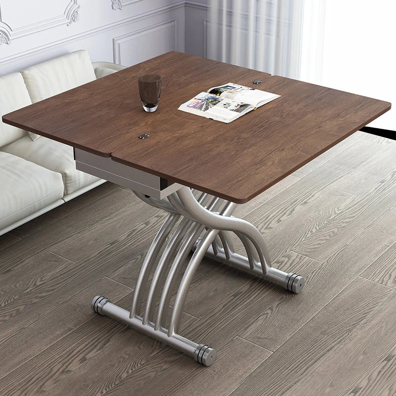 Multifunctional Folding Lift Dining Table - Natural Wood U-Shaped Coffee Table Combo for Small Spaces, Square Design, Home Use, Mobile and Expandable, Instant Transformation!