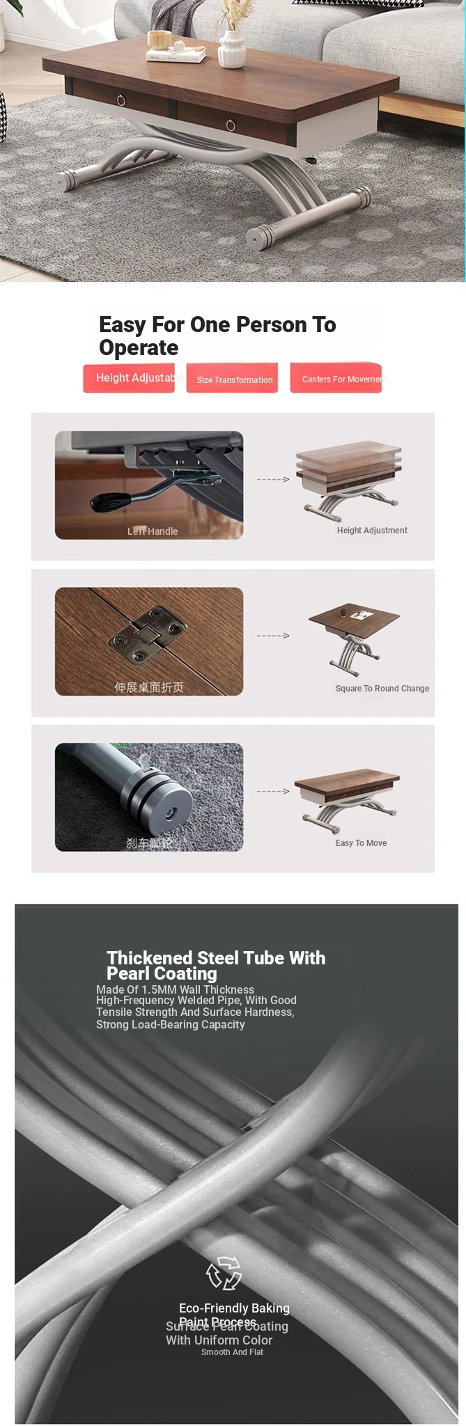 90*45 [Dream Color + Two Smokes] Adjustable Tea Table Dining Table/Zero Aldehyde Ousong