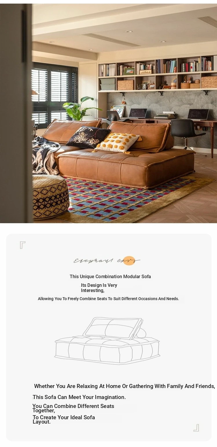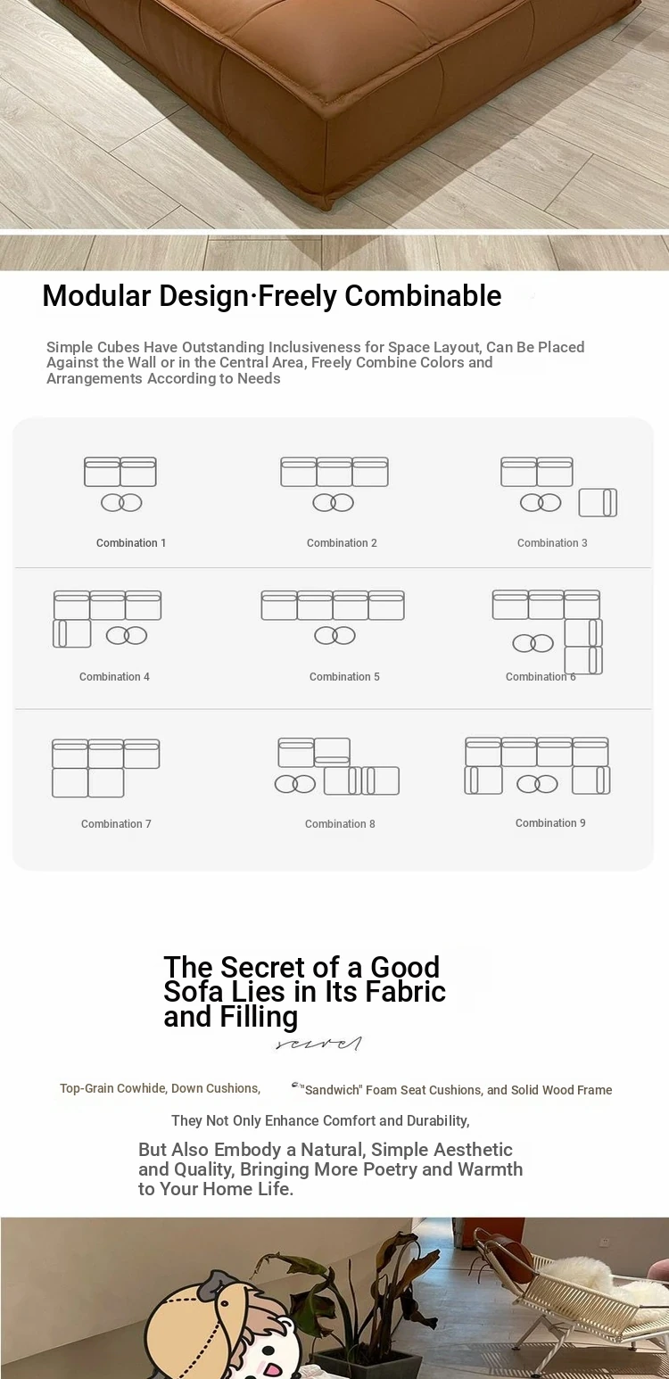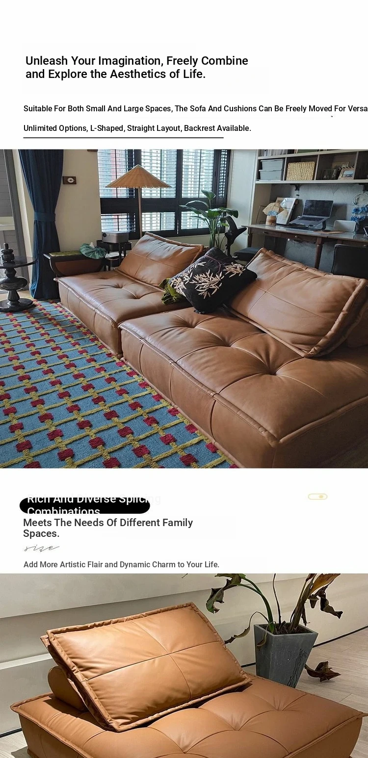 New Arrival: Genuine Leather Modular Sofa for Small Spaces - Stylish Brown Piedmont Cube Armchair for Your Living Room