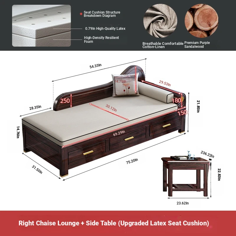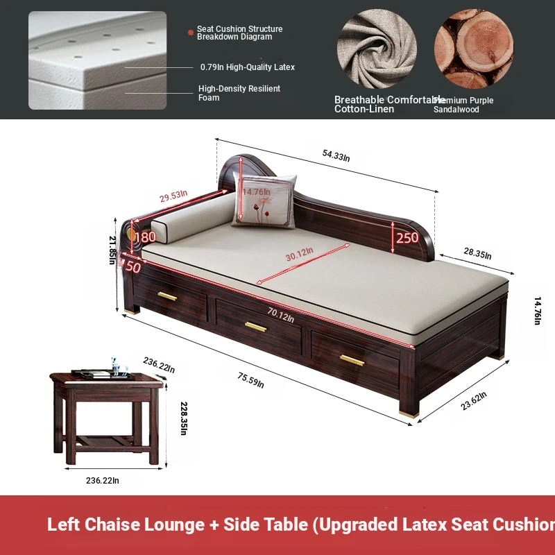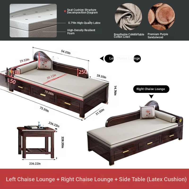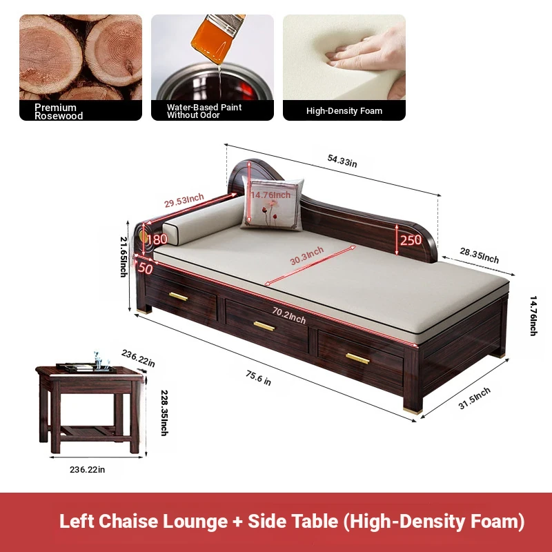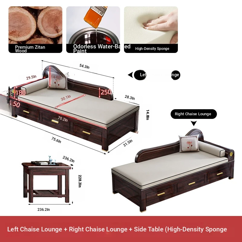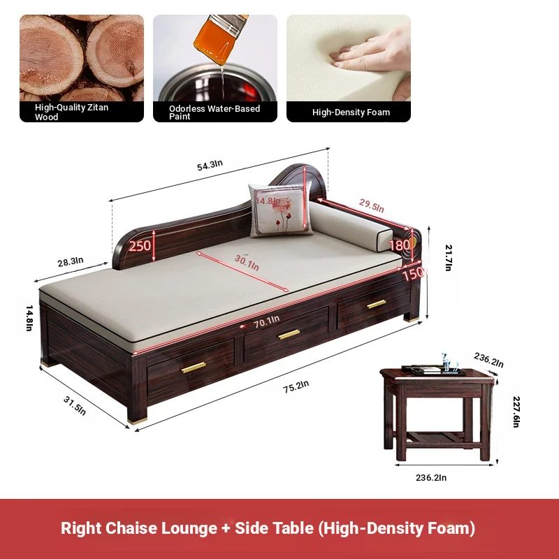 [Zijin Sandalwood] Left Imperial Concubine Recliner + Side Table (High Density Sponge)