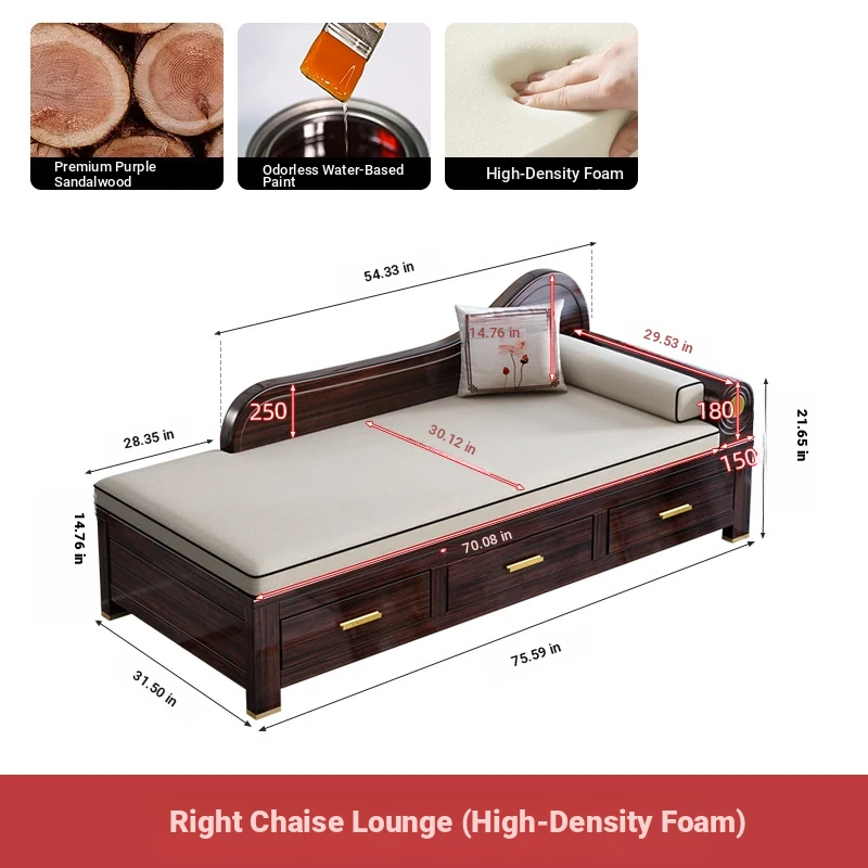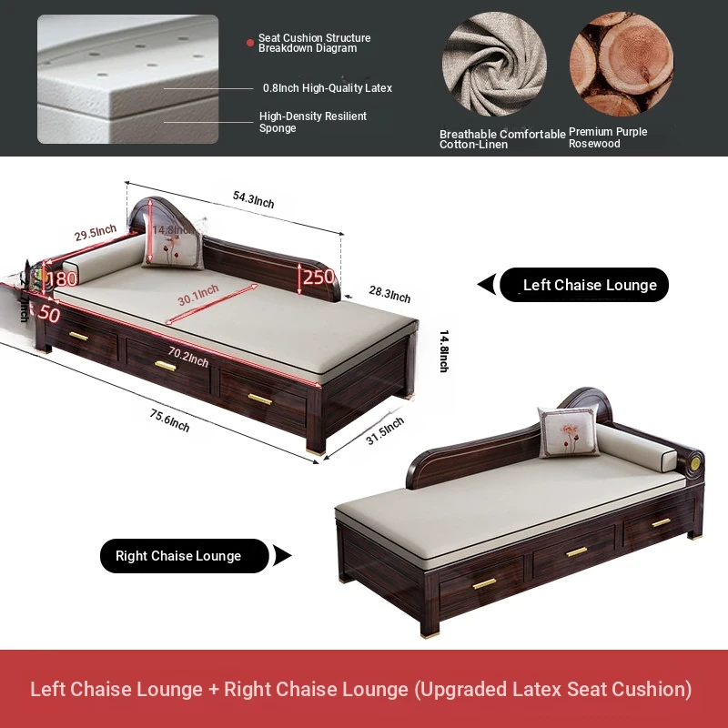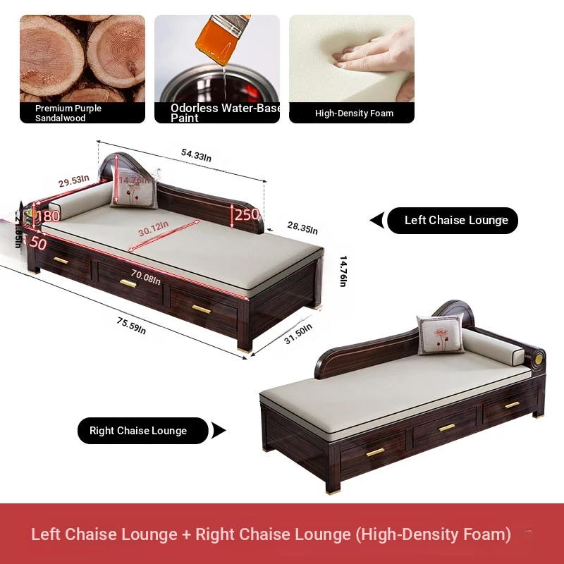 [Zijin Sandalwood] Left Imperial Concubine Recliner + Right Imperial Concubine Recliner (High Density Sponge)