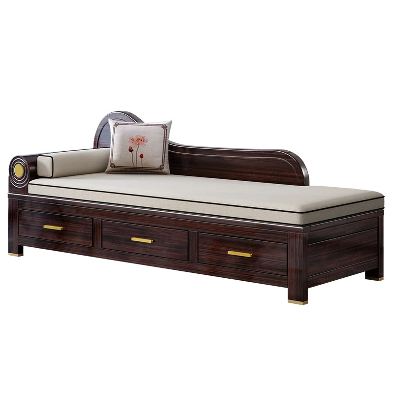 New Chinese Style Solid Wood Chaise Lounge - Elegant Purple Gold Sandalwood Sofa Chair for Small Living Rooms, Perfect for Afternoon Naps and Storage in Bedrooms.