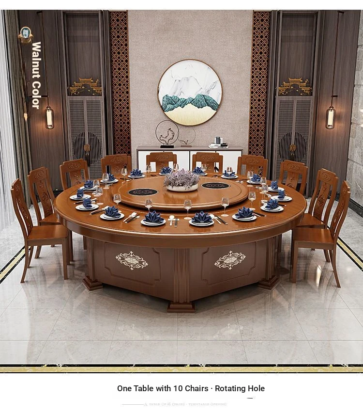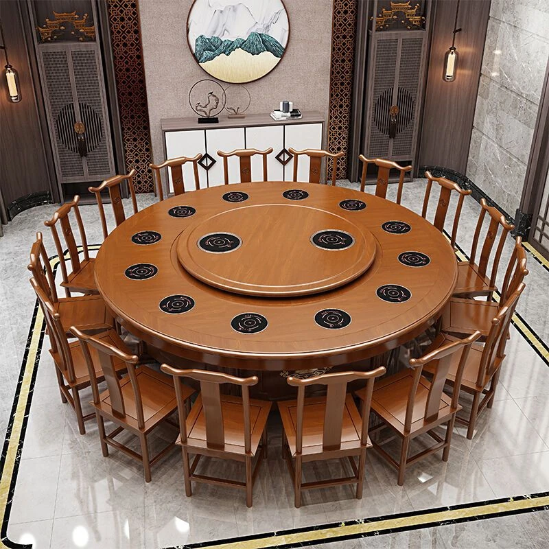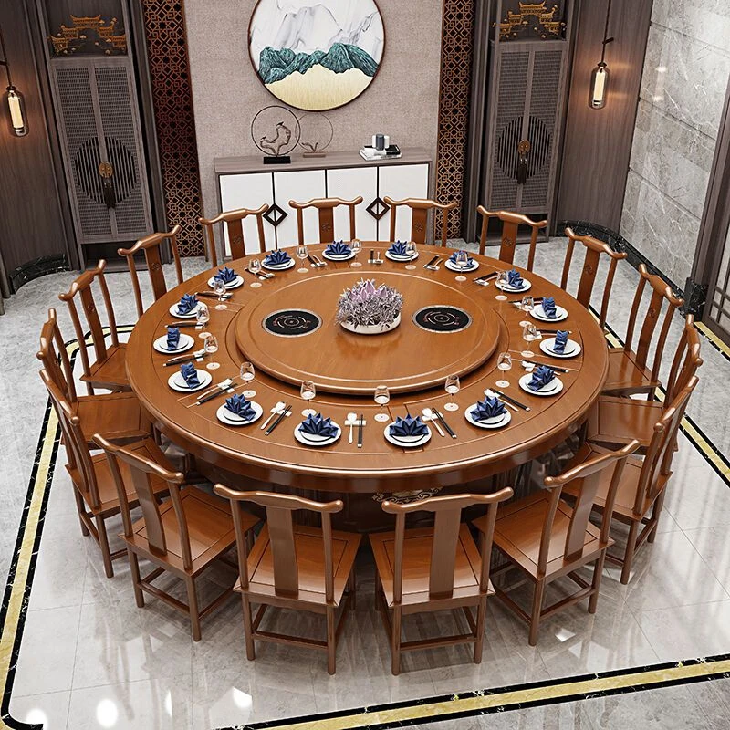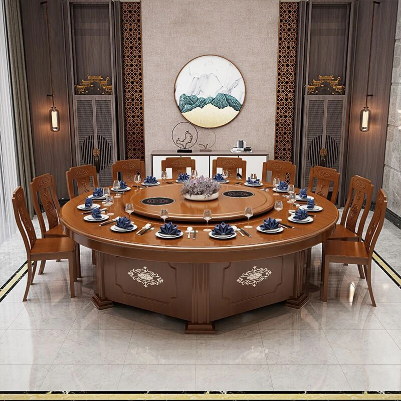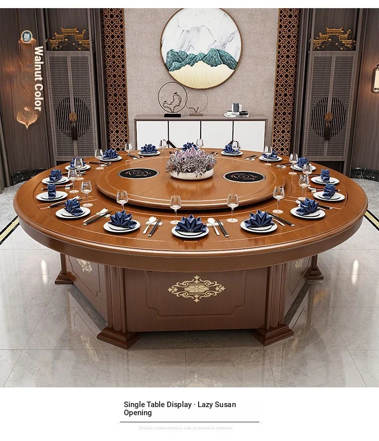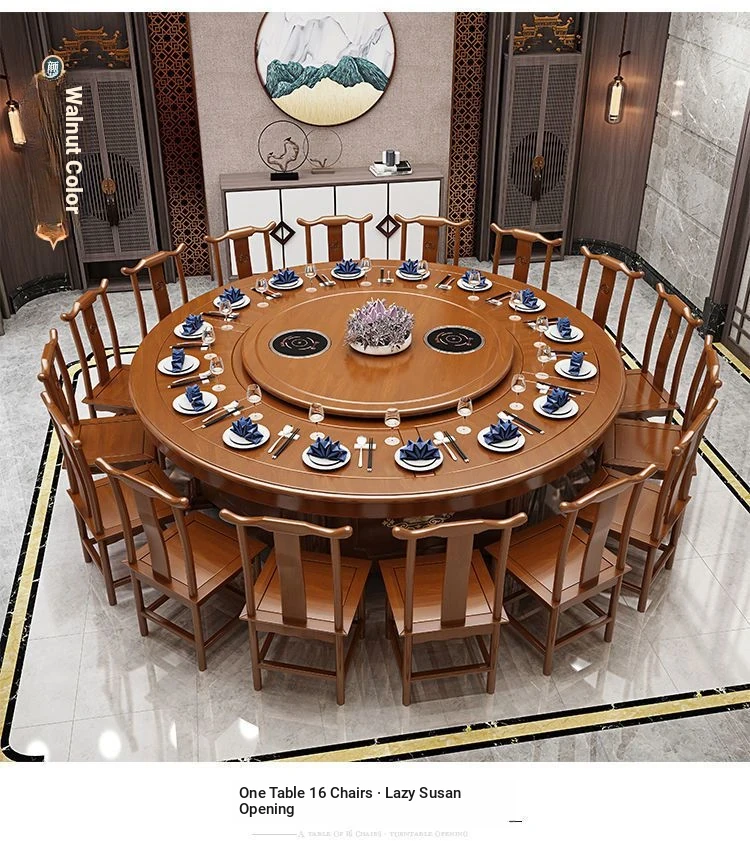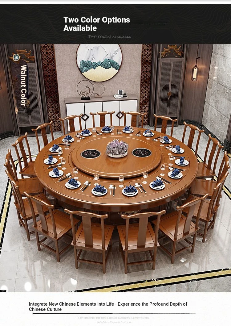 New Chinese Style Solid Wood Electric Dining Table and Chair Set - Large Round Table for Hotels, Banquets, and Private Rooms, Perfect for 18-20 People, Ideal for Hot Pot Gatherings
