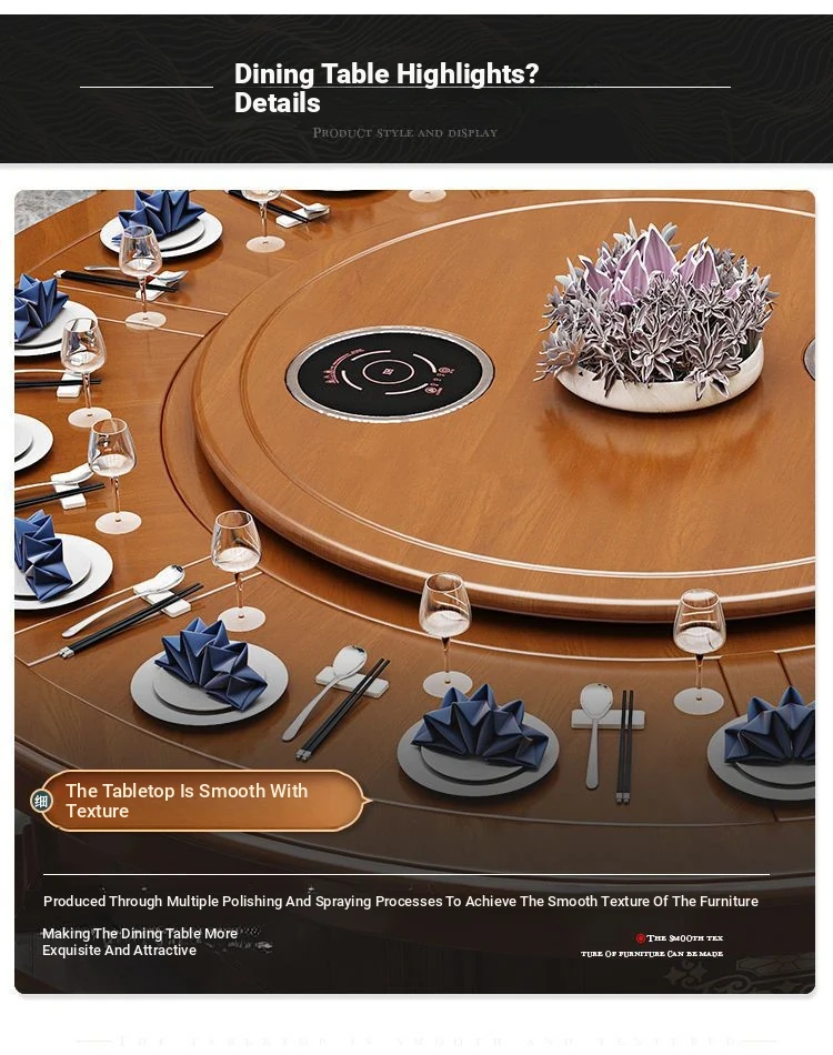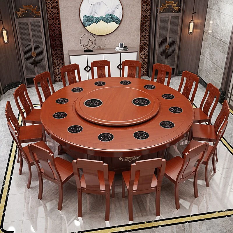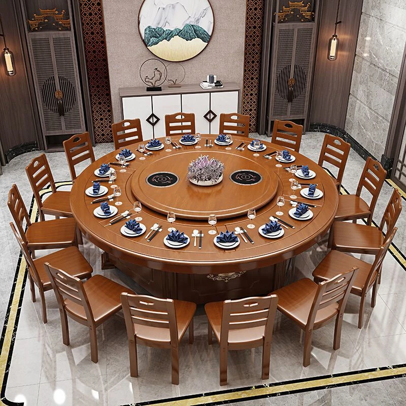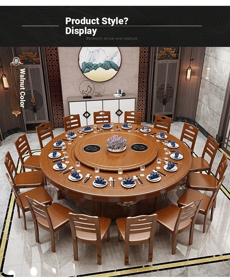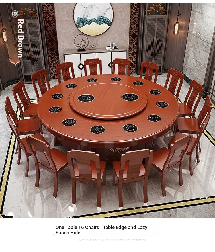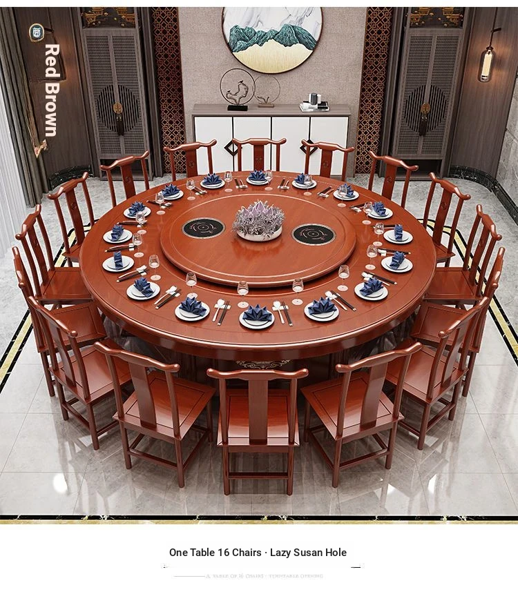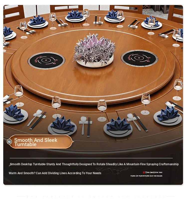 New Chinese Style Solid Wood Electric Dining Table and Chair Set - Large Round Table for Hotels, Banquets, and Private Rooms, Perfect for 18-20 People, Ideal for Hot Pot Gatherings
