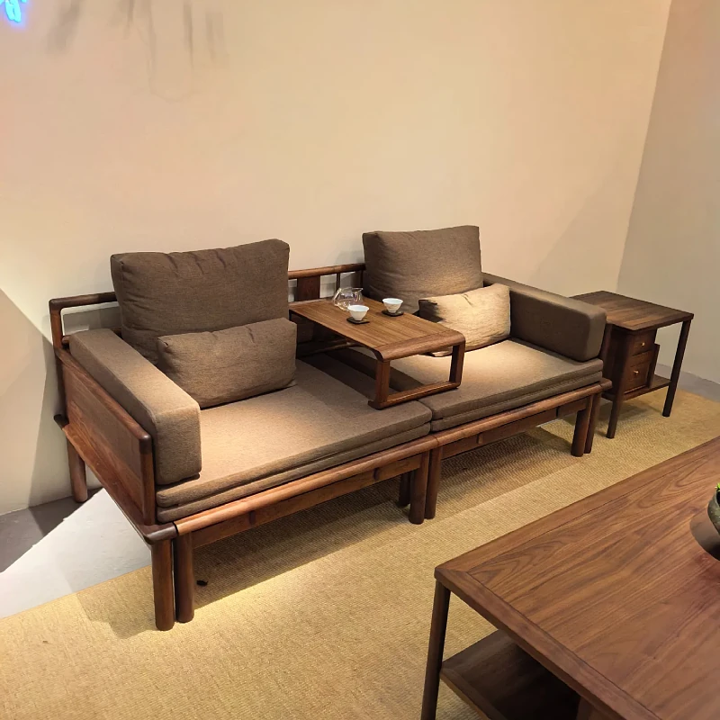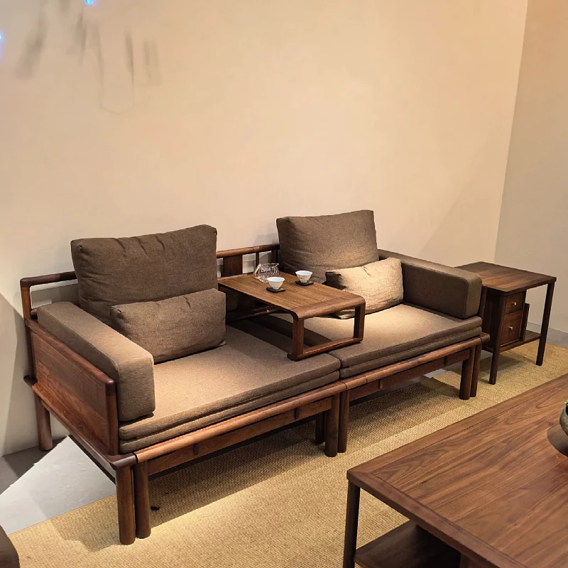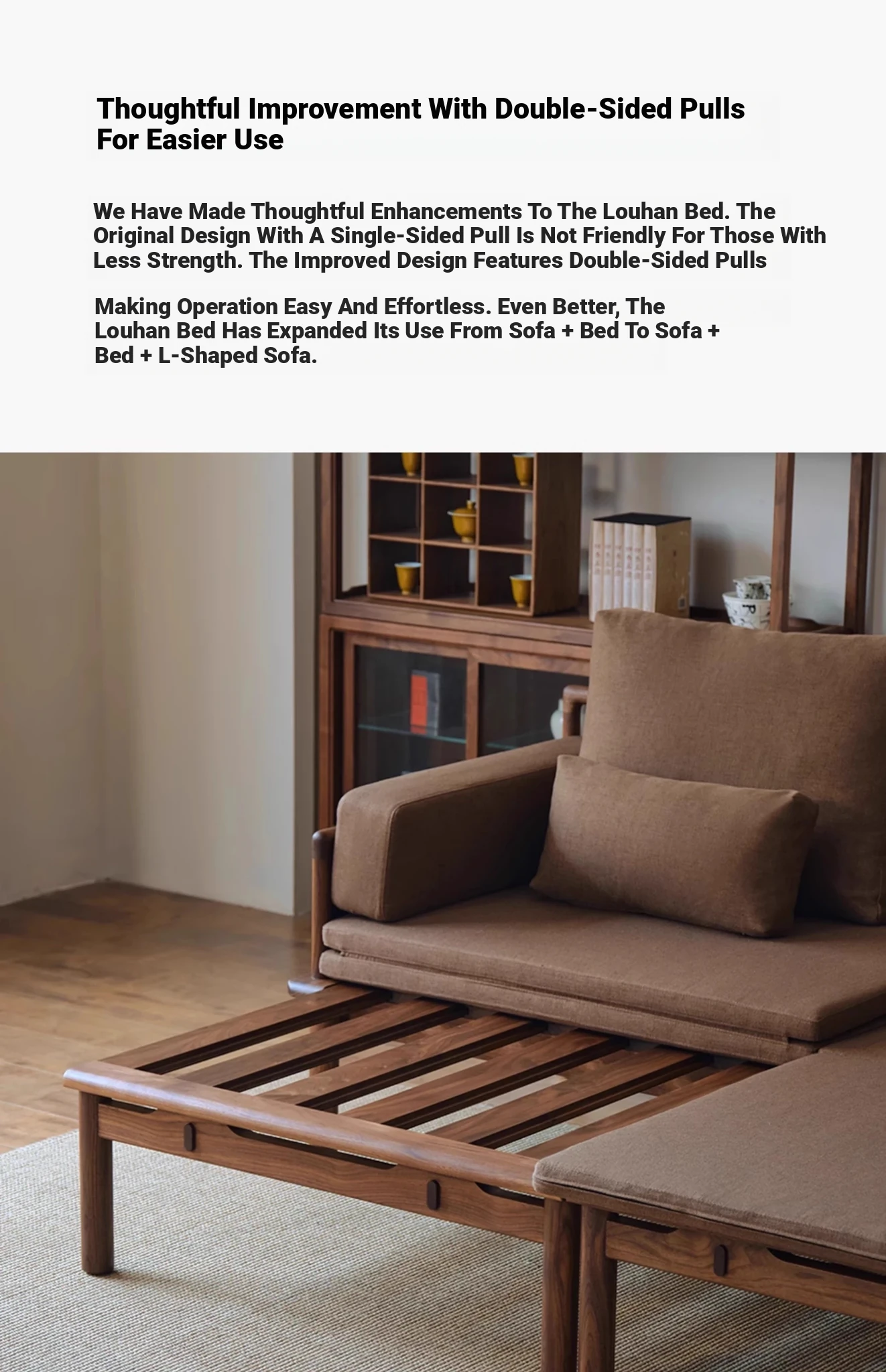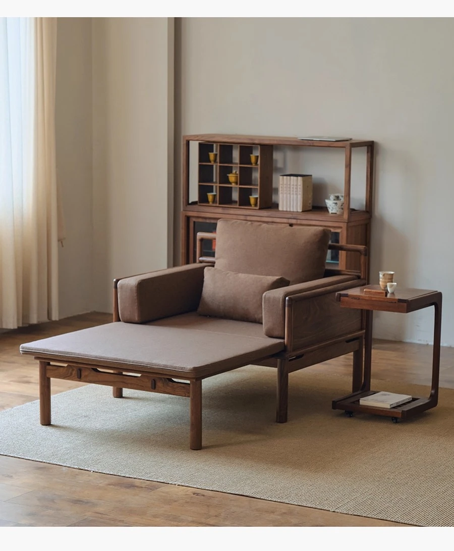 New Chinese Style Solid Wood Folding Bed for Small Spaces - North American Black Walnut Sofa Bed with Song Aesthetics, Perfect for Compact Living Rooms