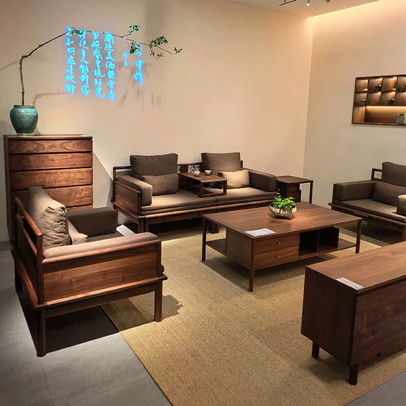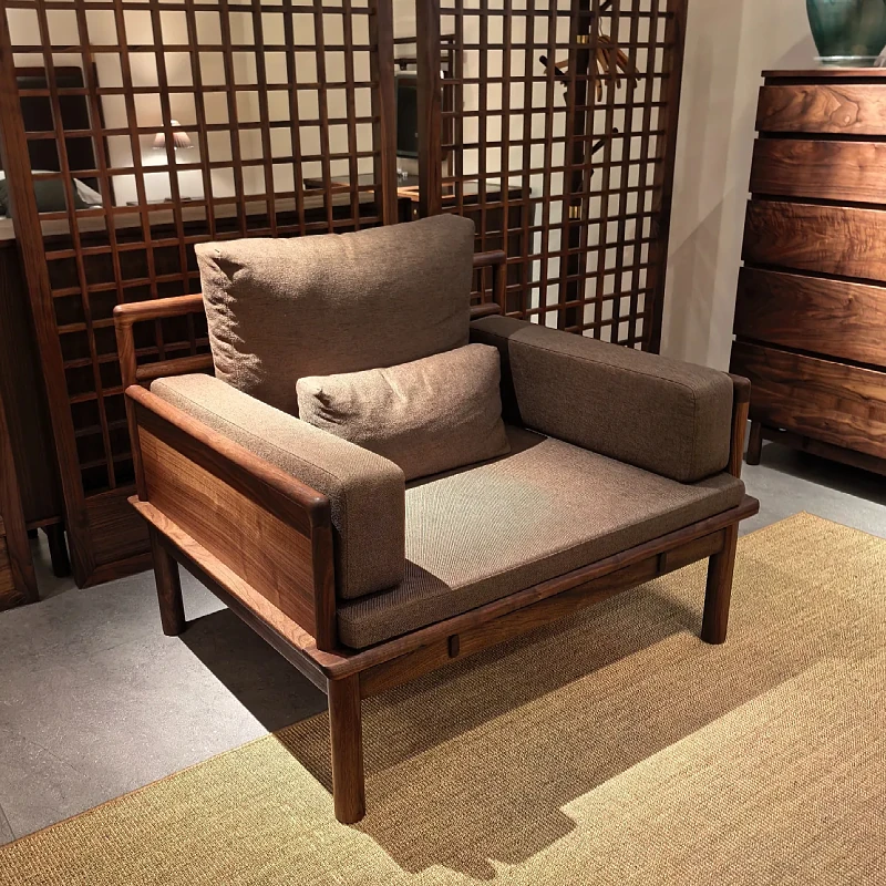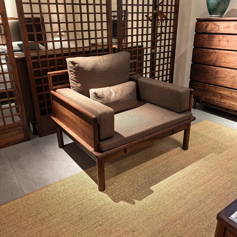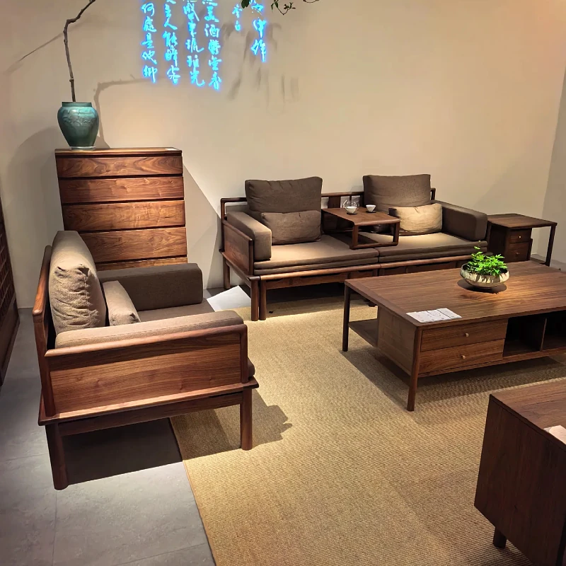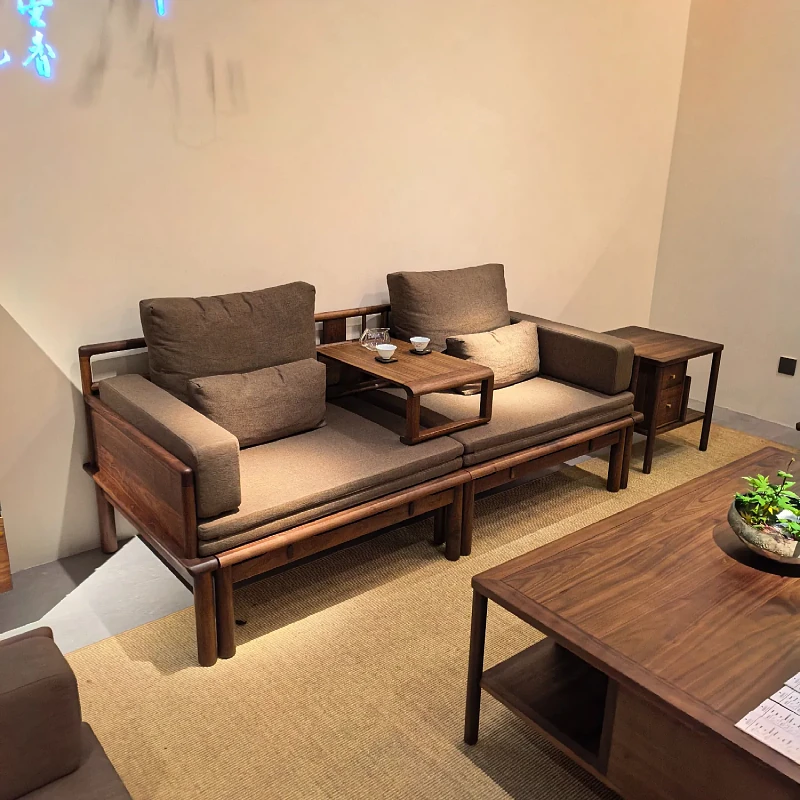 New Chinese Style Solid Wood Folding Bed for Small Spaces - North American Black Walnut Sofa Bed with Song Aesthetics, Perfect for Compact Living Rooms