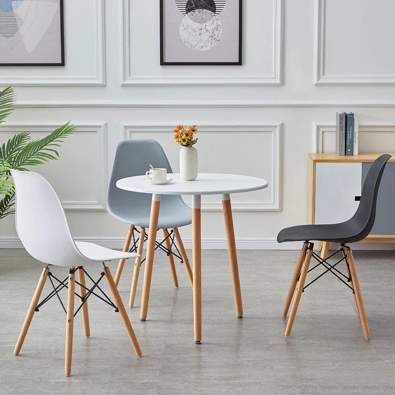 Nordic Dining Table and Chair Set – Modern Minimalist Design for Small Spaces, Solid Wood White Eames Style Dining Table and Chairs, Perfect for Home Use and Conversations