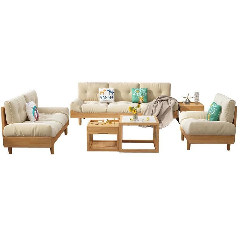 Nordic Japanese Minimalist Solid Wood Lazy Cloud Sofa - Modern Fabric Couch for Small Living Rooms, Perfect Blend of Comfort and Style