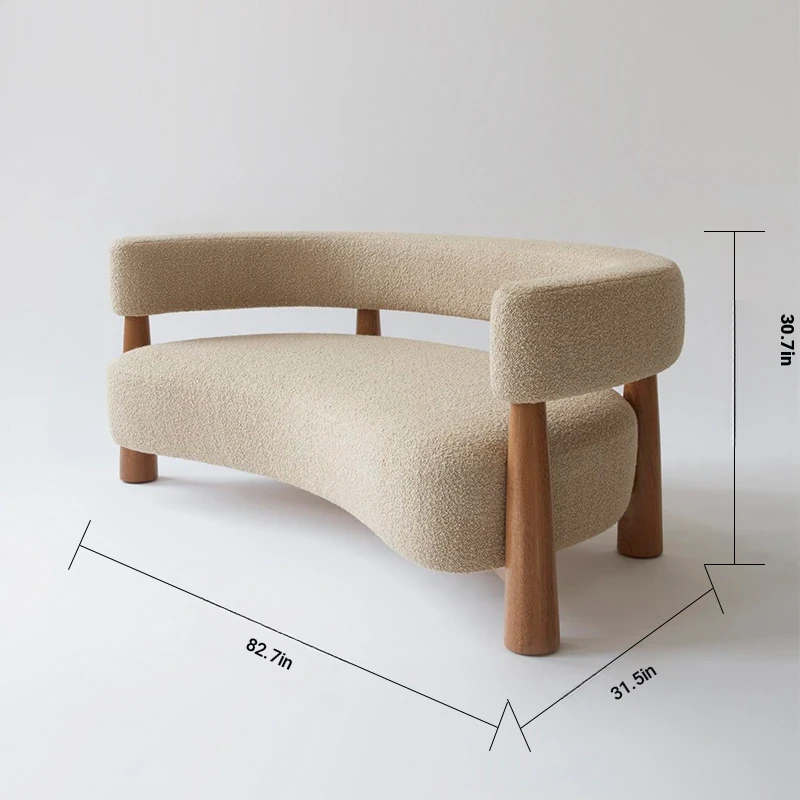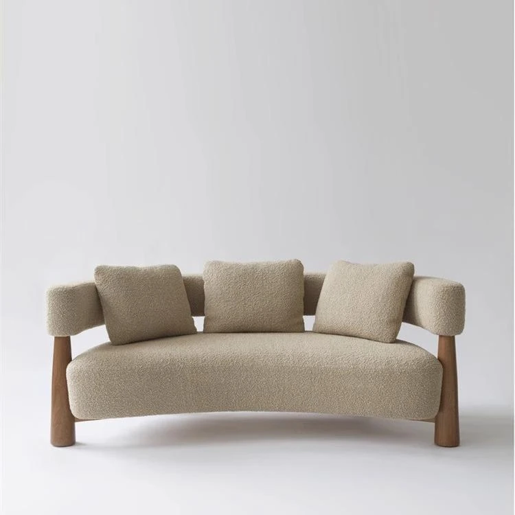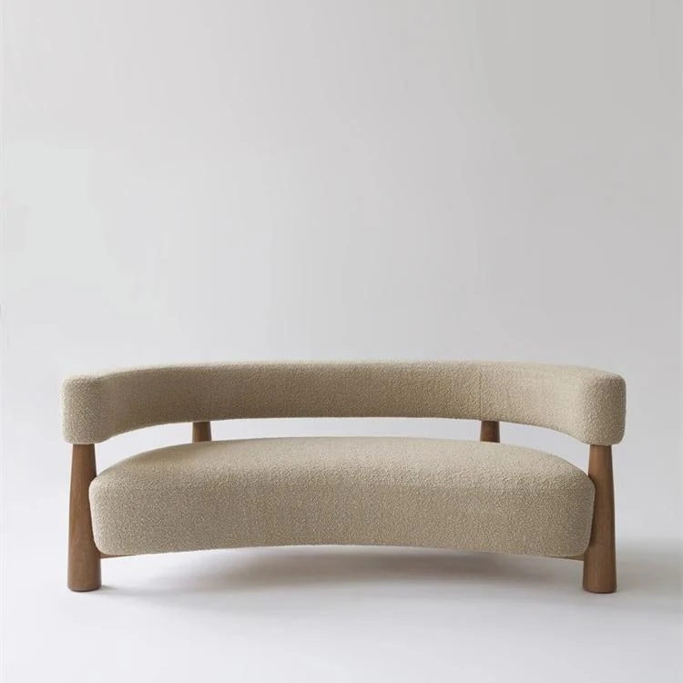 Nordic Minimalist Solid Wood Multi-Person Sofa - Cream Style for Living Room and Bedroom, Perfect for Small Spaces, Featuring a Chic Wabi-Sabi Fabric Design