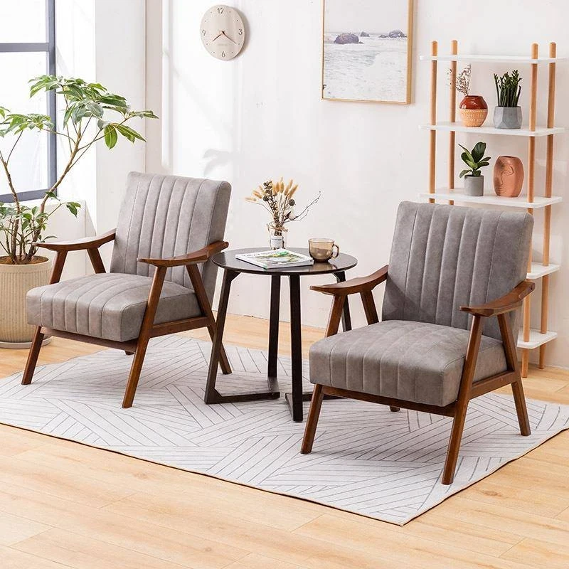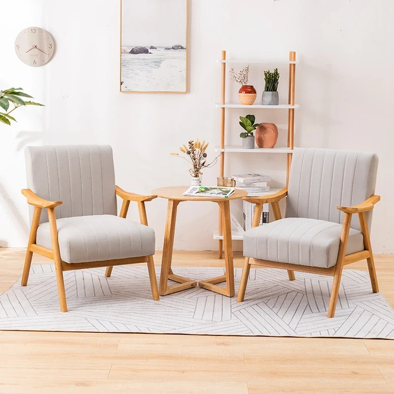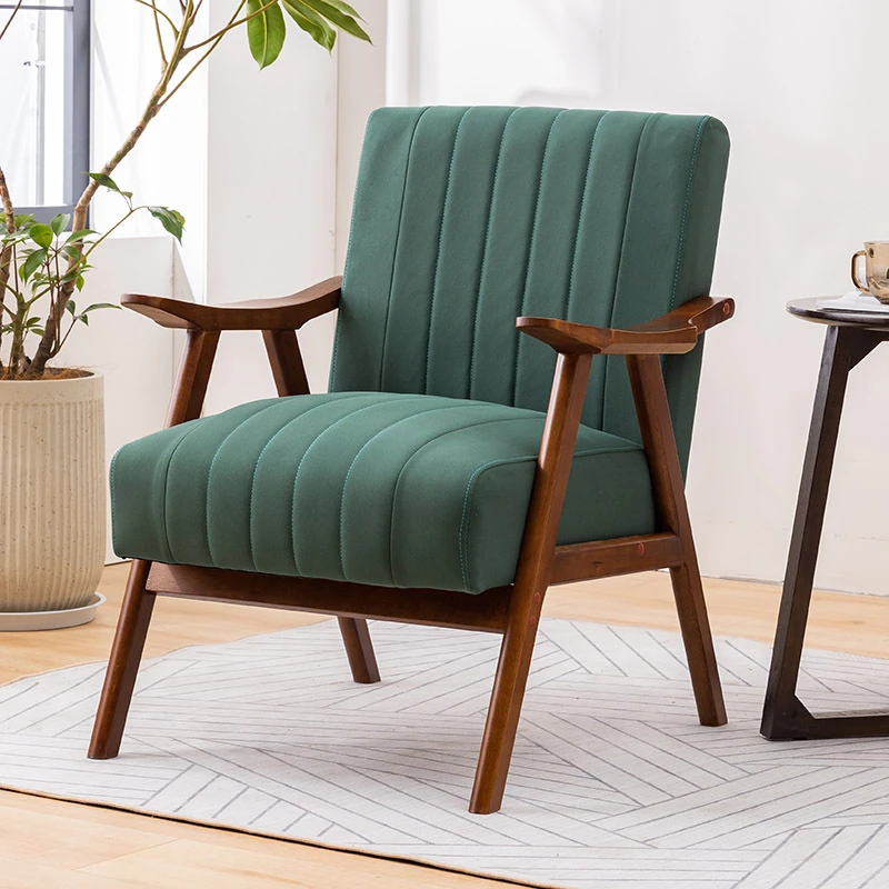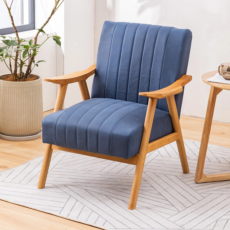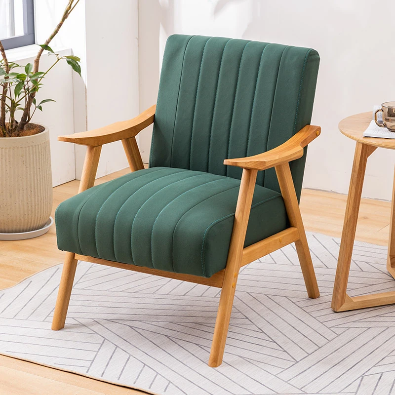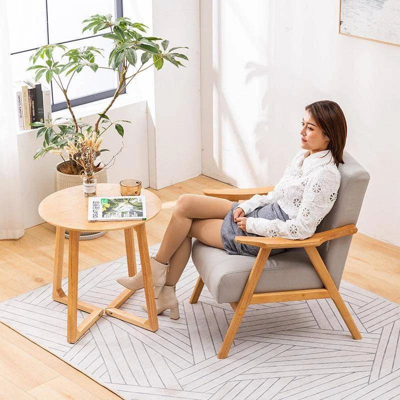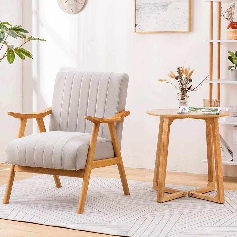 Nordic Solid Wood Single Sofa with Tech Fabric – Modern Minimalist Lounge Chair for Small Spaces, Perfect for Living Rooms, Bedrooms, and Balconies – Cozy Lazy Chair