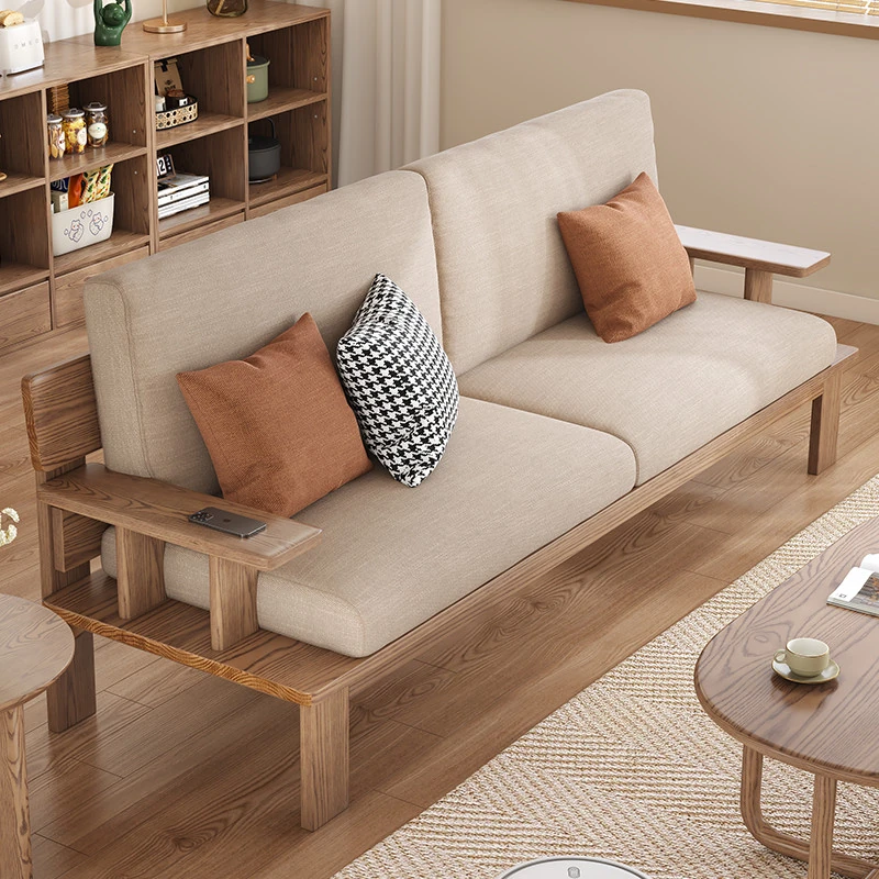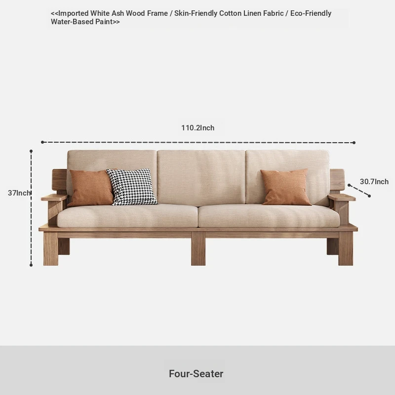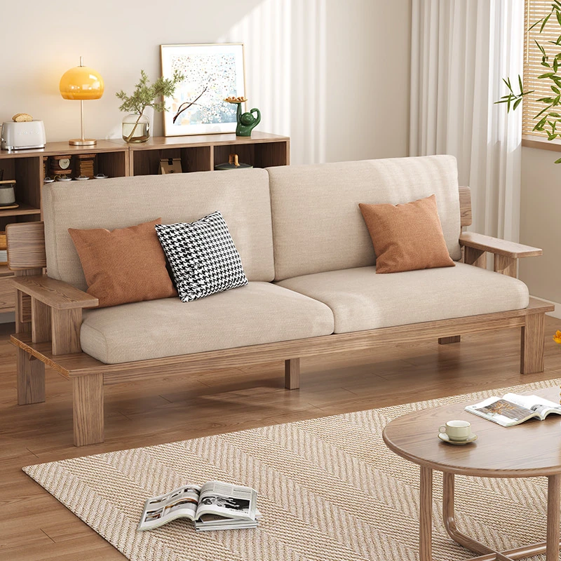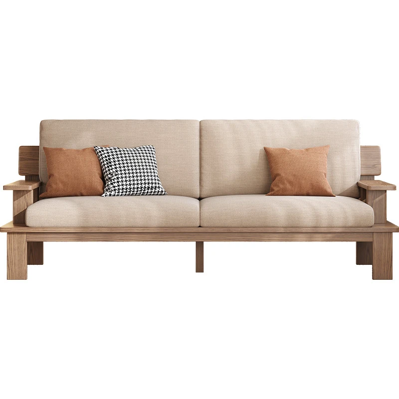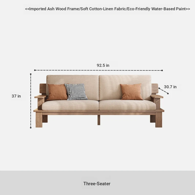 Nordic Solid Wood Sofa for Small Spaces - Stylish 3-4 Seater in Ash Wood with Versatile Fabric Design for Year-Round Comfort