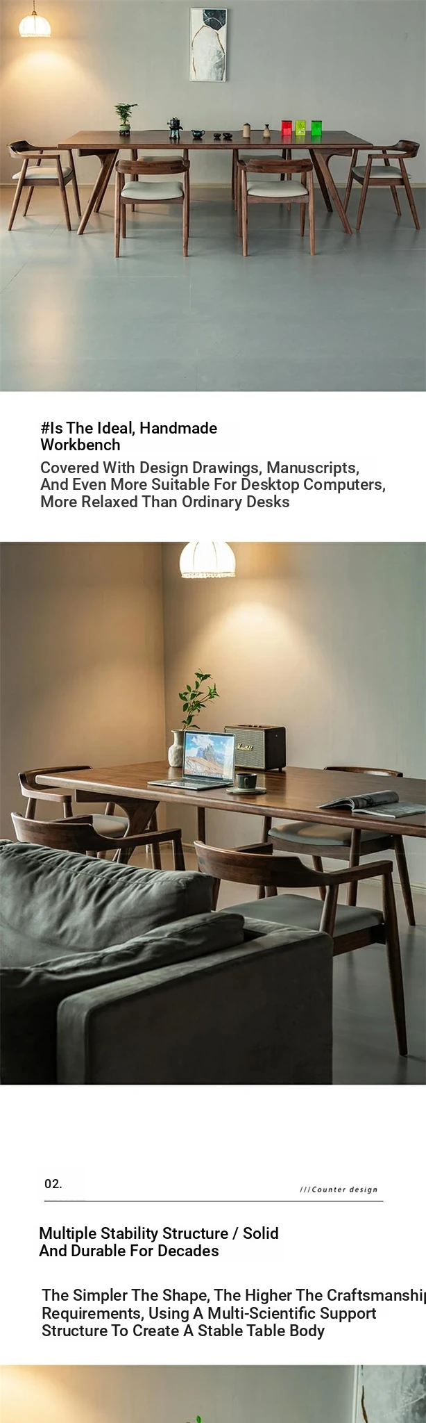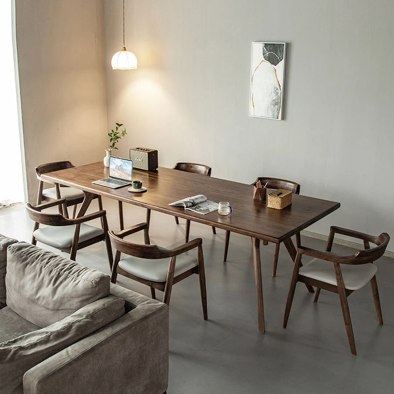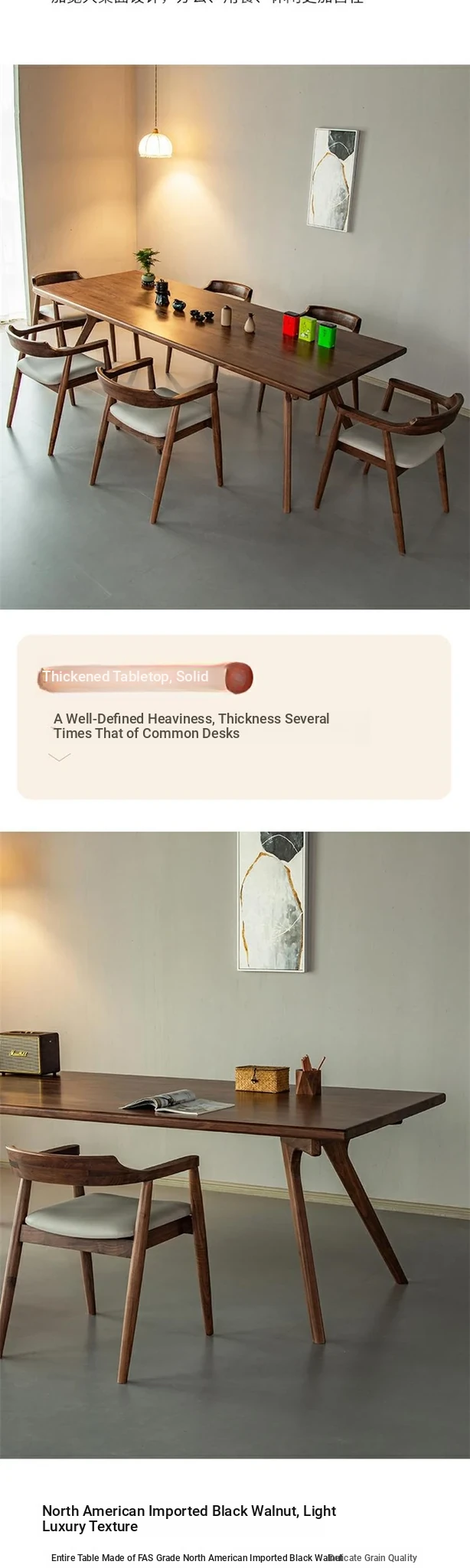 North American Black Walnut Solid Wood Dining Table - Multi-Functional 2.6m Thick Conference and Tea Table in Japanese Minimalist Style