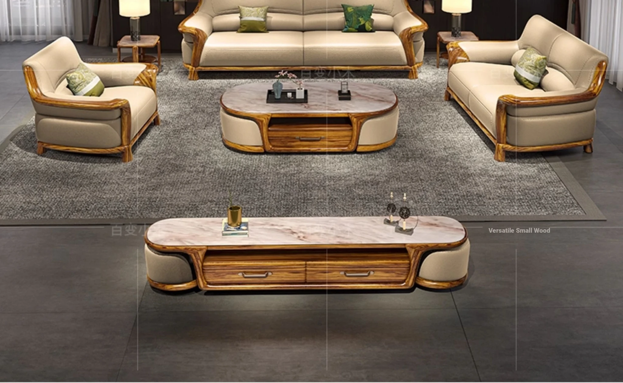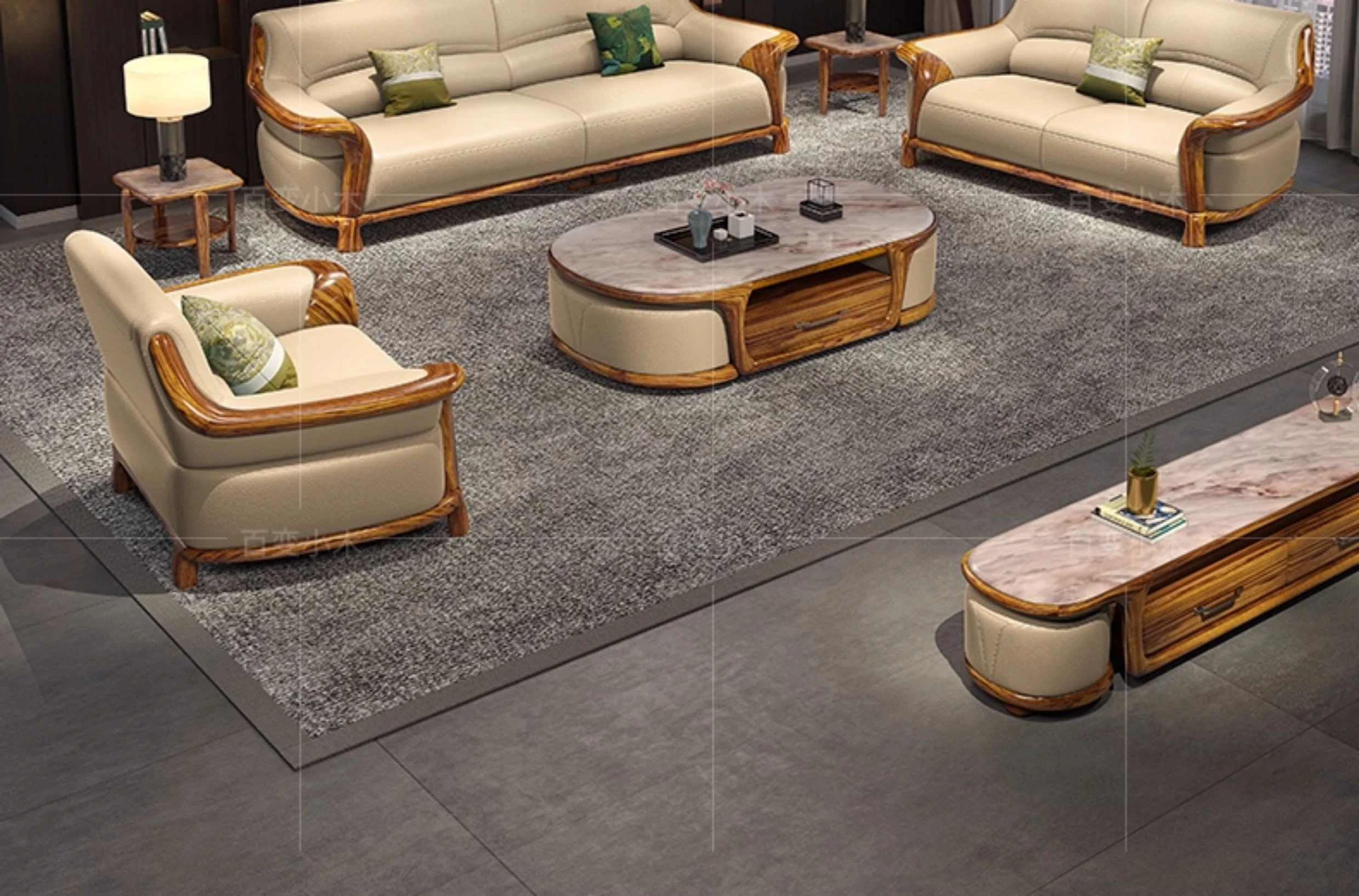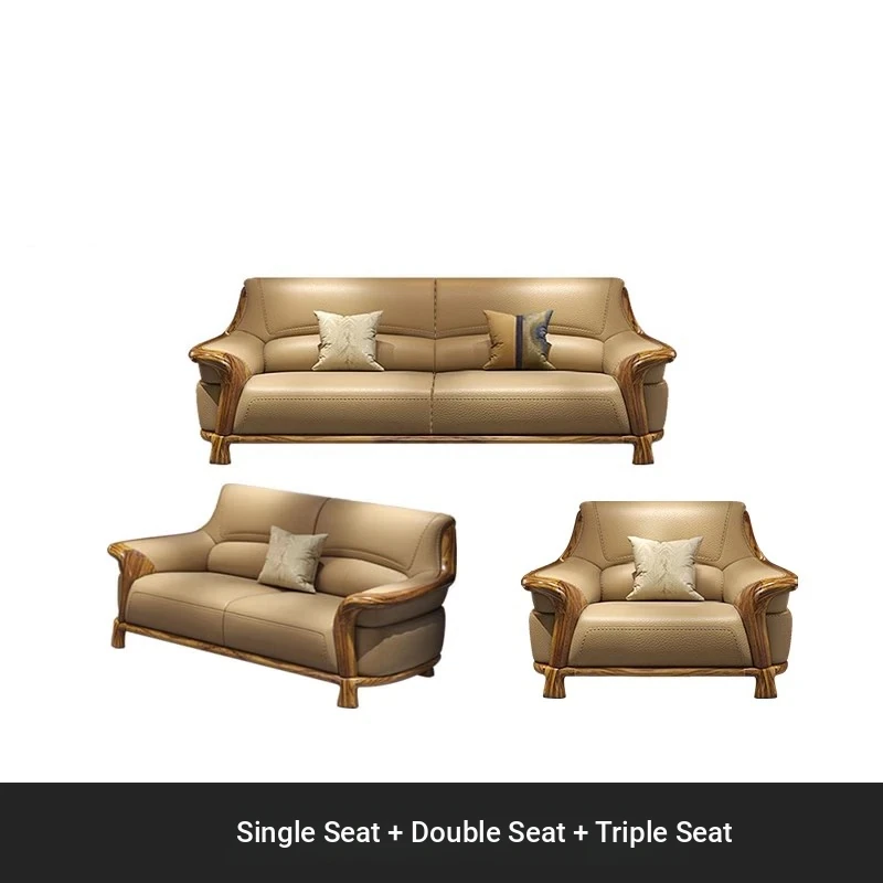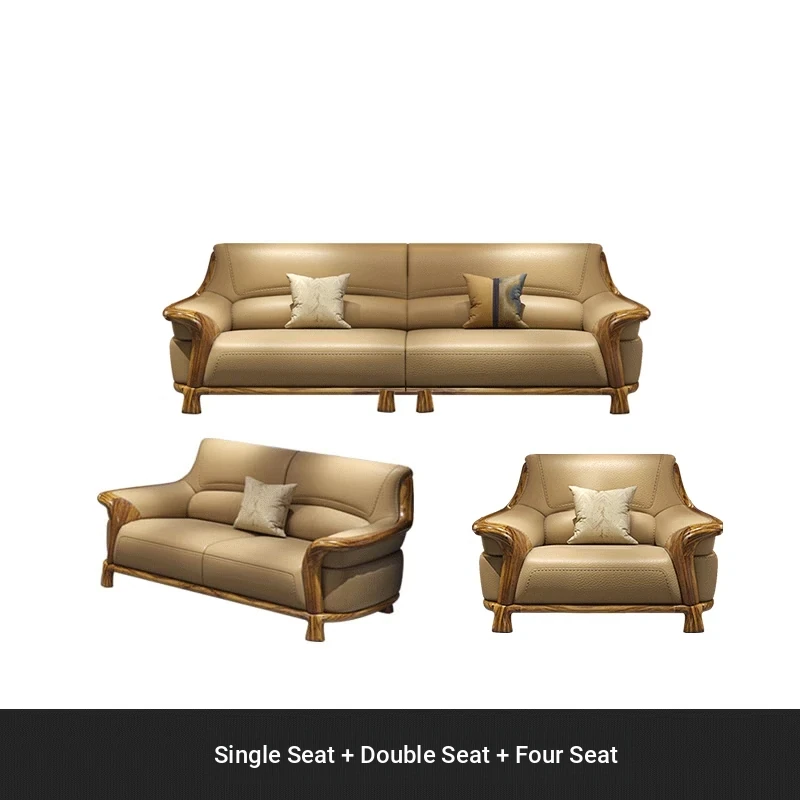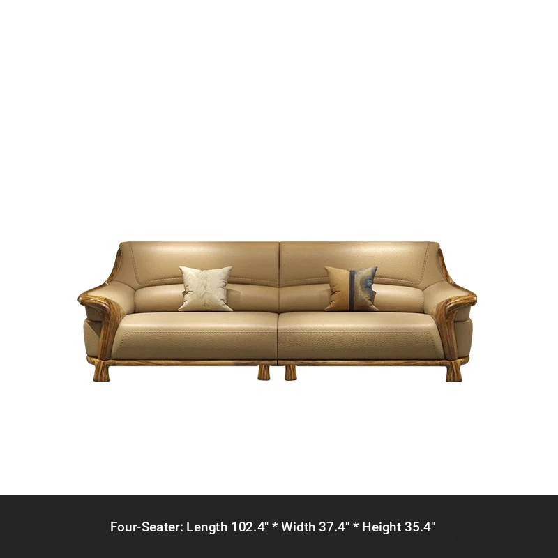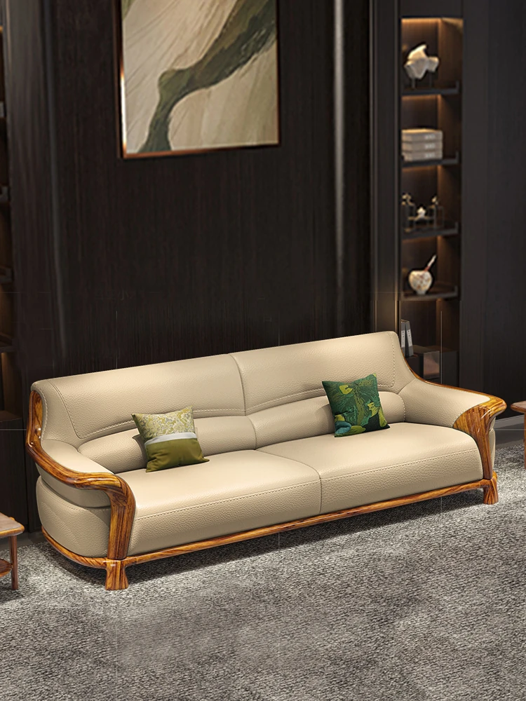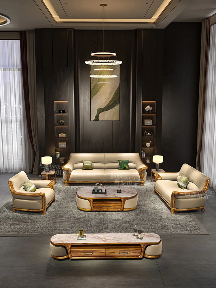 Premium Blackwood Leather Sofa Set - Modern New Chinese Luxury Design with First-Class Cowhide for Spacious Villas and Living Rooms