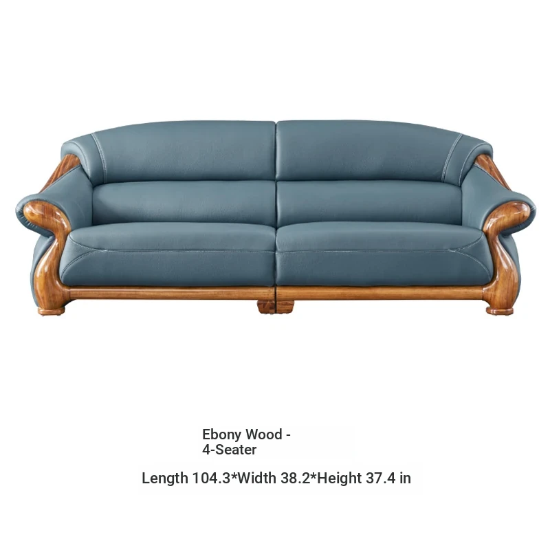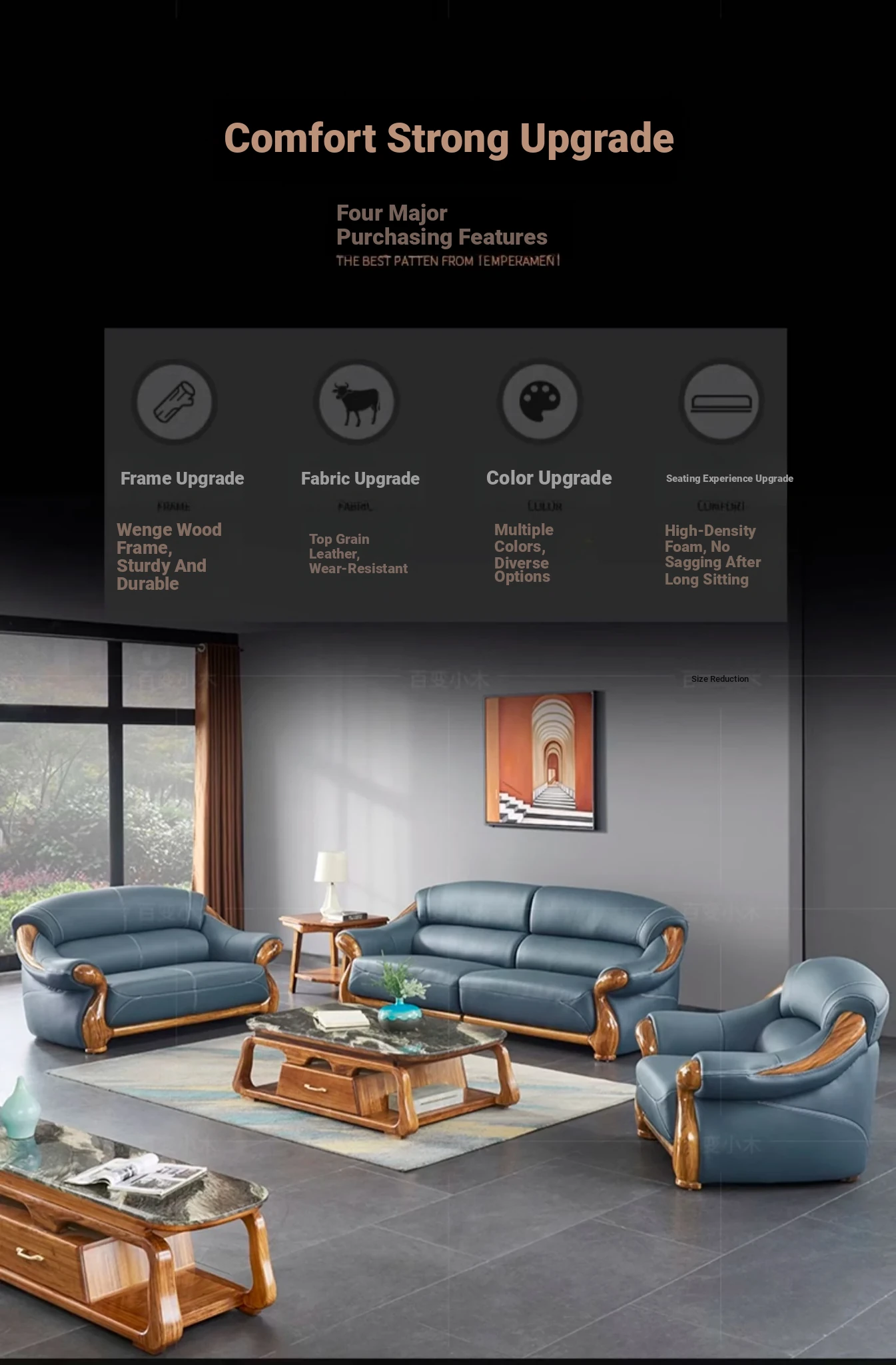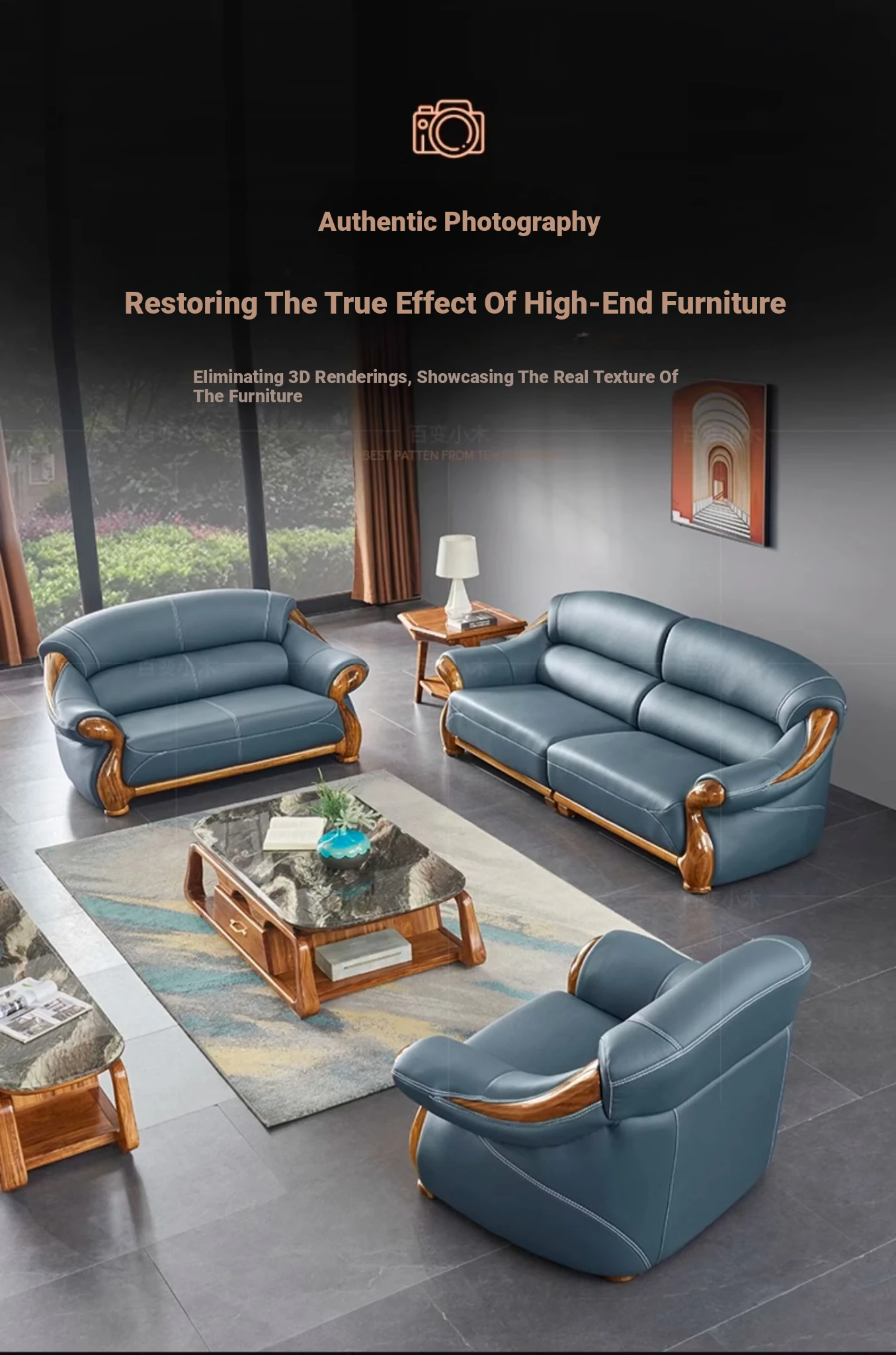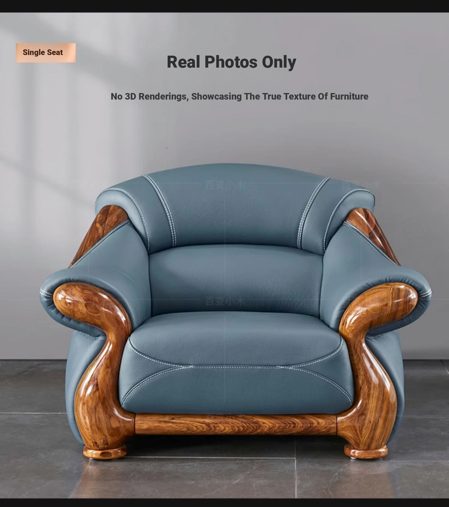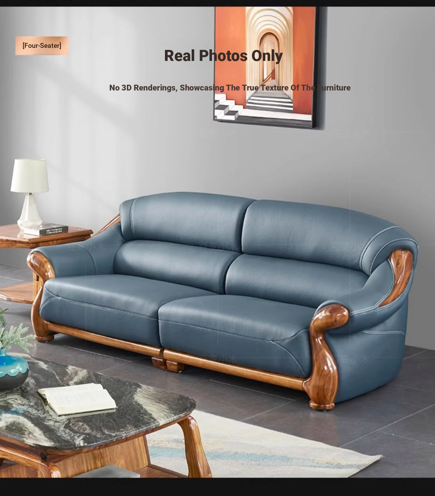 Premium New Chinese Style Top Grain Leather Black Walnut Sofa Set for High-End Villas - Luxurious Solid Wood & Genuine Leather Furniture for Living Room