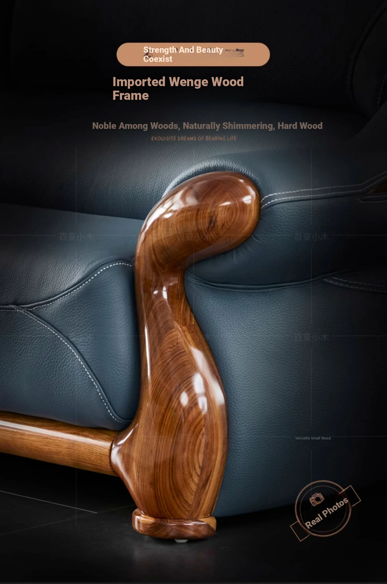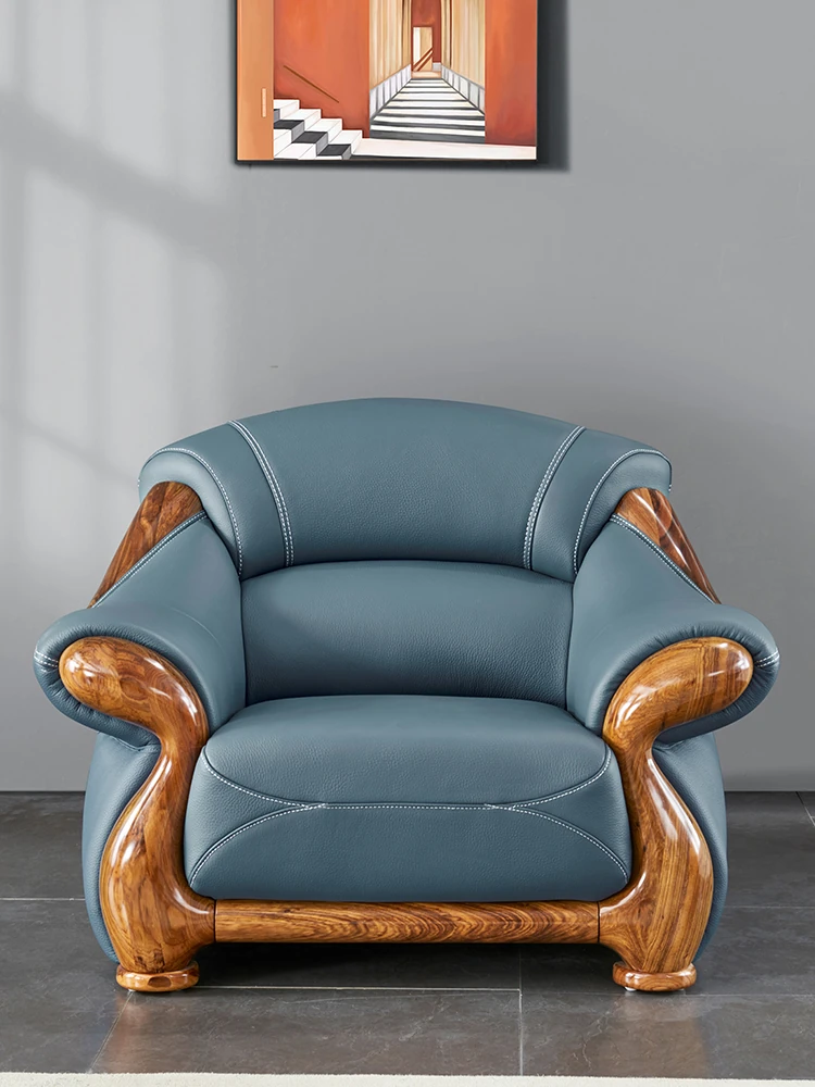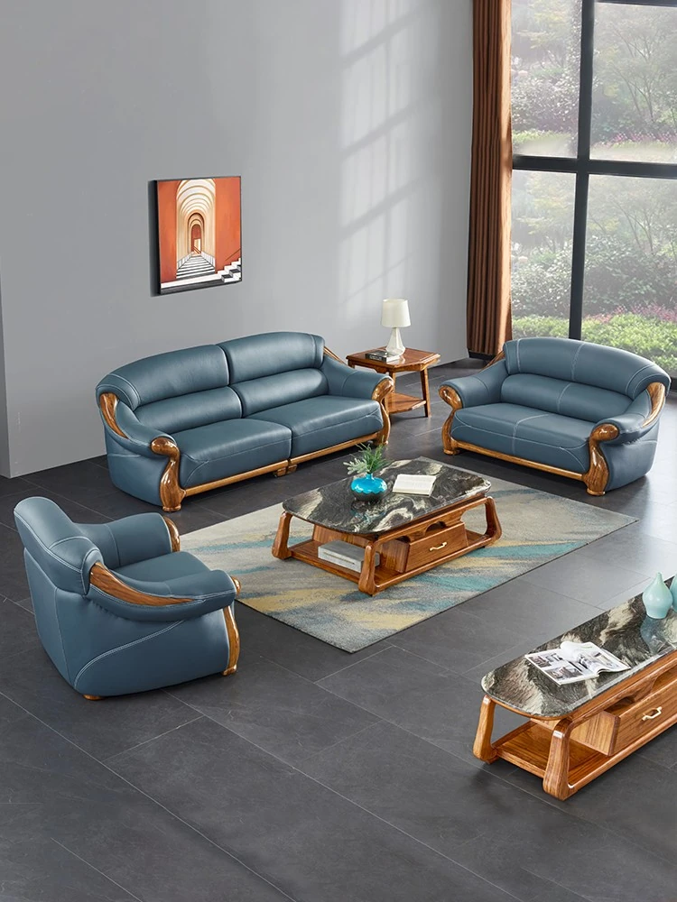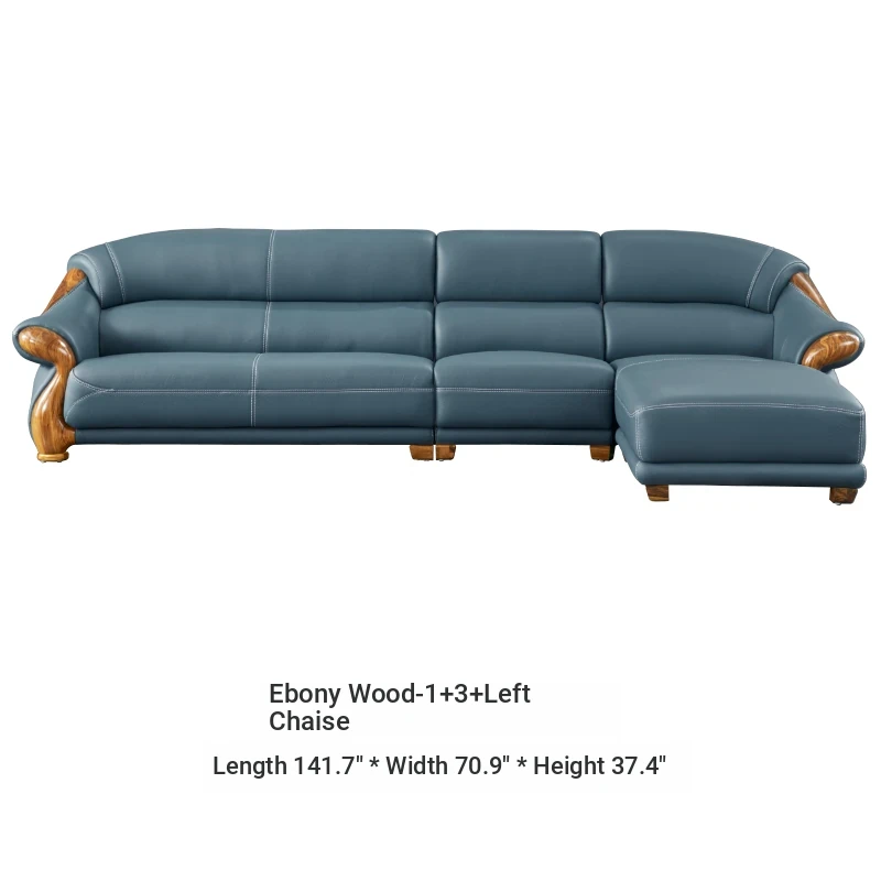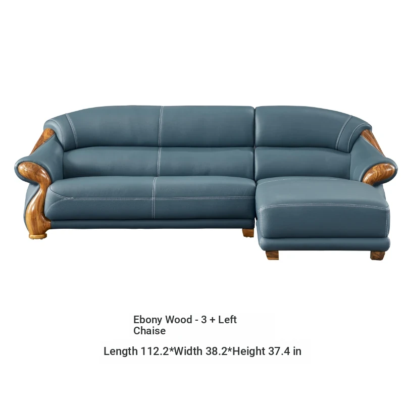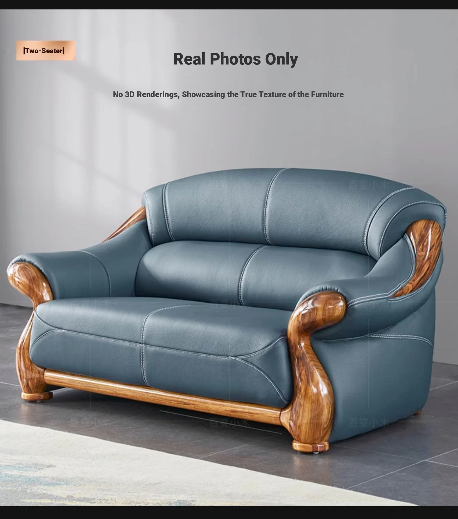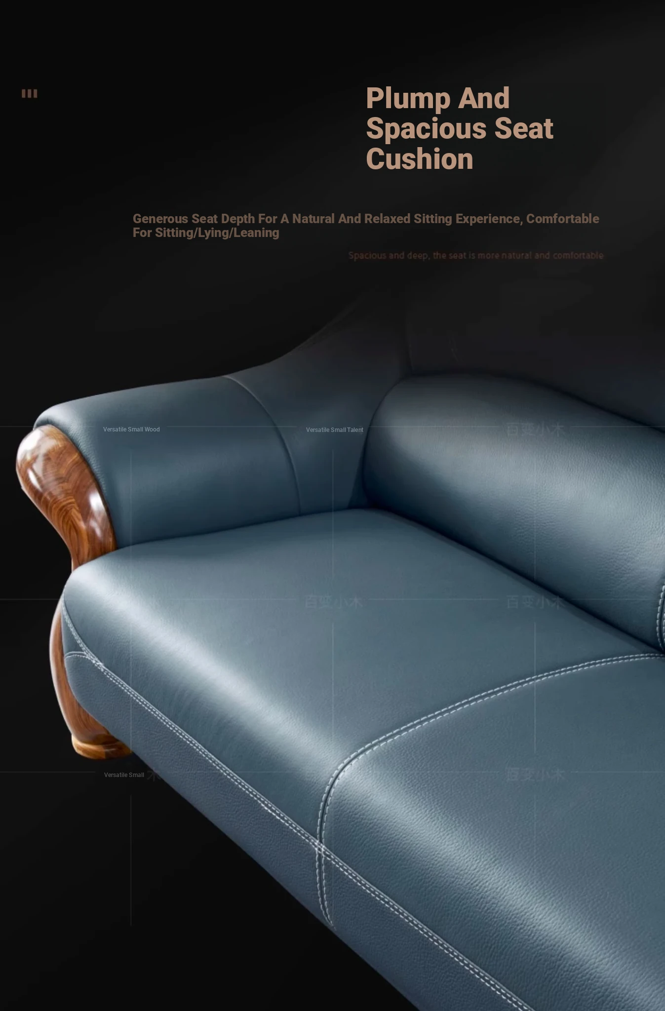 Premium New Chinese Style Top Grain Leather Black Walnut Sofa Set for High-End Villas - Luxurious Solid Wood & Genuine Leather Furniture for Living Room