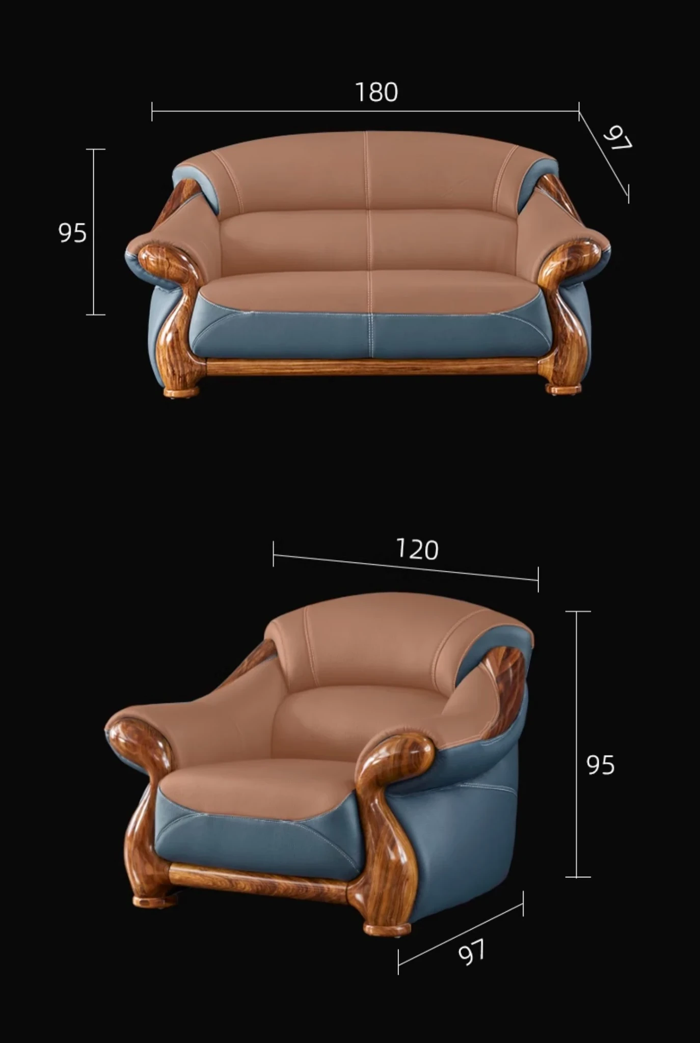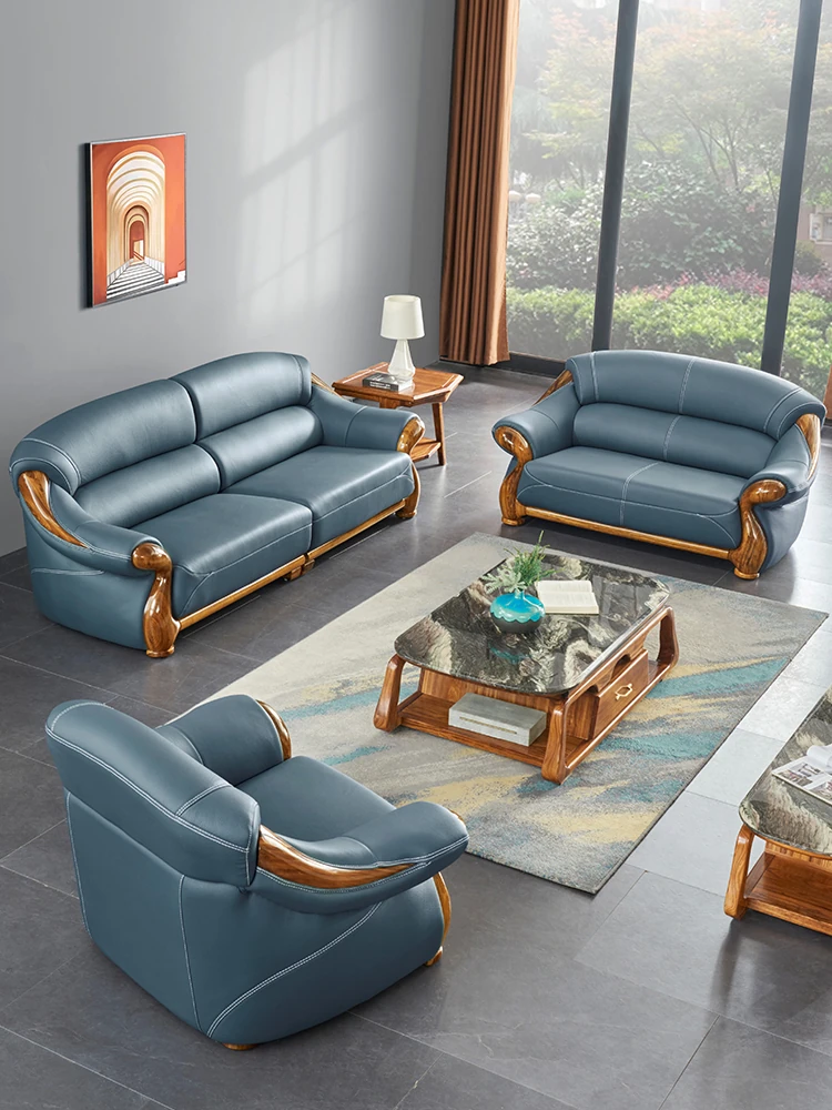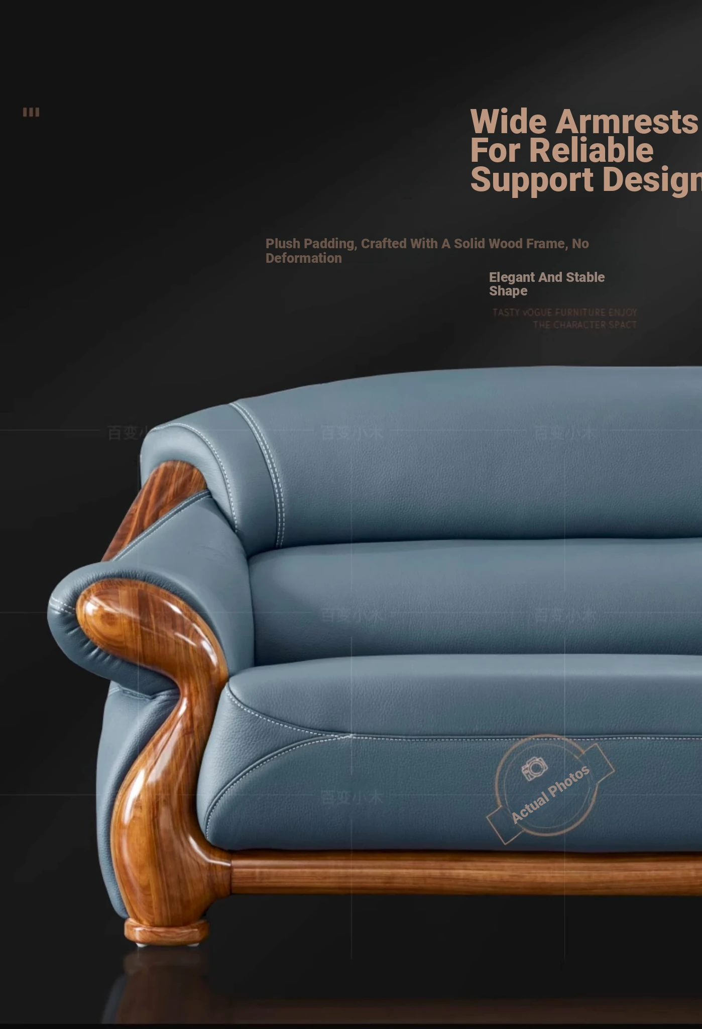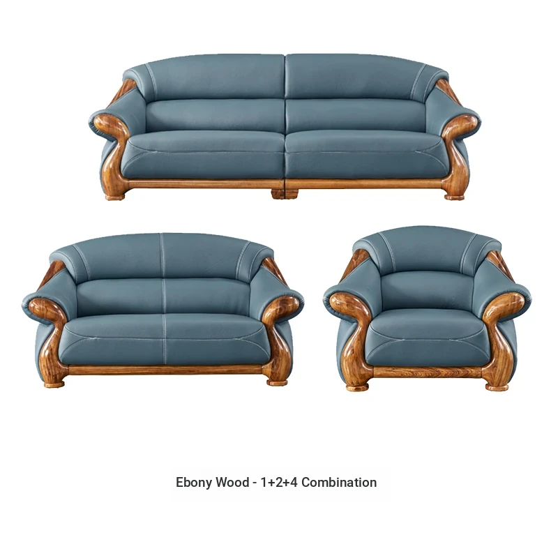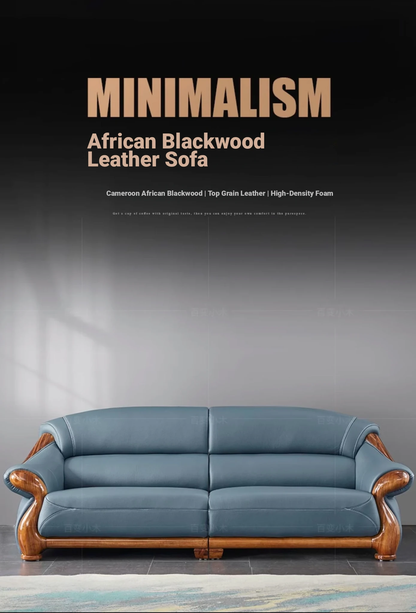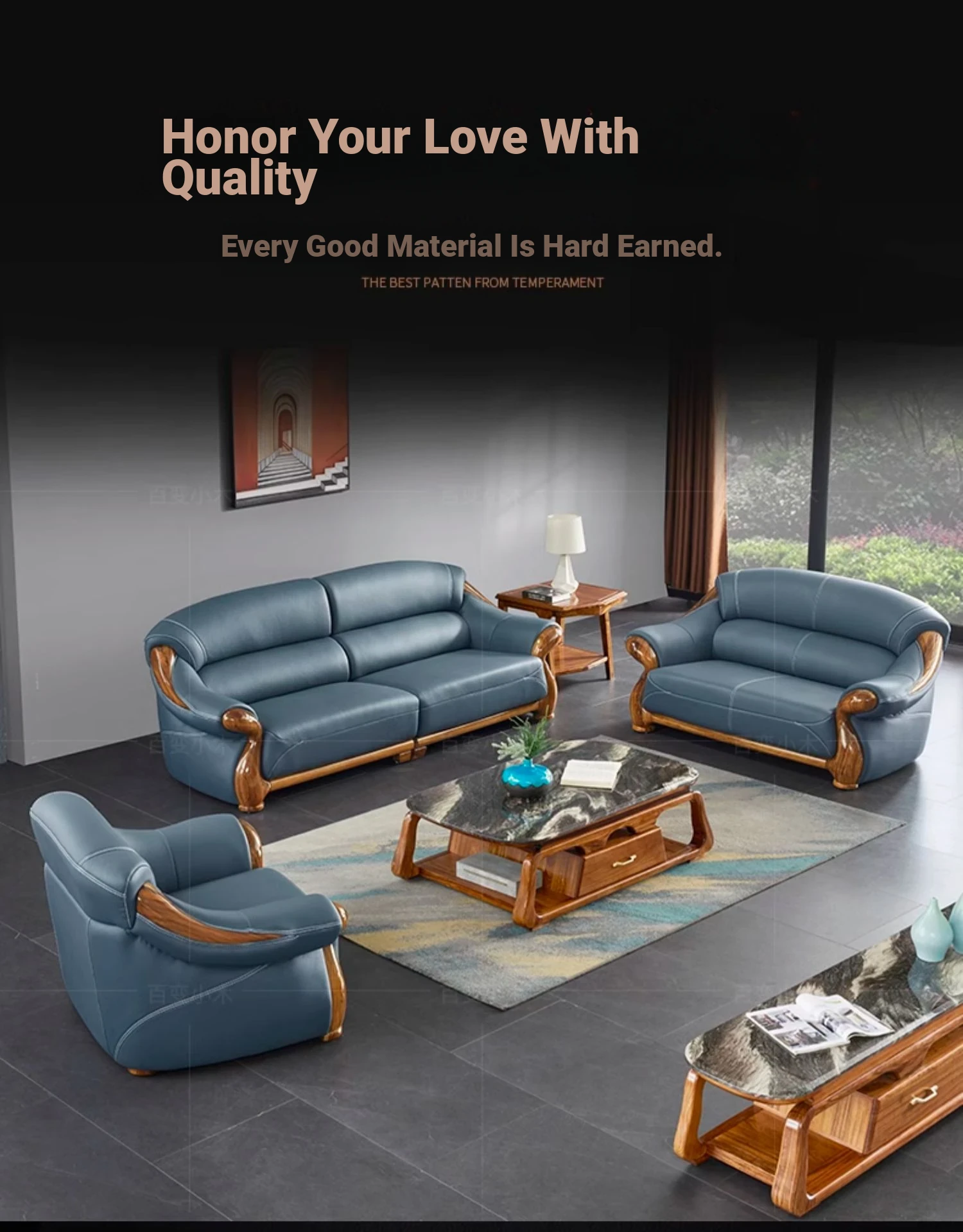 Premium New Chinese Style Top Grain Leather Black Walnut Sofa Set for High-End Villas - Luxurious Solid Wood & Genuine Leather Furniture for Living Room