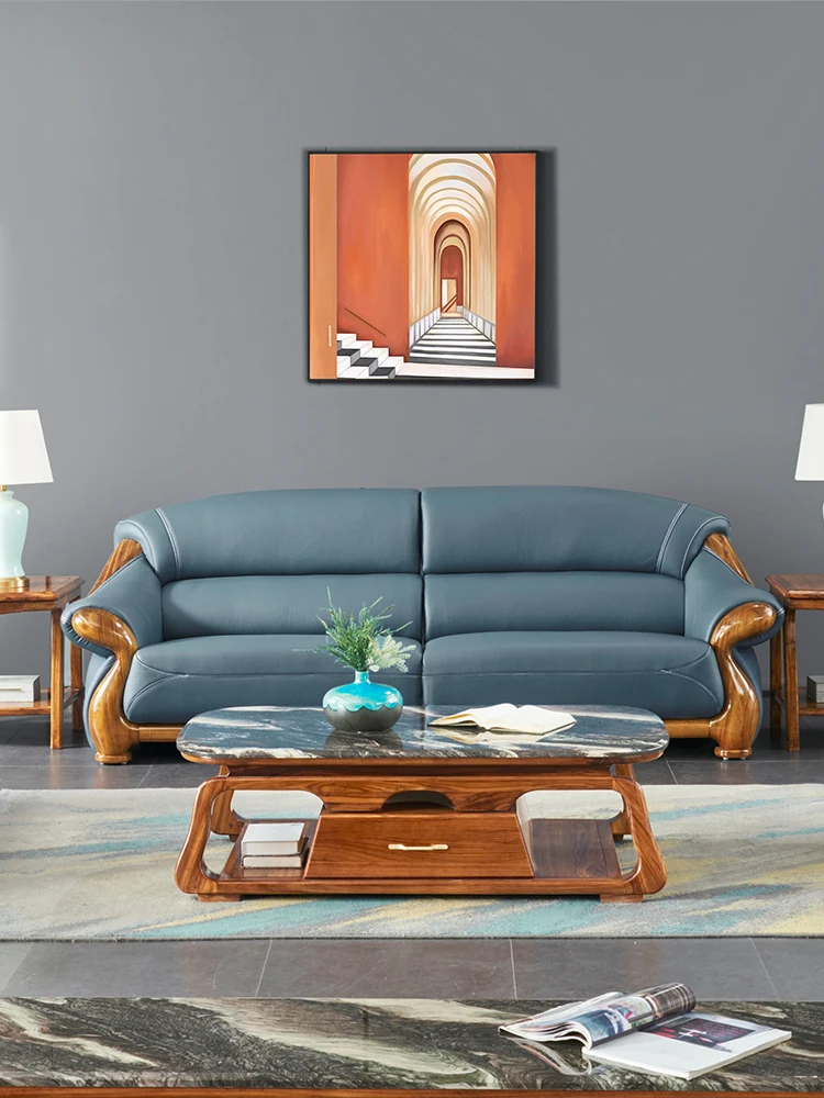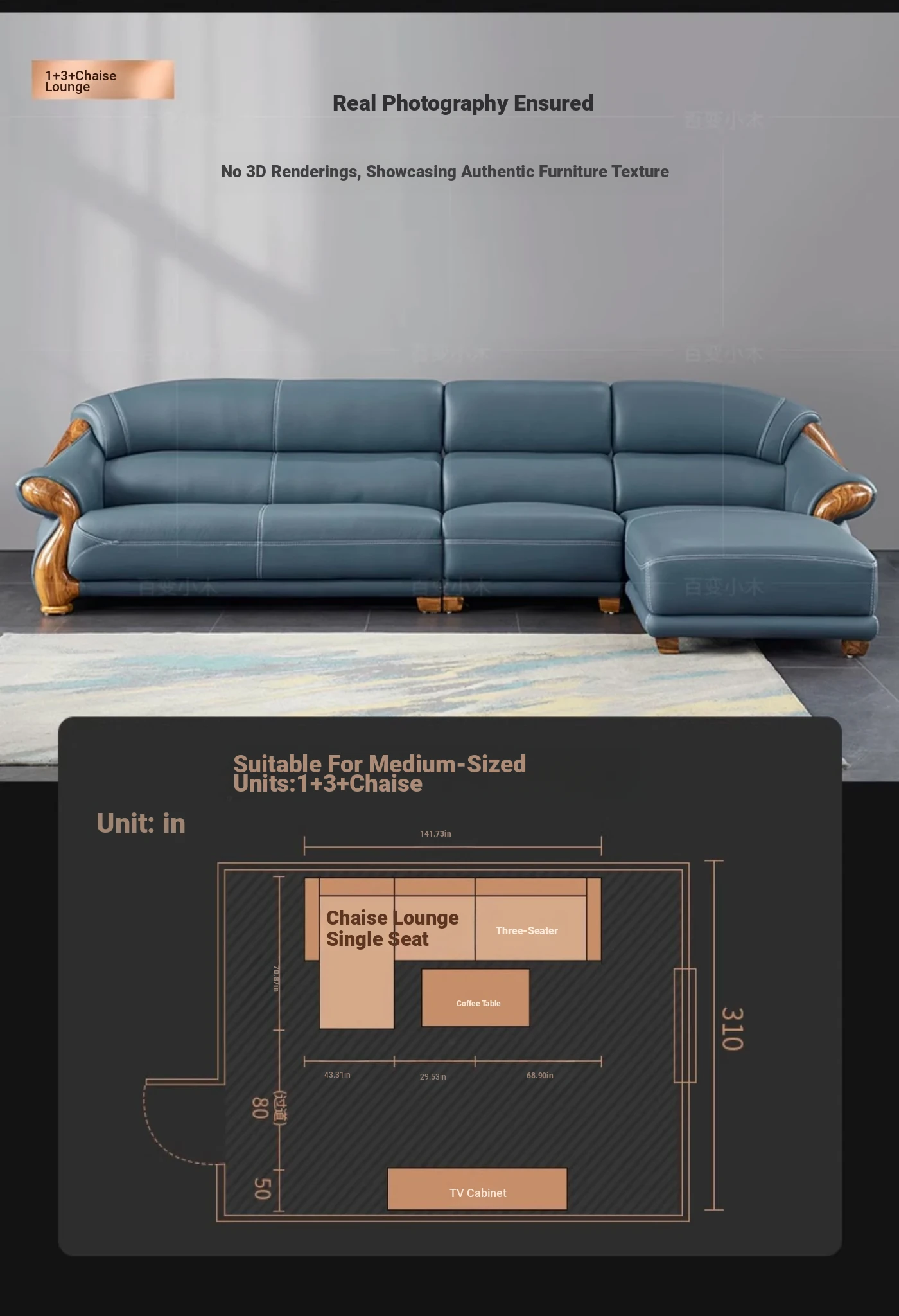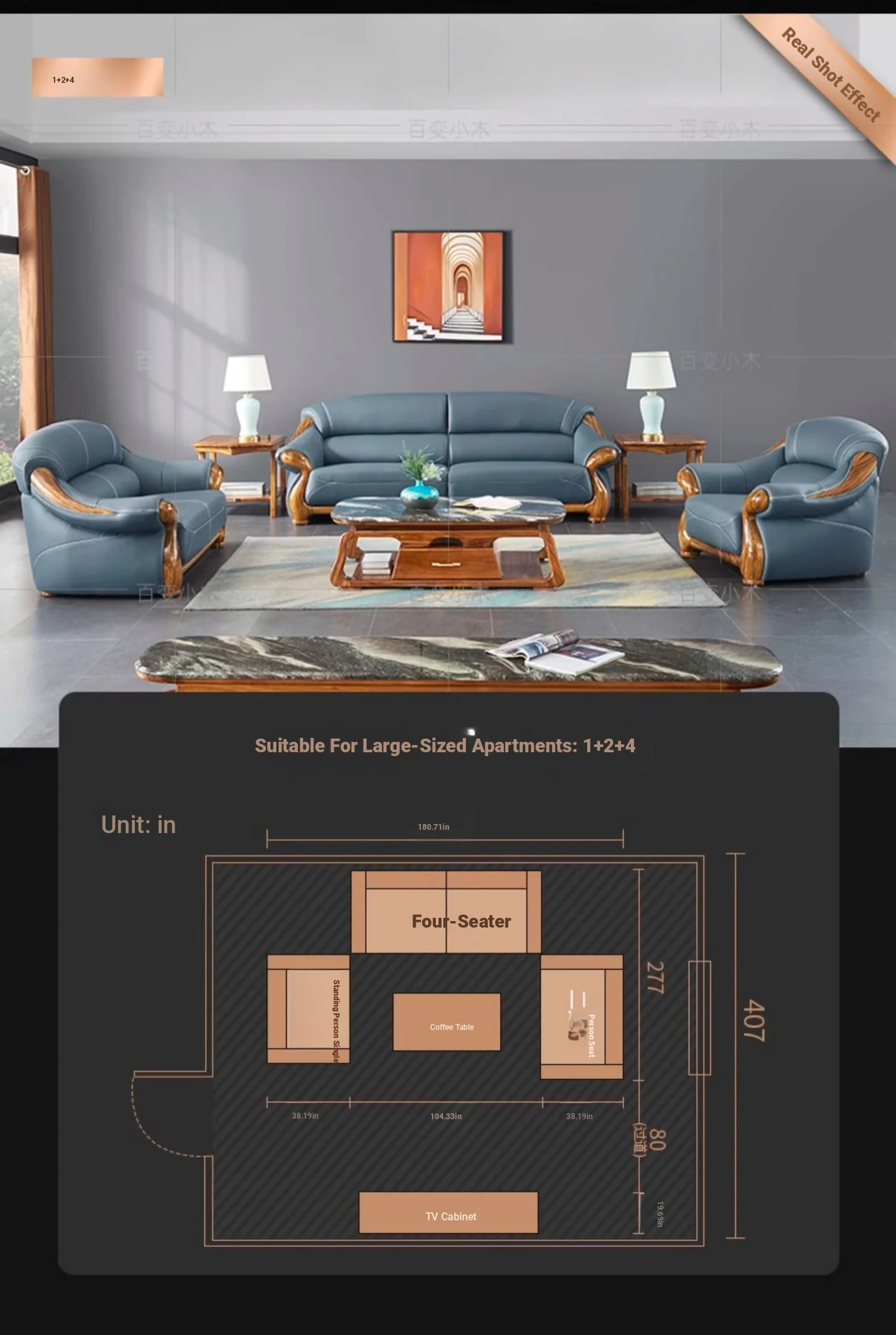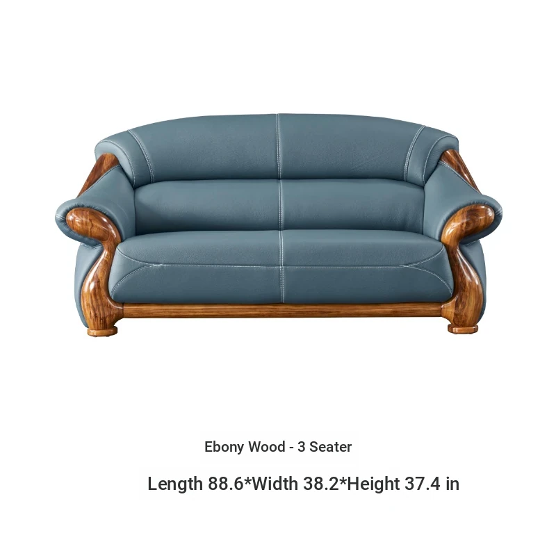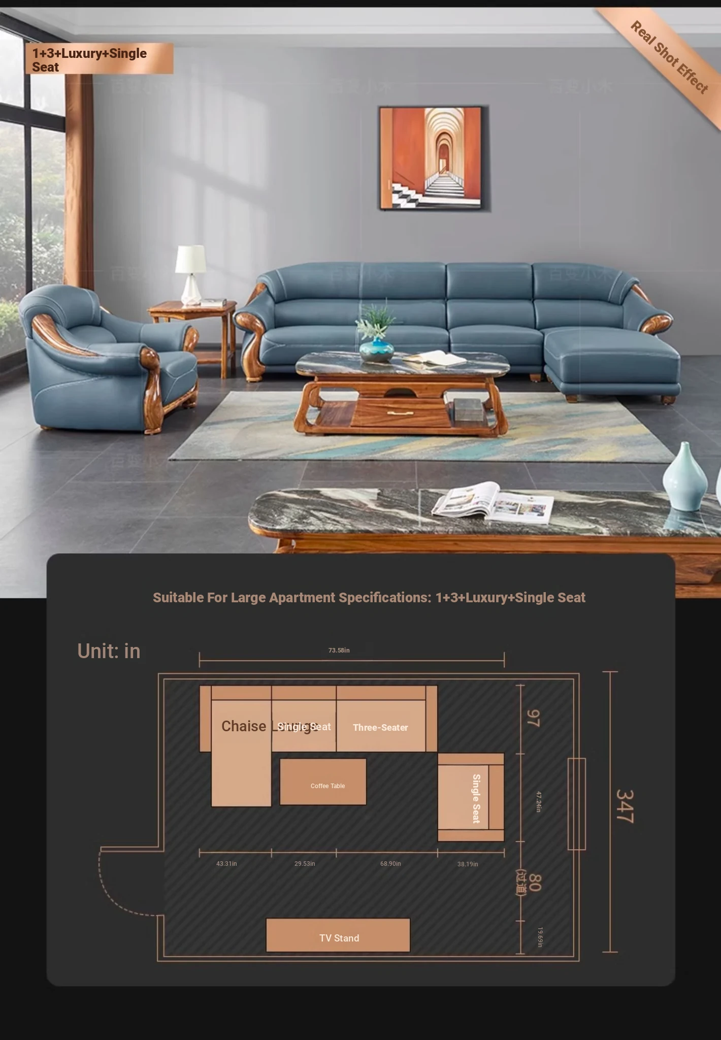 Premium New Chinese Style Top Grain Leather Black Walnut Sofa Set for High-End Villas - Luxurious Solid Wood & Genuine Leather Furniture for Living Room
