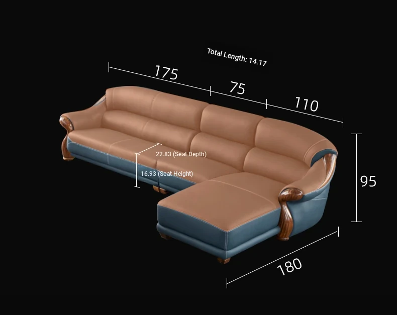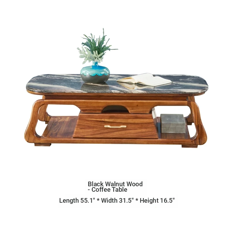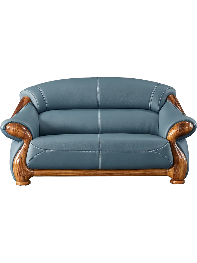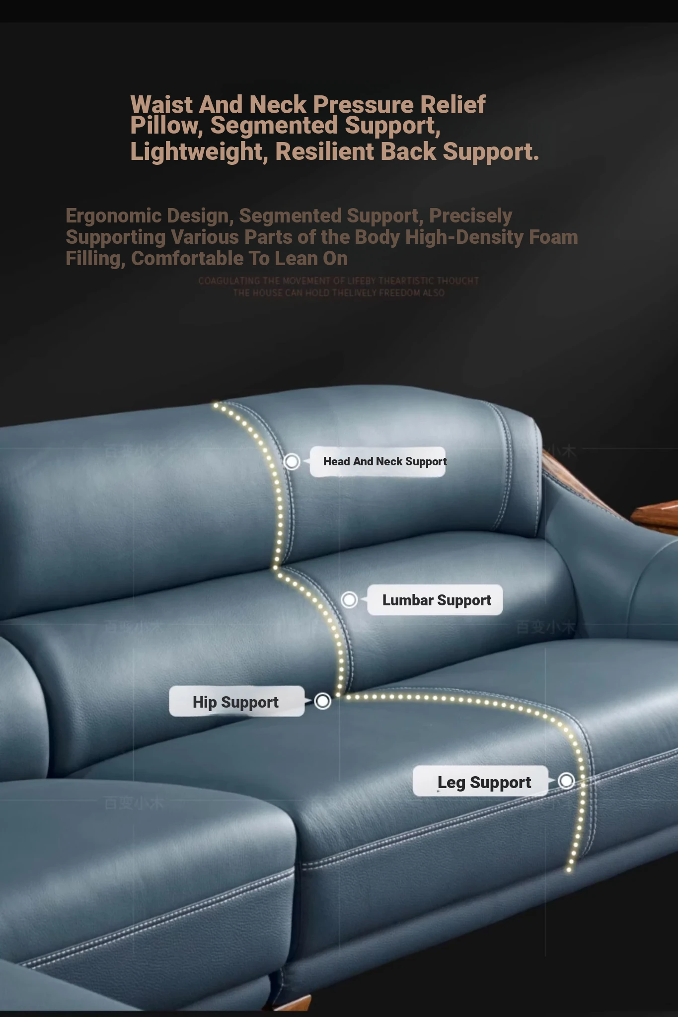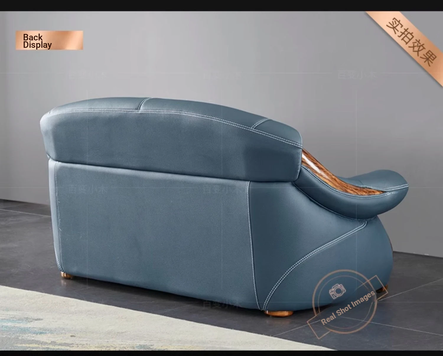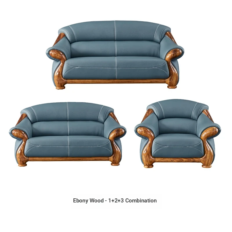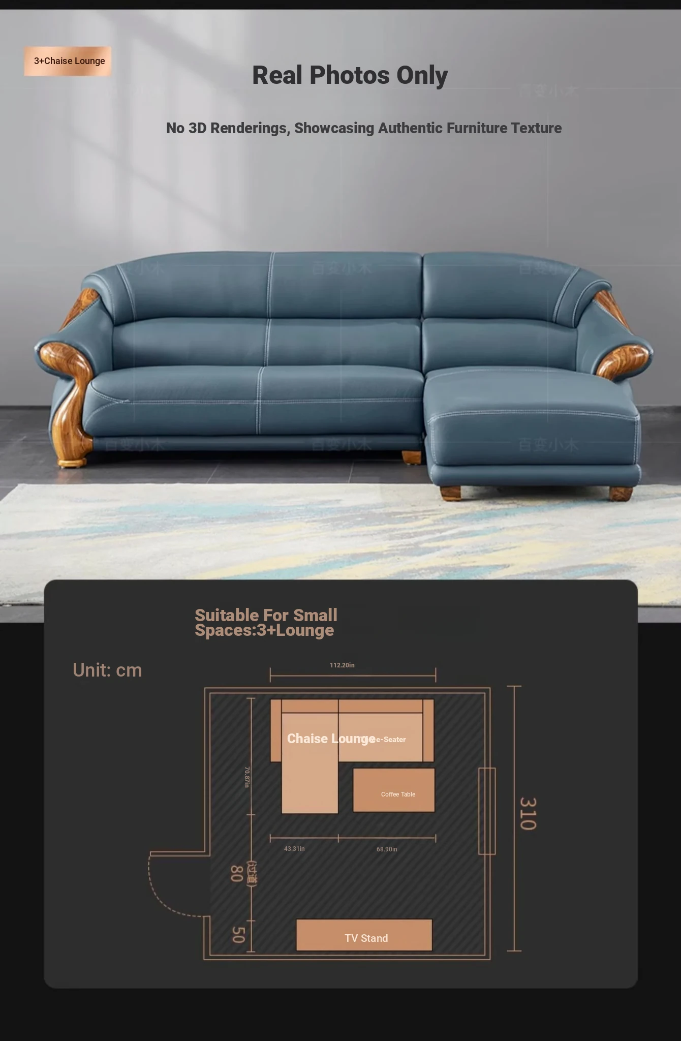 Premium New Chinese Style Top Grain Leather Black Walnut Sofa Set for High-End Villas - Luxurious Solid Wood & Genuine Leather Furniture for Living Room