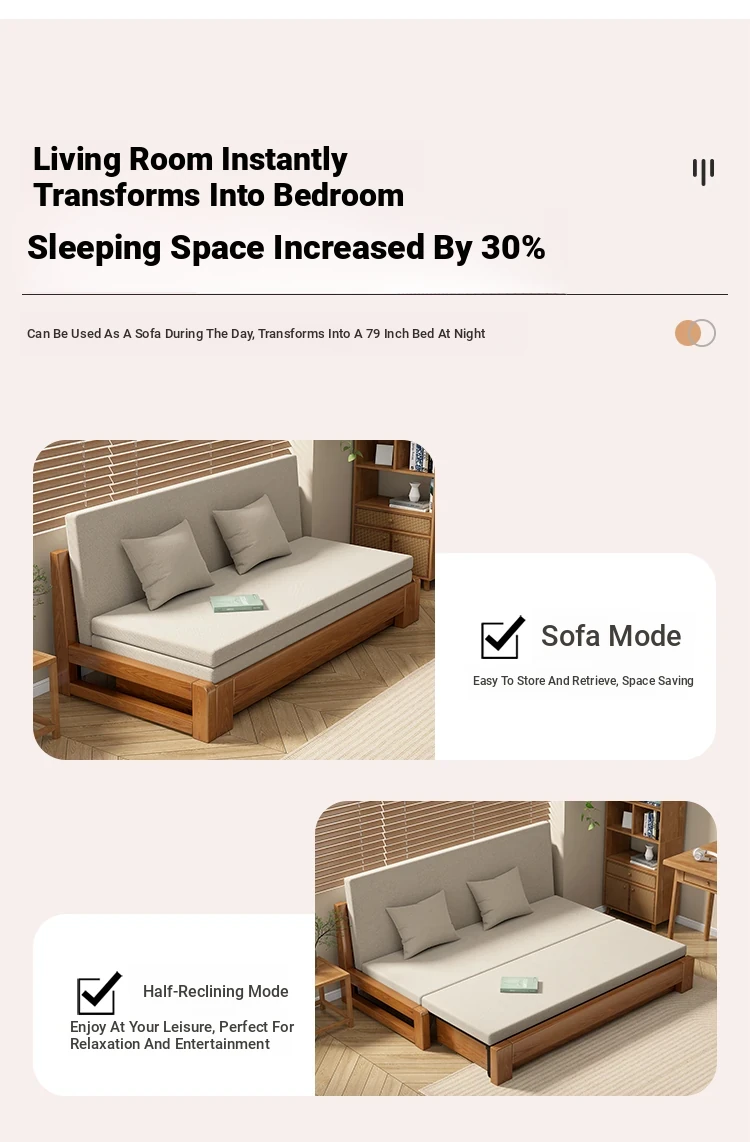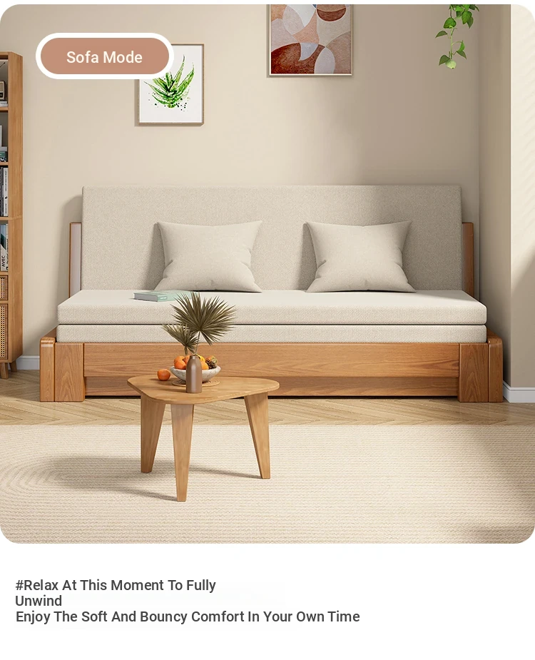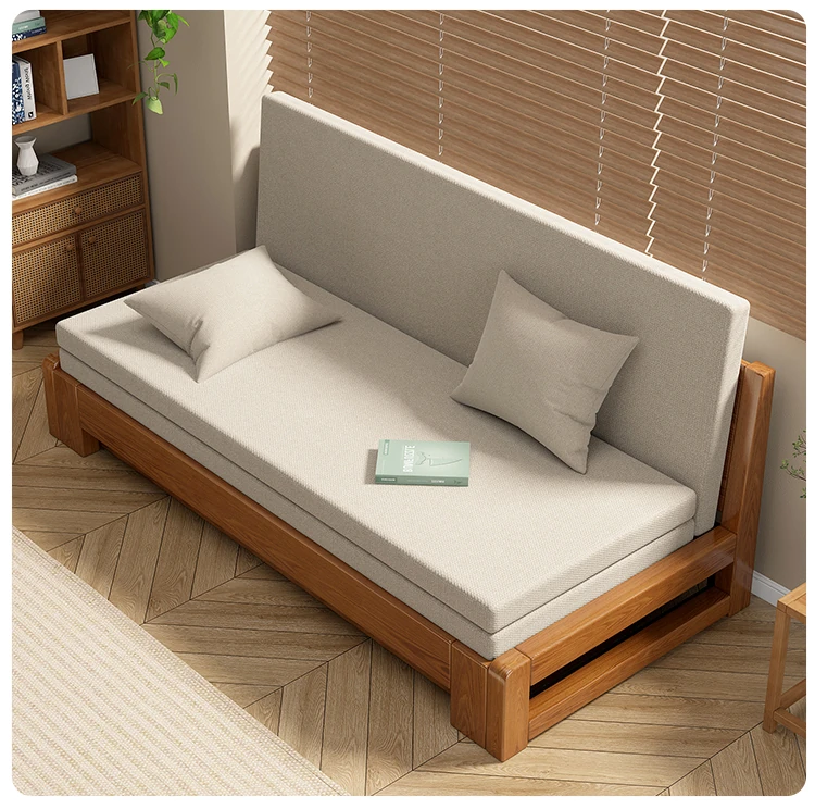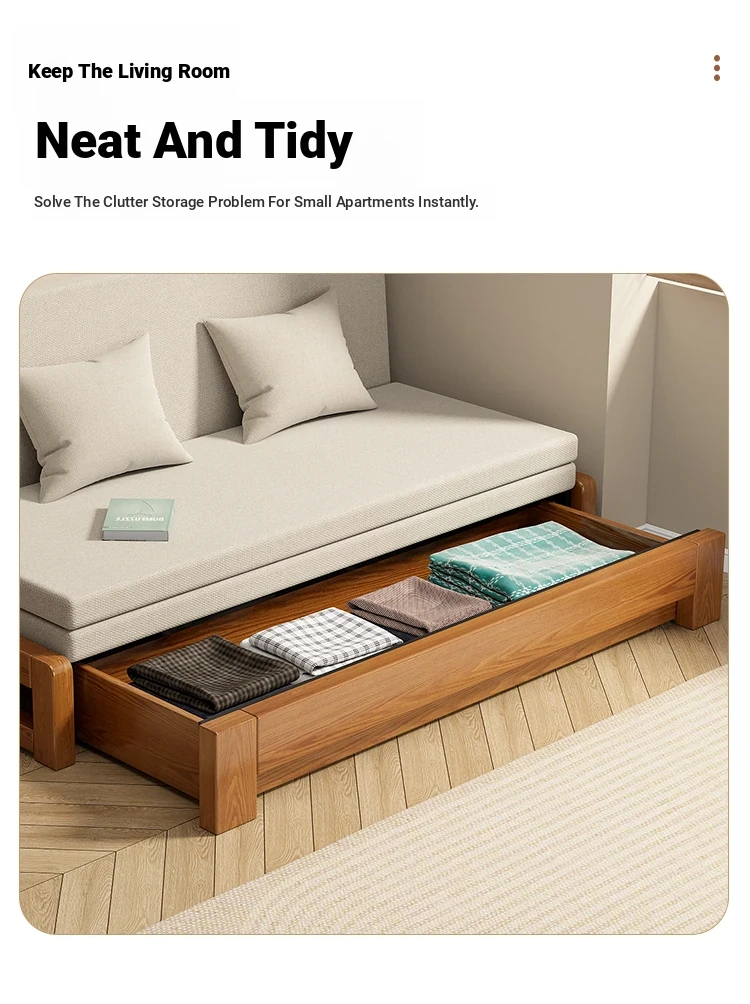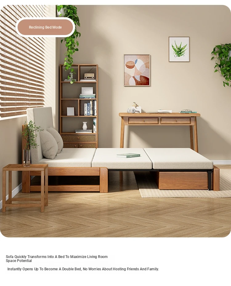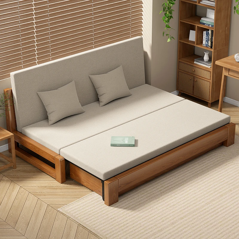 Solid Wood Expandable Folding Sofa Bed for Small Spaces - Perfect for Living Room or Study, Dual Use with Storage - Model 001